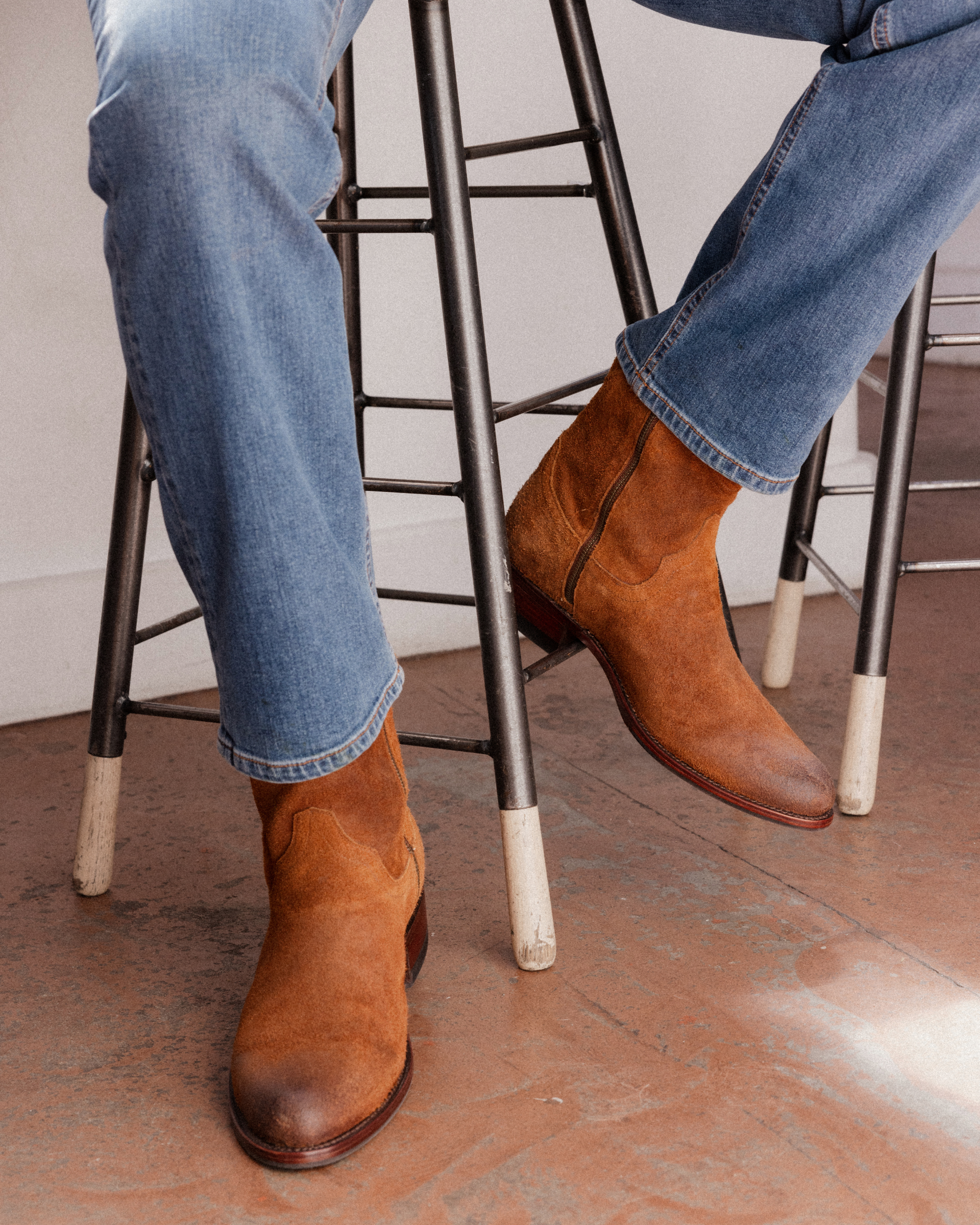 Designed for effortless versatility, The Dean is a modern take on the classic western boot, blending refined craftsmanship with impressive functionality. Its slim-cut 8” shaft is tailored for a sleek fit under fitted jeans and pants, while a discreet side zipper guarantees effortless wear while maintaining authentic Western style. Crafted with premium leather inside and out, this boot features a round toe for a timeless silhouette and a durable leather sole. Dressed up or down, The Dean is built for wherever the day takes you.
