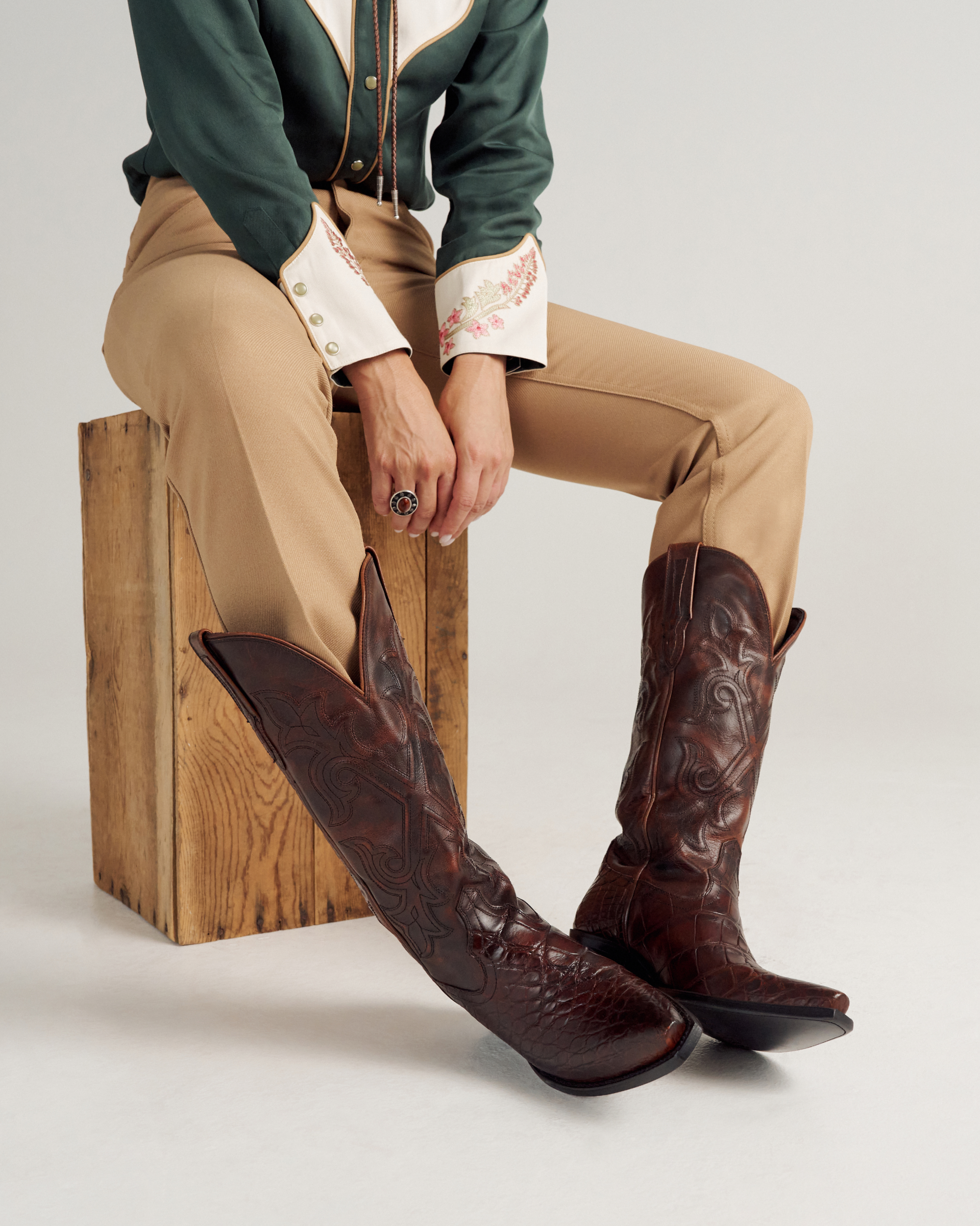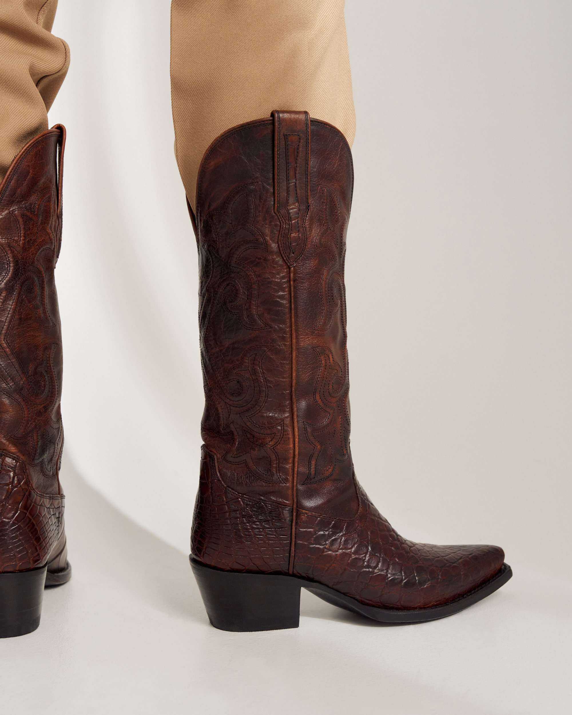 To mark a decade of Tecovas, we created something special — a boot that celebrates the milestone while honoring the journey that brought us here. Crafted with a rich water buffalo shaft and bold flank-cut American alligator vamp, it’s full of character and thoughtful details. A hand-corded “X” on the shaft commemorates ten years of craftsmanship, grit, and the people who made it possible. Finished with a custom brush-off that reveals a beautifully worn-in patina, this boot only grows more captivating with every step.