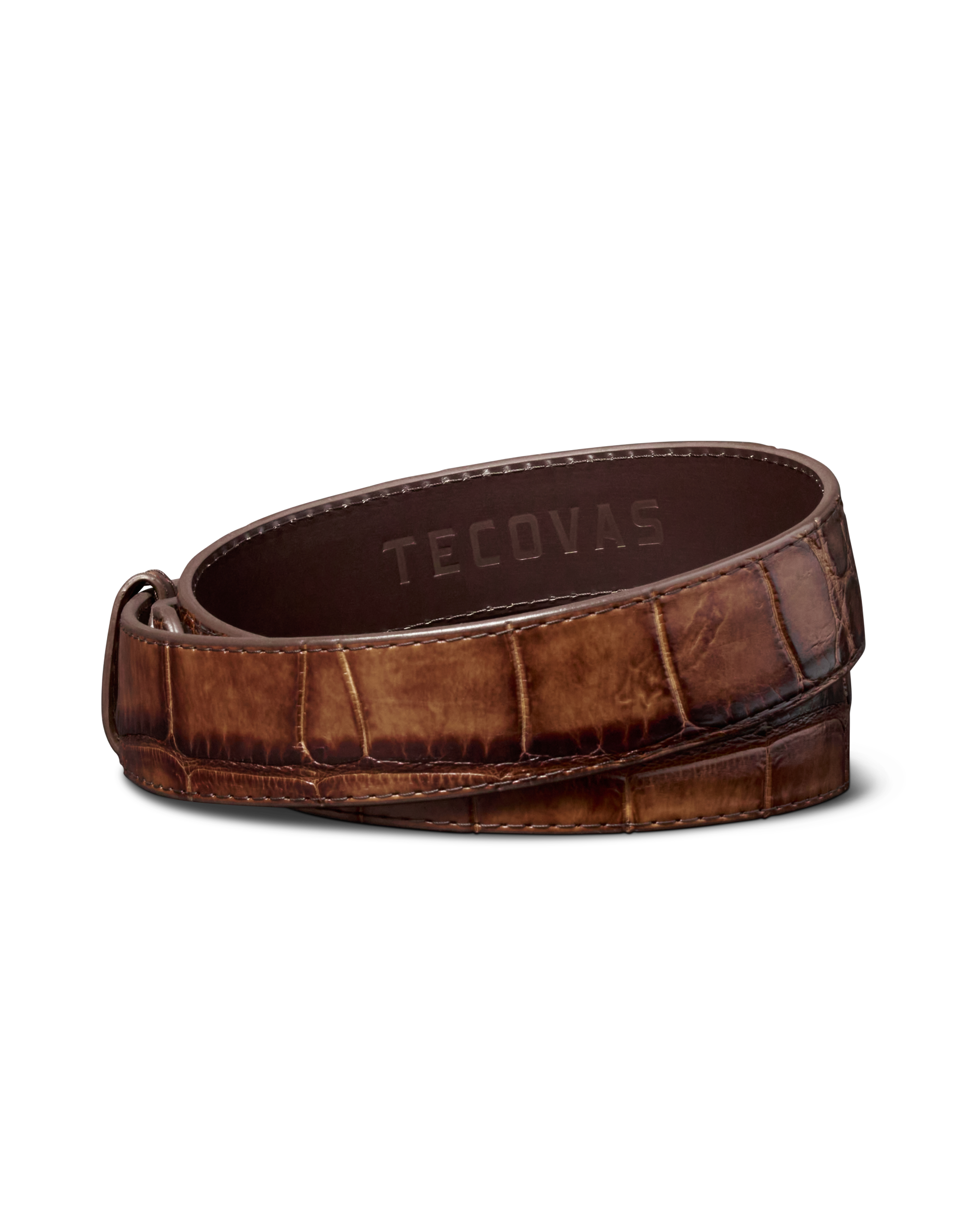 Match your Tecovas boots with a belt handcrafted from supple authentic American alligator and tanned to match our alligator and caiman belly boot colors. Handmade in León, Mexico.