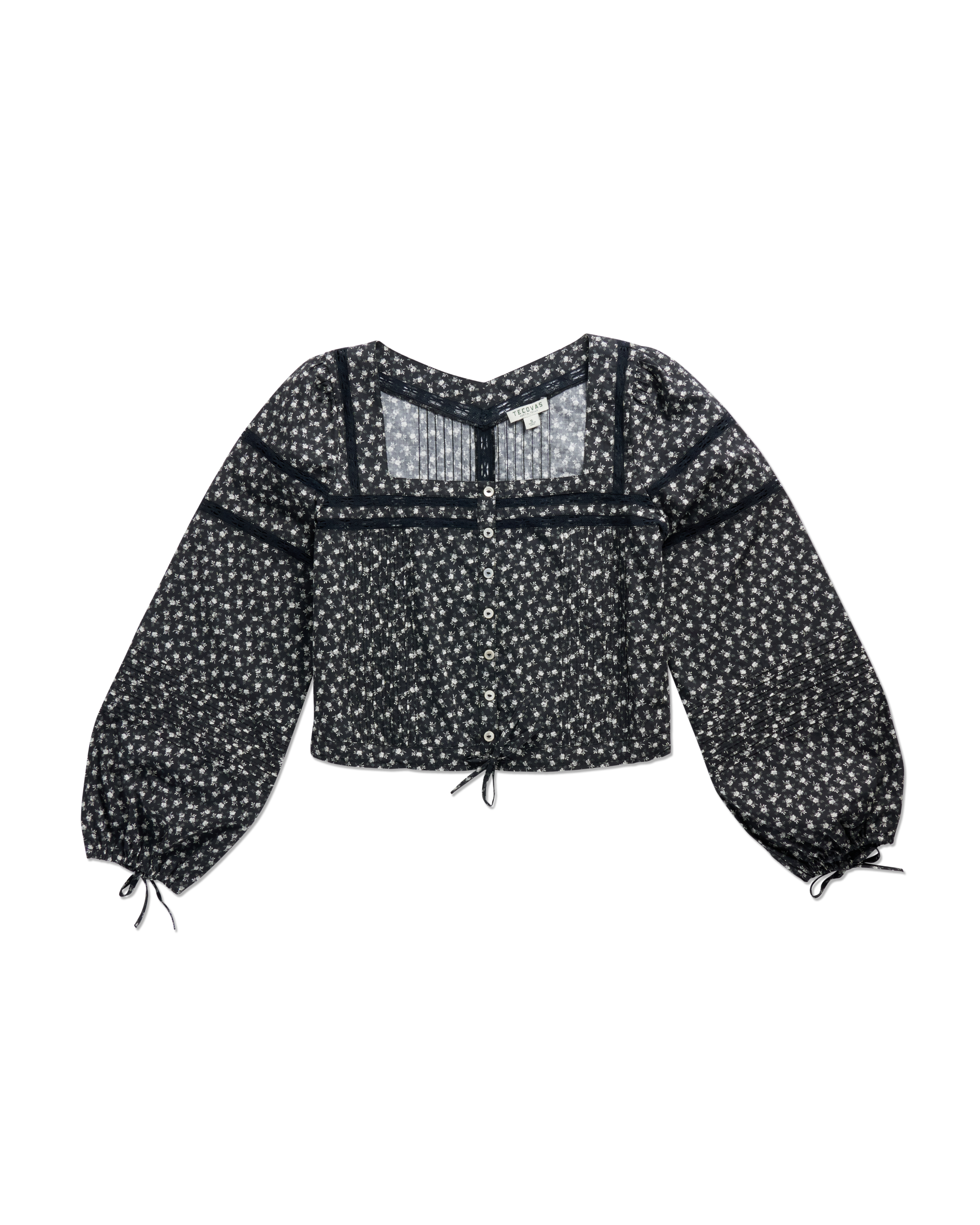 Made from crisp, breathable 100% cotton poplin, this top features delicate pintucks, lace accents, and slightly puffed sleeves for a soft, feminine shape. With adjustable self-ties at the waist and sleeves, a square neckline, and a bra-friendly fit, it's as easy to wear as it is special. Style it solo or pair it with the matching skirt for a standout set look that works for brunch, date nights, and everything in between.