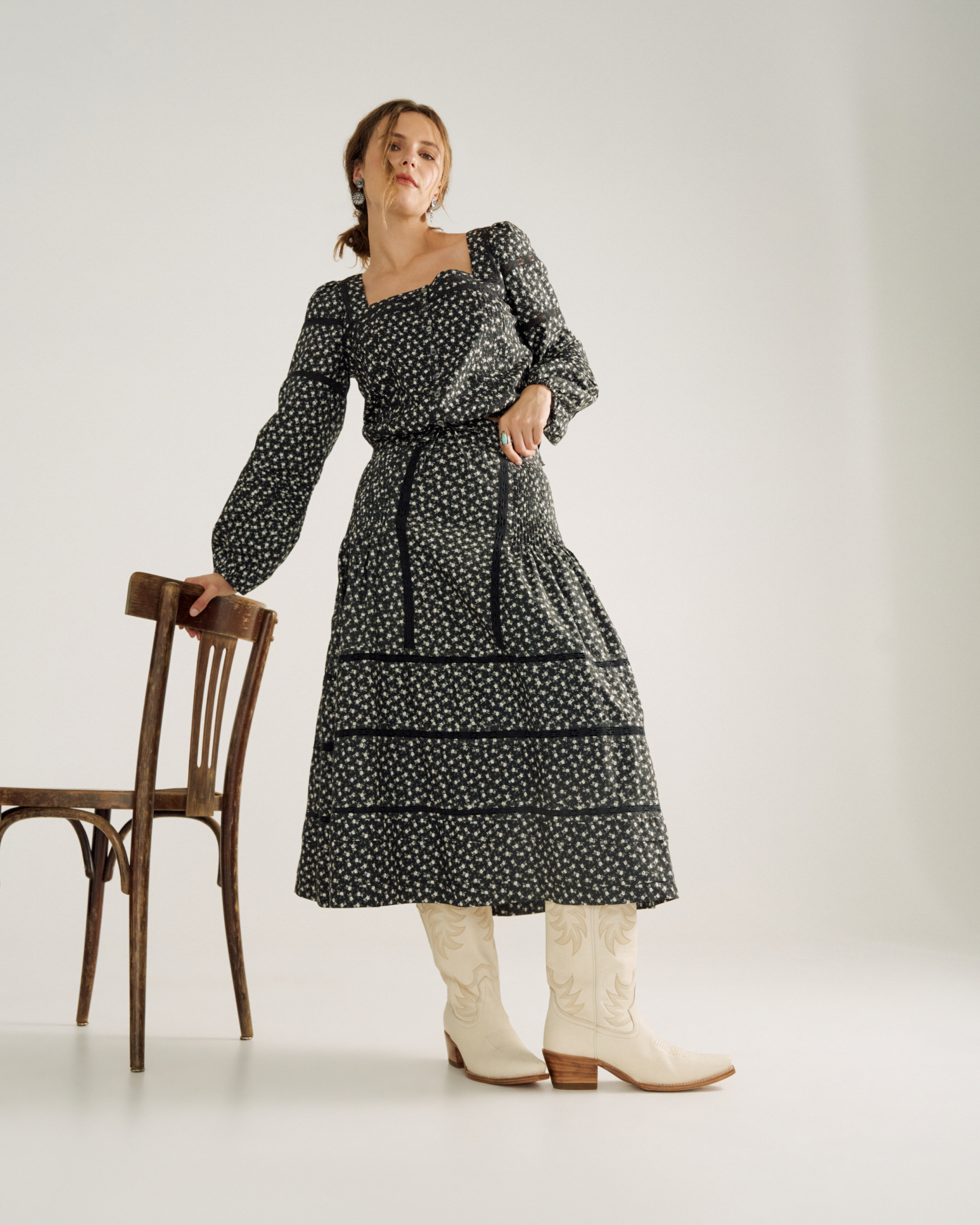 Square neckline with lace and pintuck accents