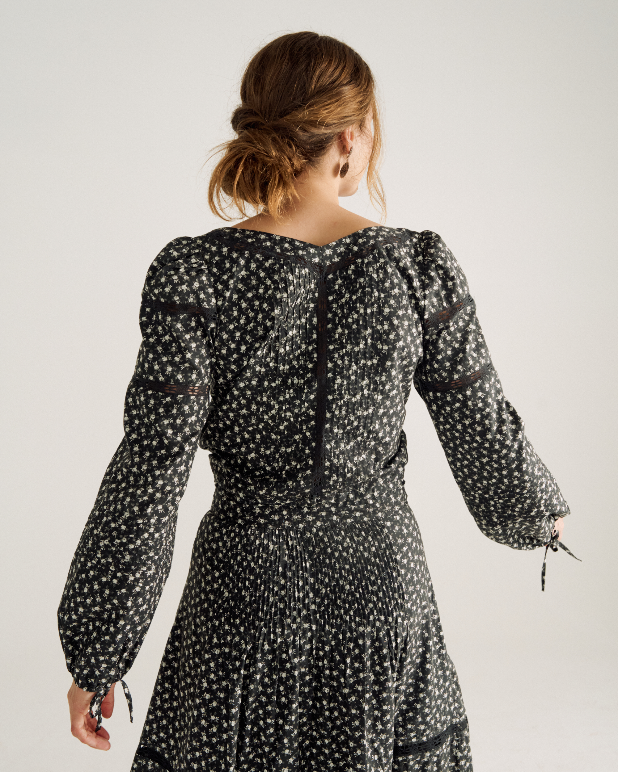Slightly puffed sleeves with self-tie sleeve openings