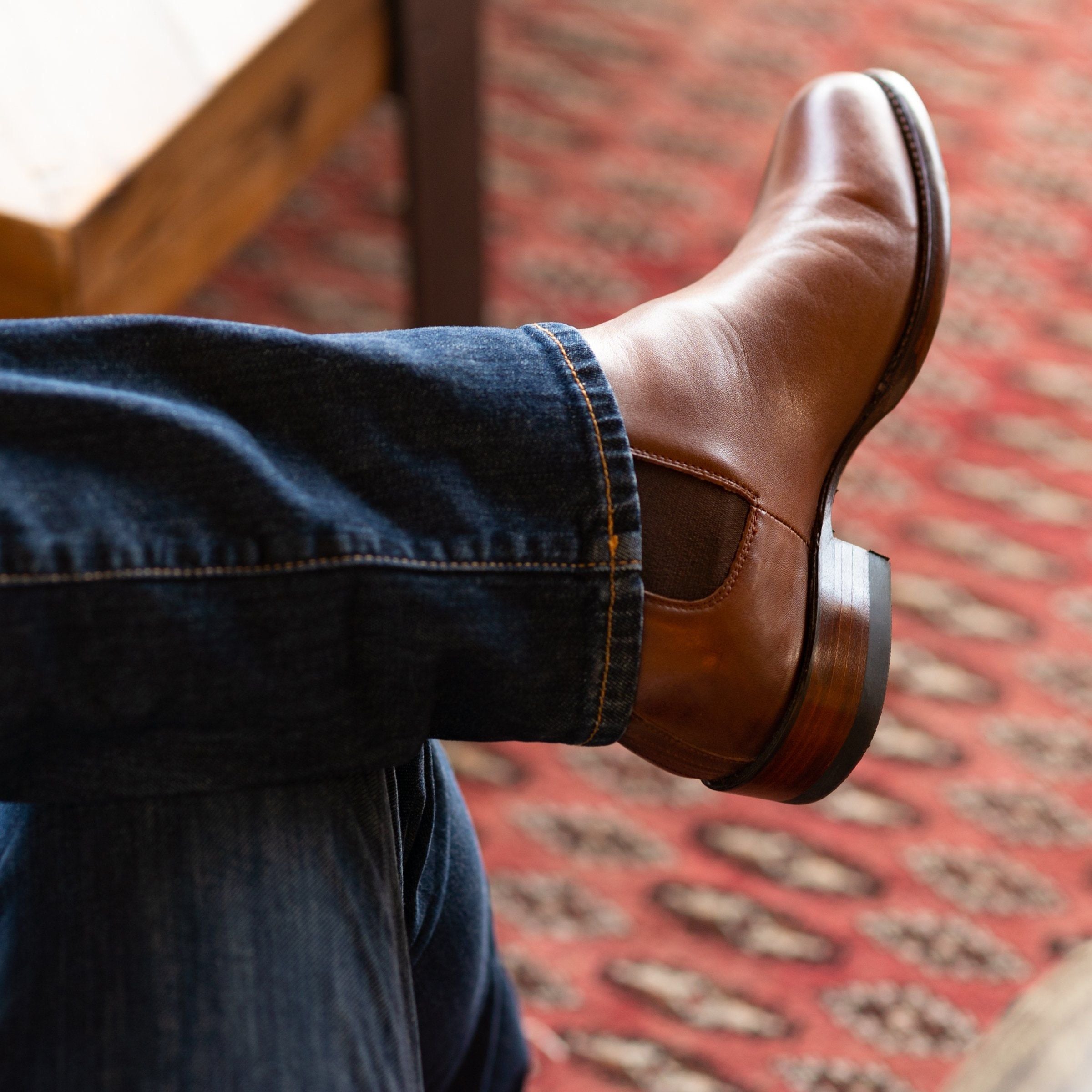Our original Chelsea boot is an urban boot on an unapologetically western platform. Its low profile makes it a modern pairing with slimmer jeans and slacks, and its elastic gores and sleek pull tab provide easy-on access. Available in cowhide, cowhide, and suede.