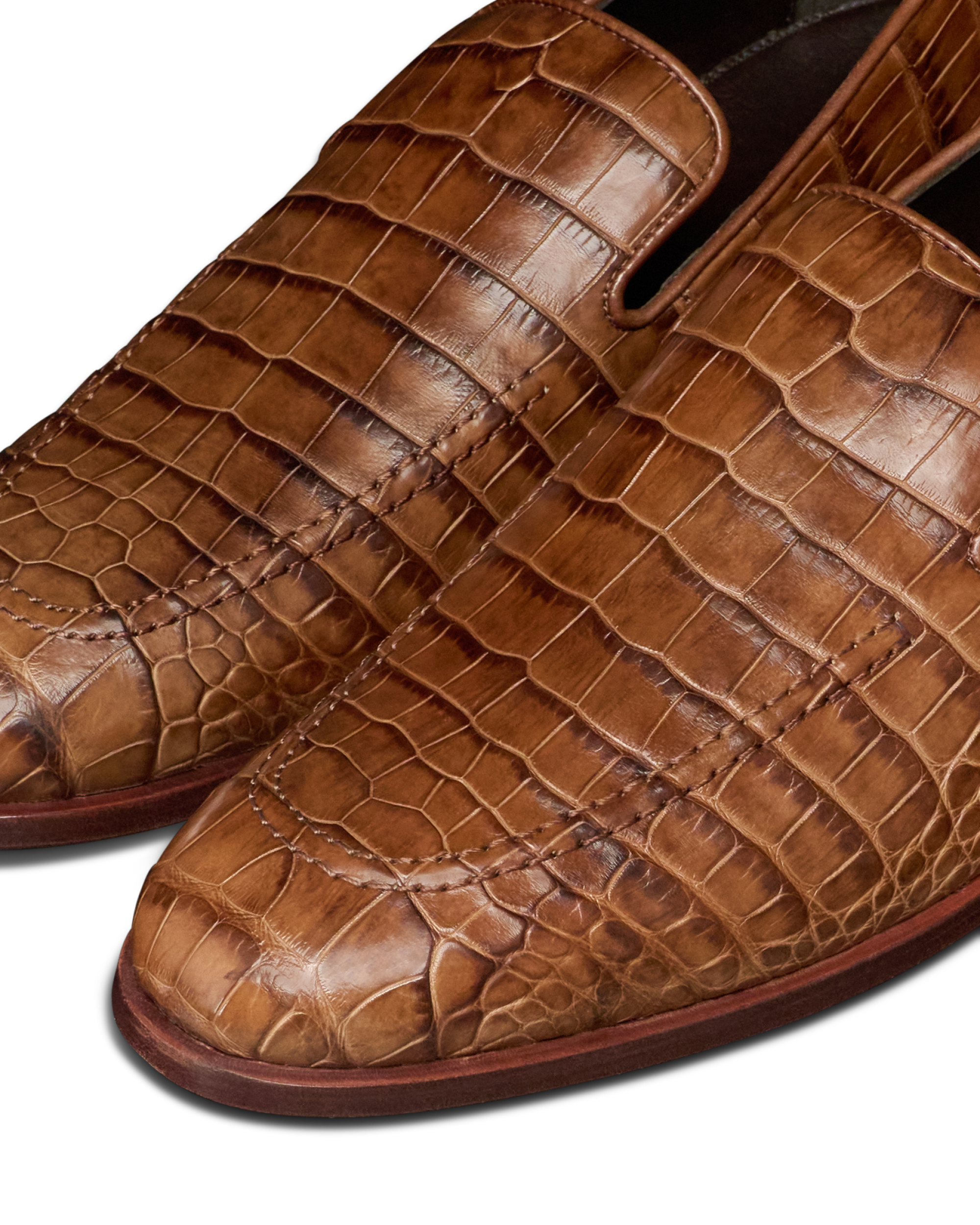 One of our most elevated exotic hides, worthy of your most special events and biggest moments. Dare to dip your toes into American alligator, and you will be rewarded with an apex material that’s both durable and supple with jaw-dropping, unique scale patterns that make each pair one of a kind.