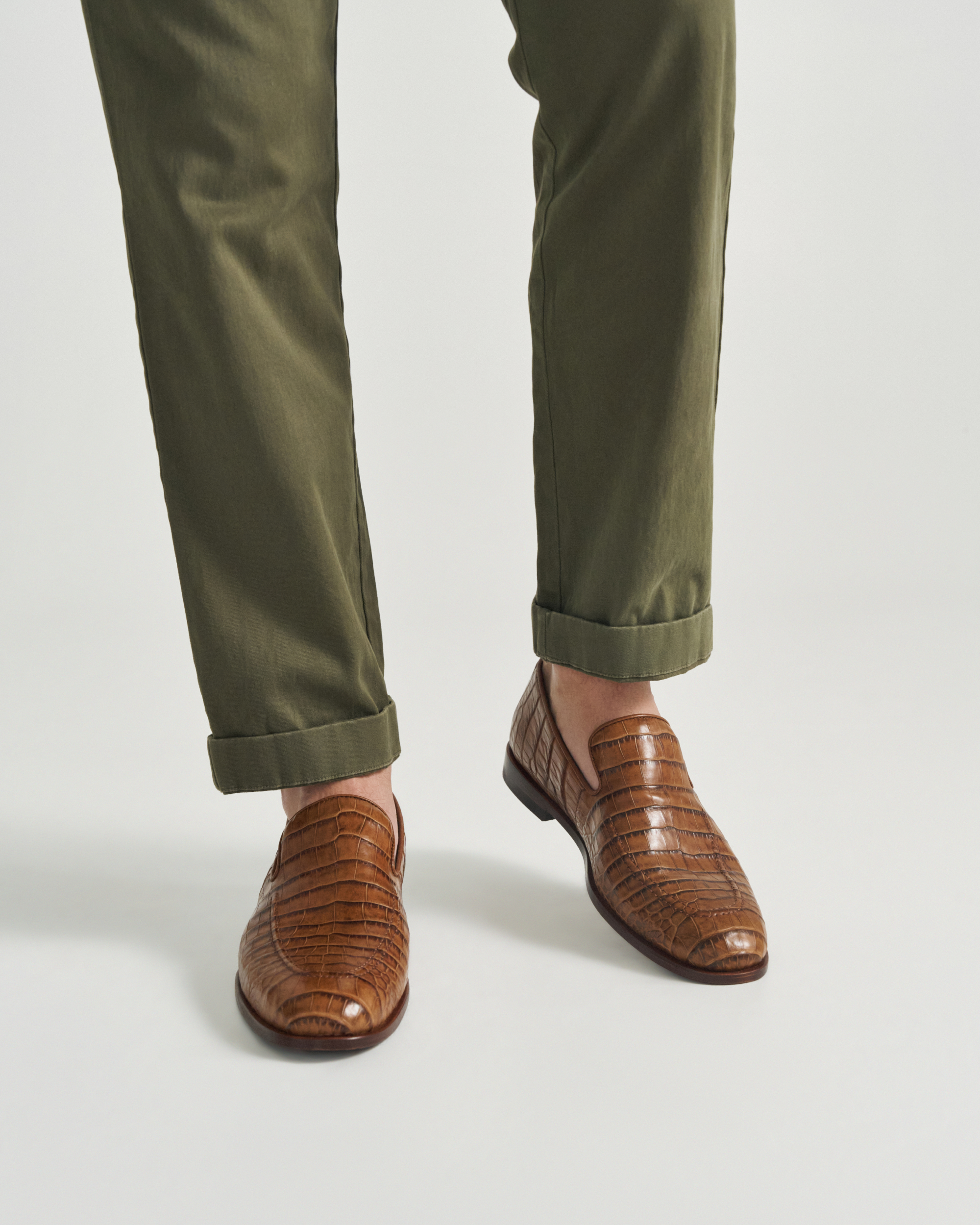 Genuine garment-washed alligator for flexible, broken-in comfort