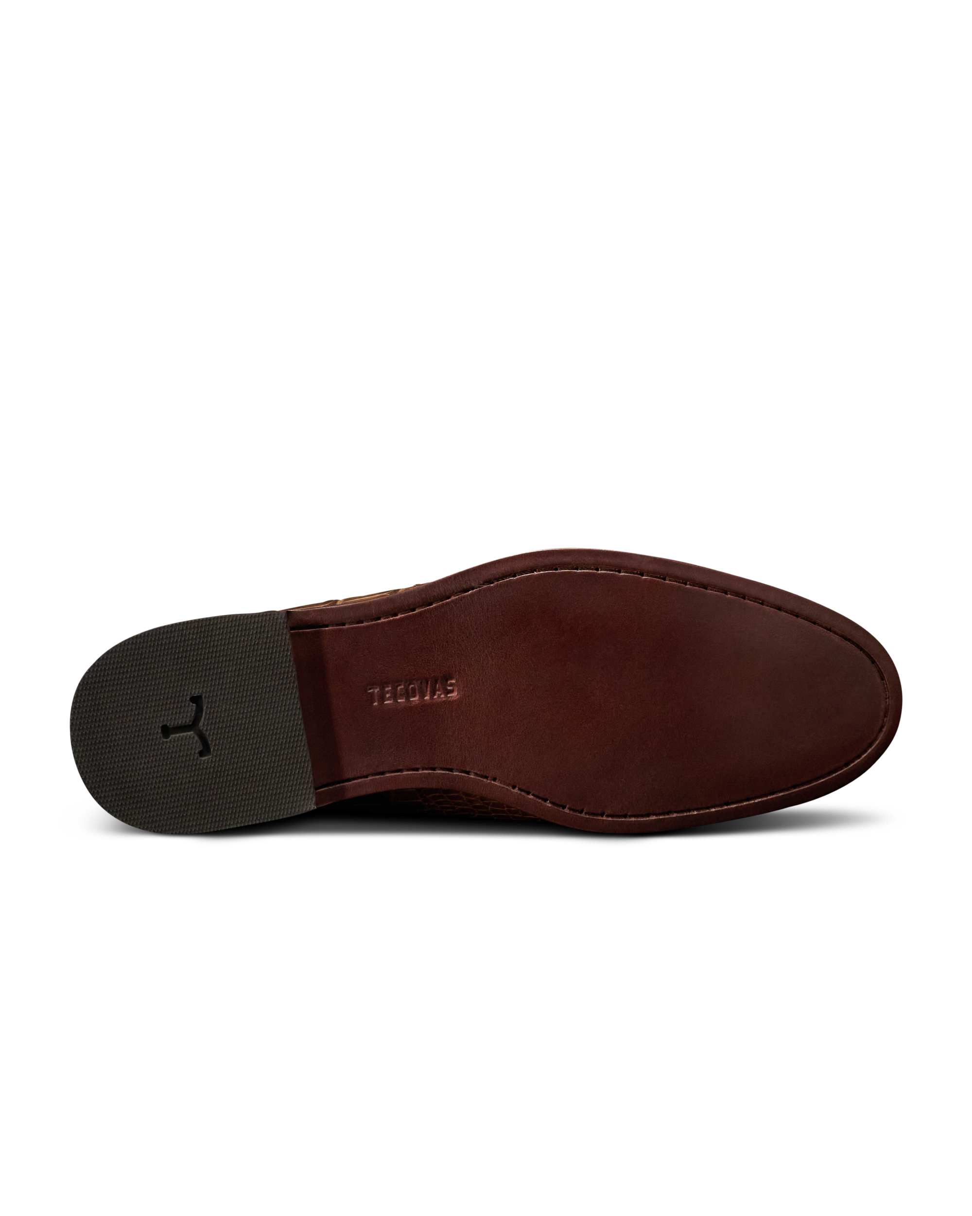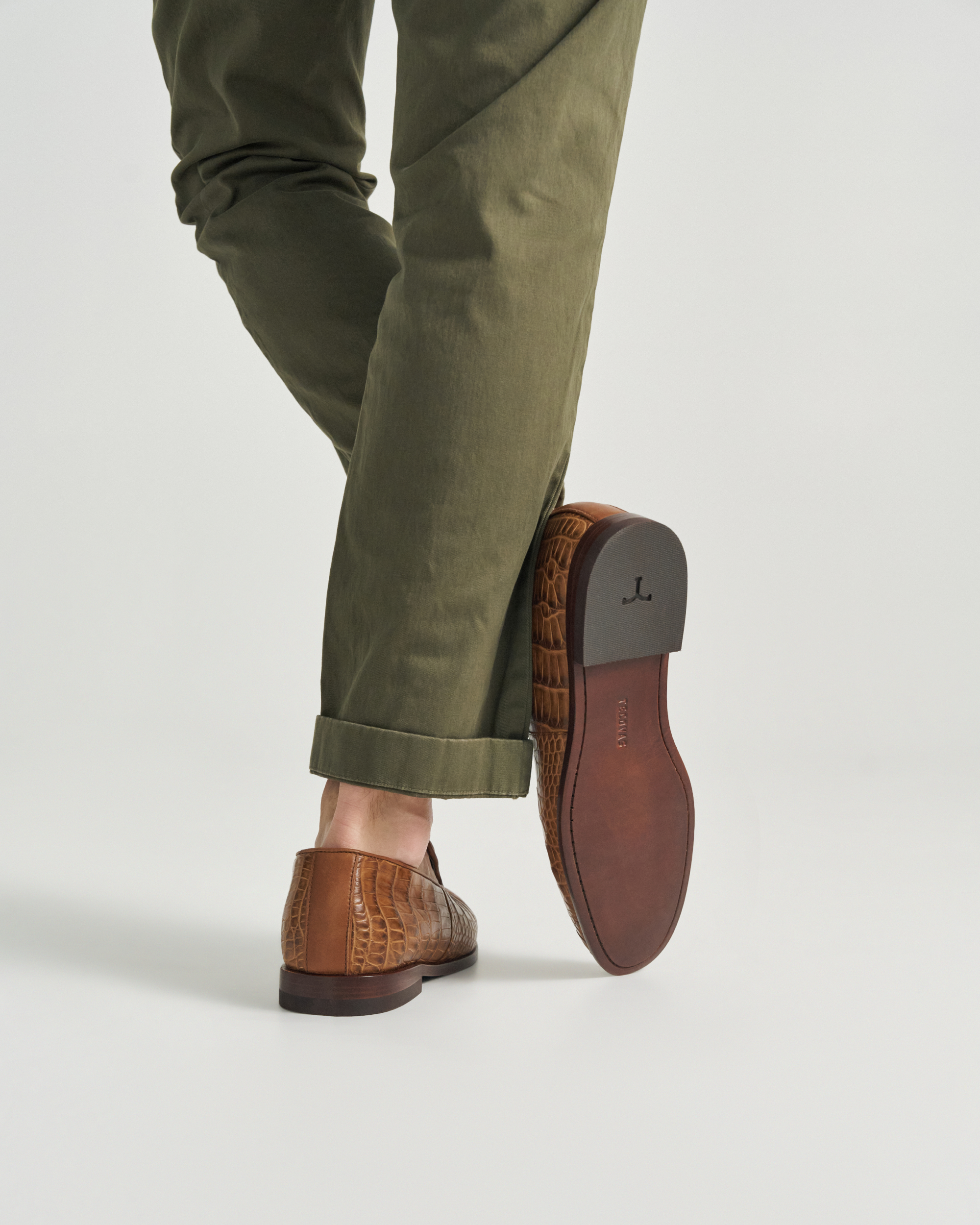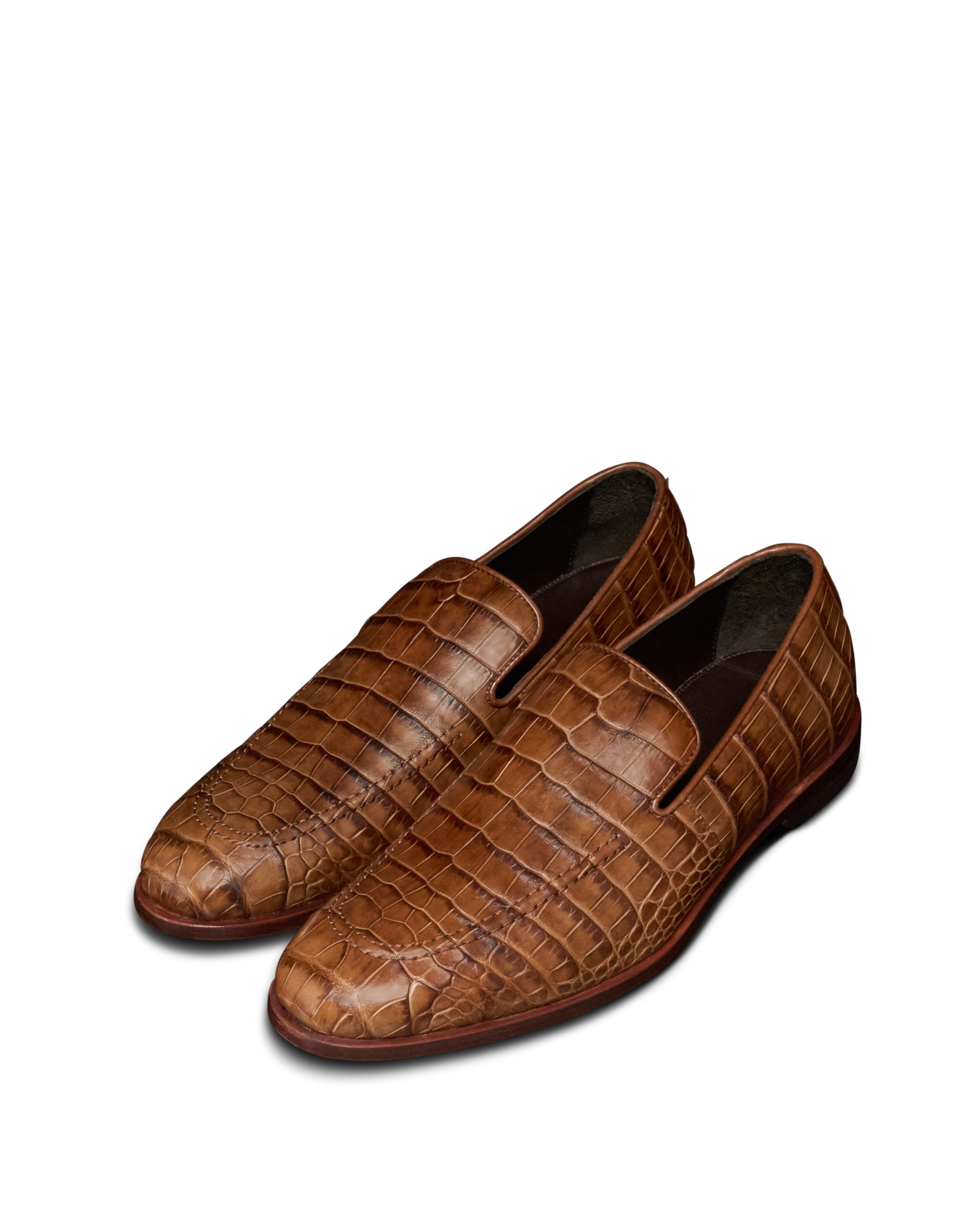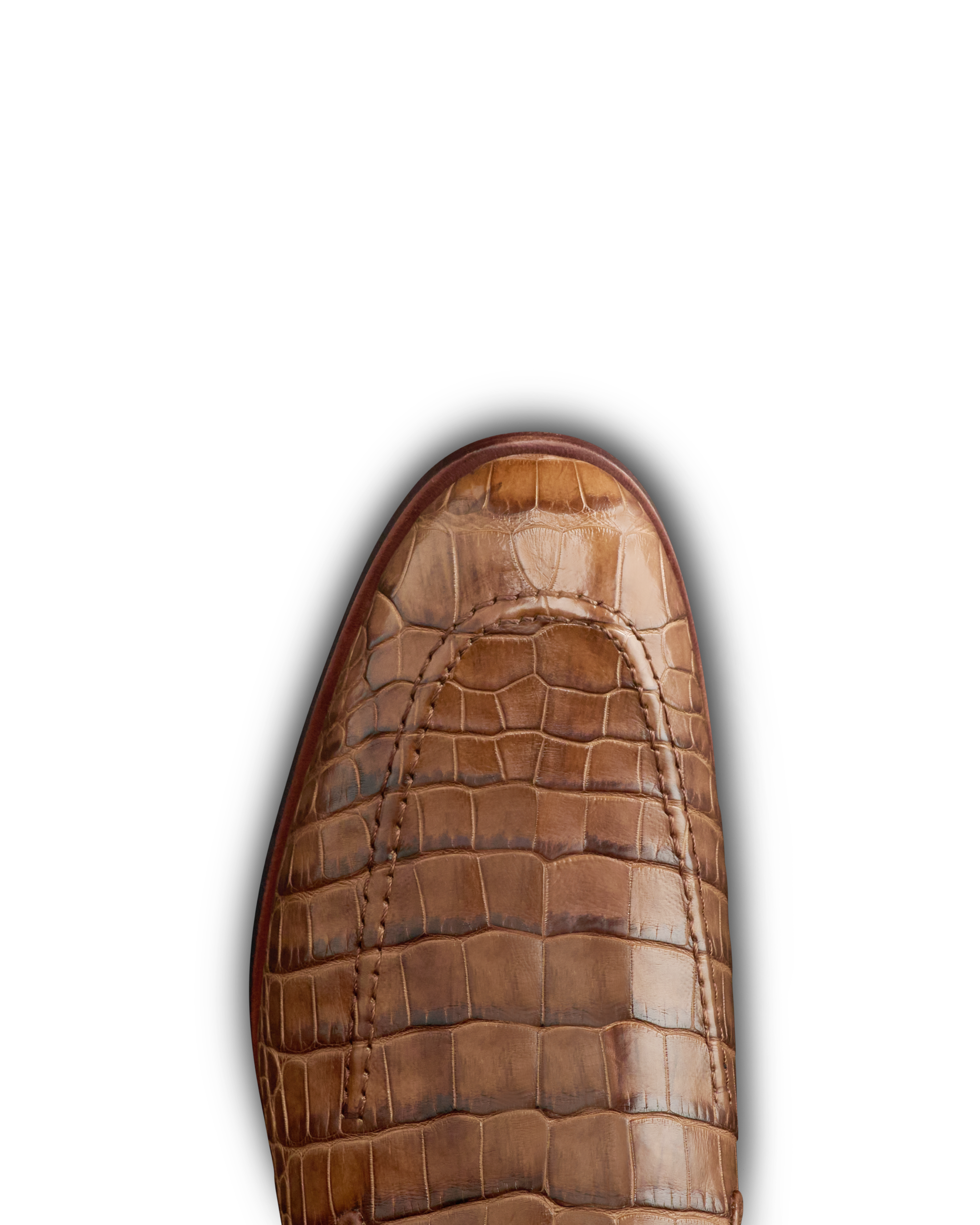 Timeless Western sensibility meets refined luxury in genuine alligator. Garment-washed for a soft, broken-in feel from day one, this loafer delivers comfort without sacrificing sophistication. A flexible leather outsole and padded insole make it an easy all-day choice, while the rich brown hide adds a polished edge that instantly elevates any look. From denim to tailored slacks, it’s a sharp, versatile showcase of craftsmanship.