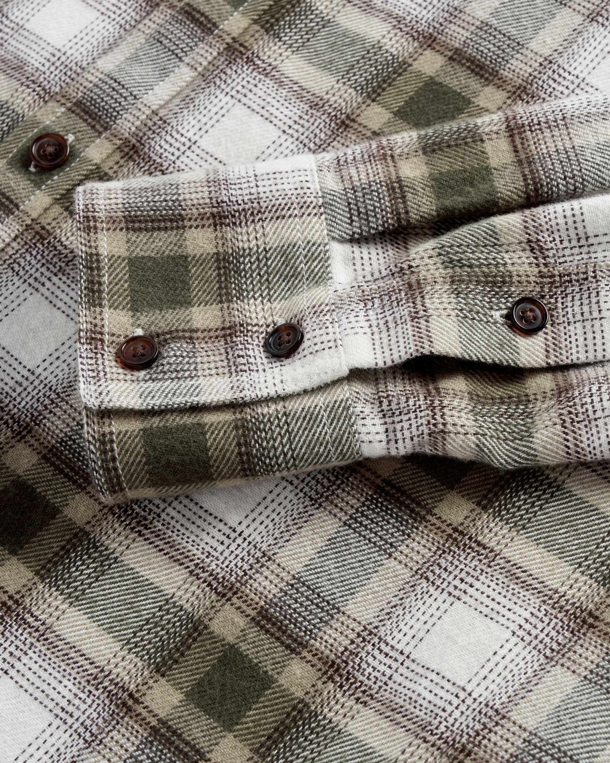 Built for work, weekends, and everything in between. This lightweight, brushed cotton flannel is all about that perfect balance — soft enough for layering, sturdy enough to stand on its own. Classic plaid meets modern fit, finished with brown horn buttons for a Western touch.
