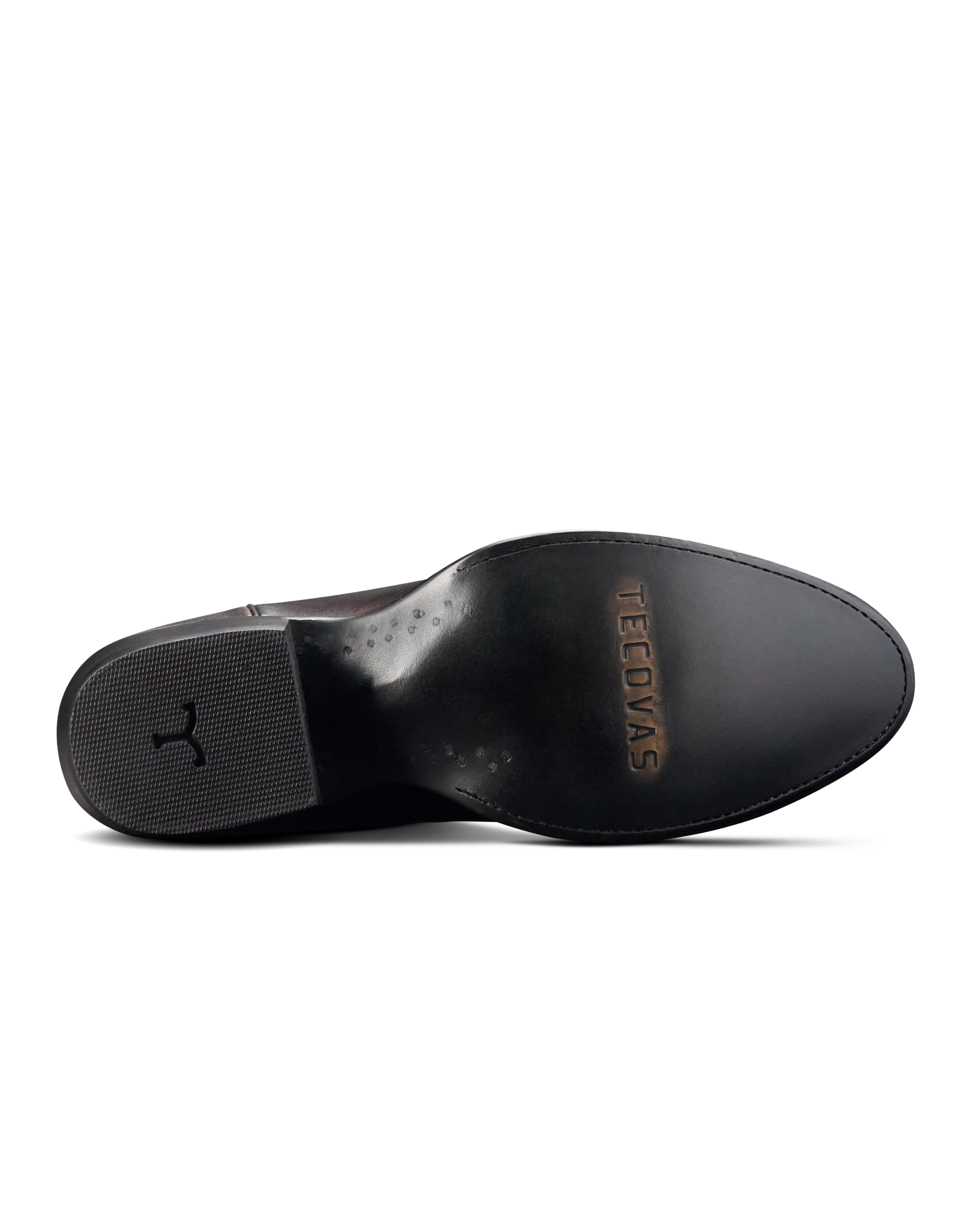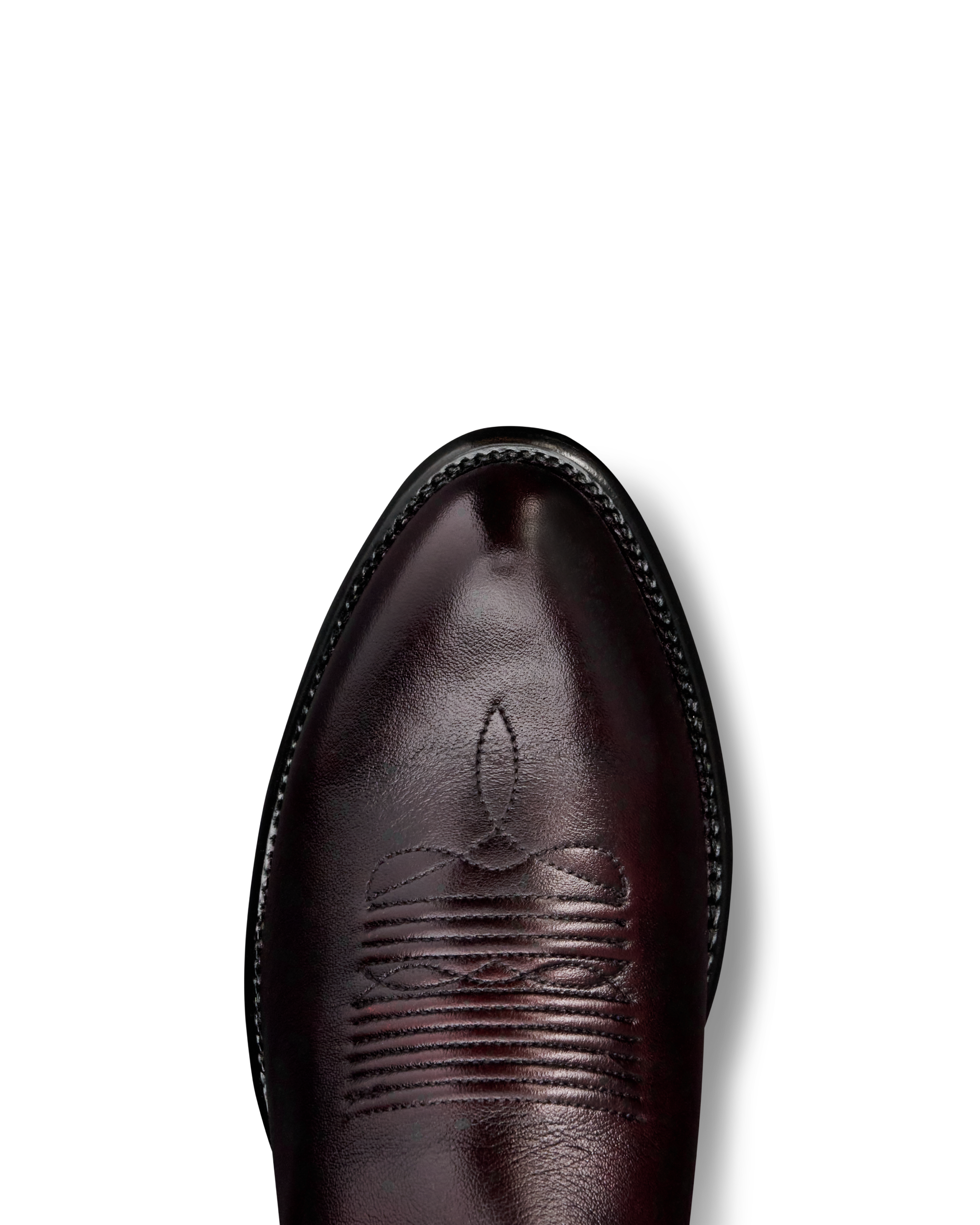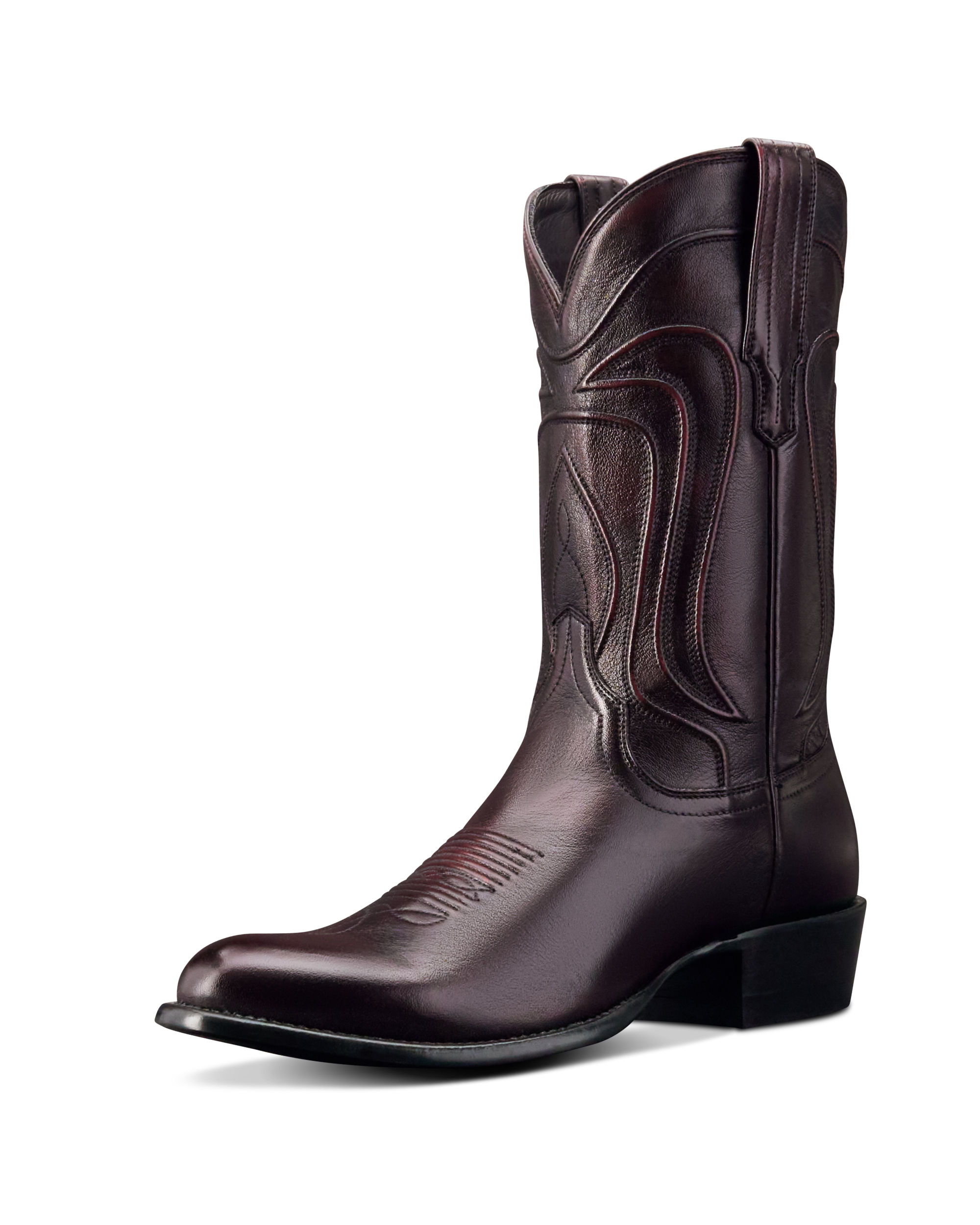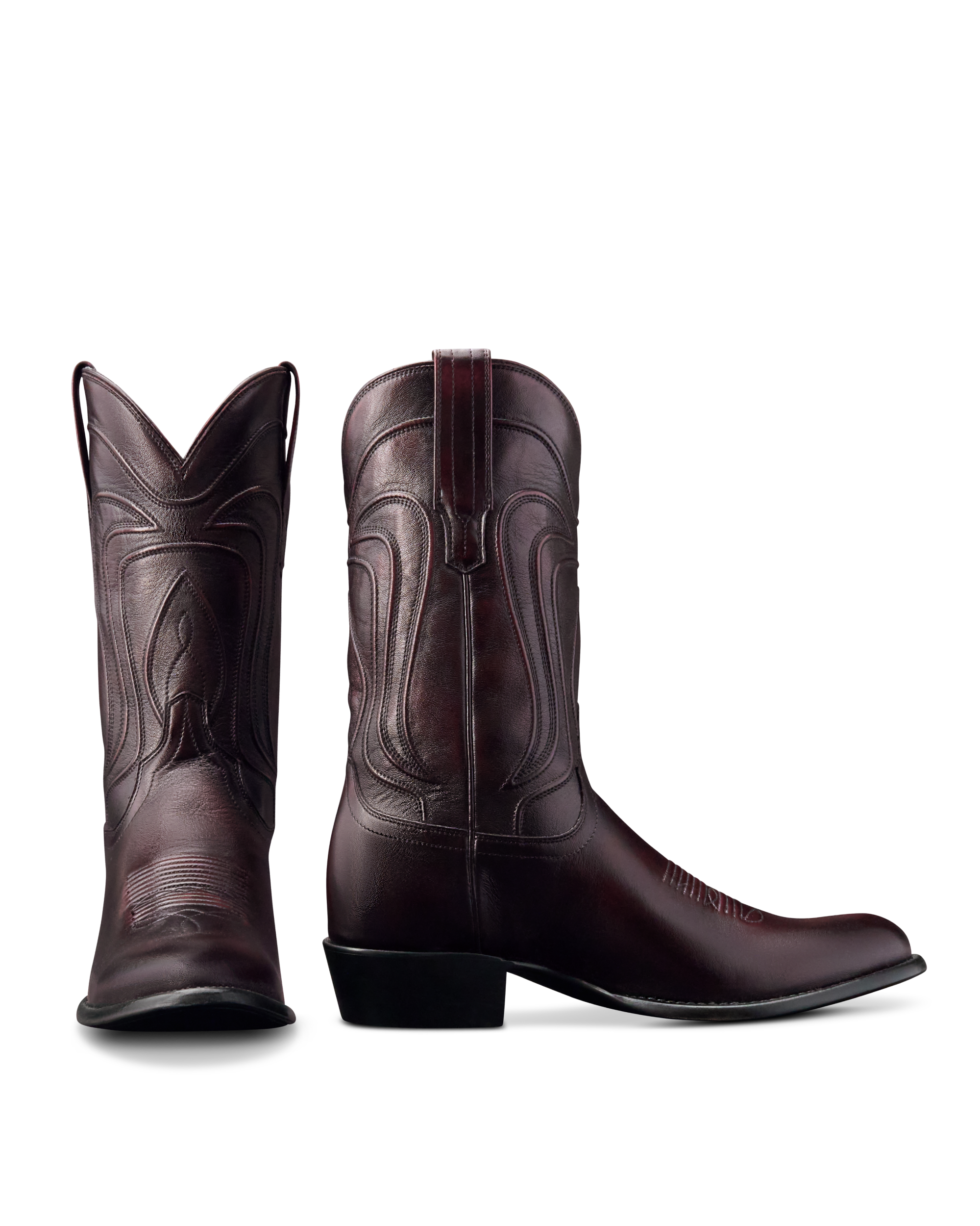 more vibrant cherry tones the more you wear it. Paired with a classic round toe, 1½” angled heel, and signature Tecovas toe stitching, it’s a timeless silhouette with a striking finish. The deep red hue makes it easy to dress up or down—refined enough for a wedding, rugged enough for a night out.