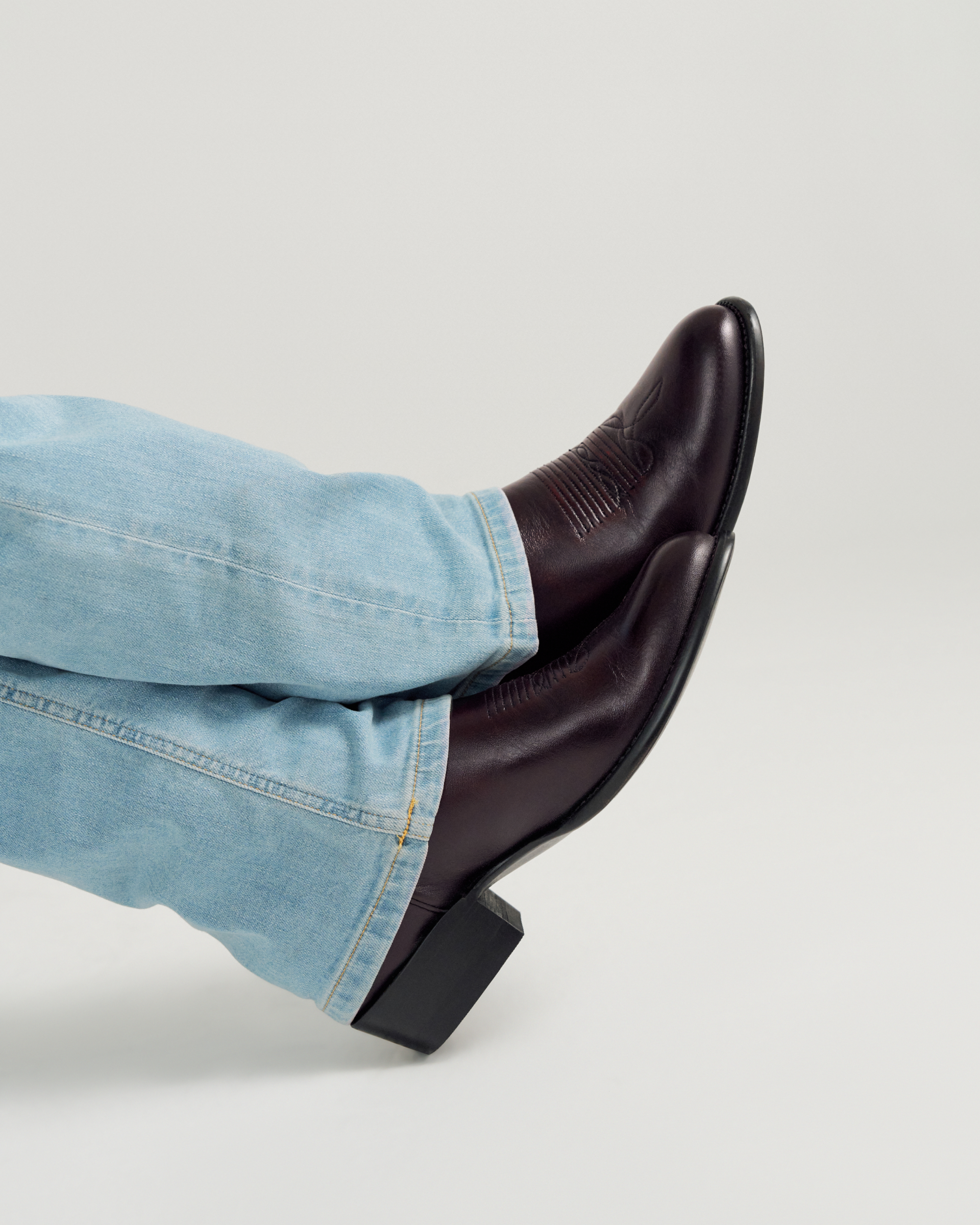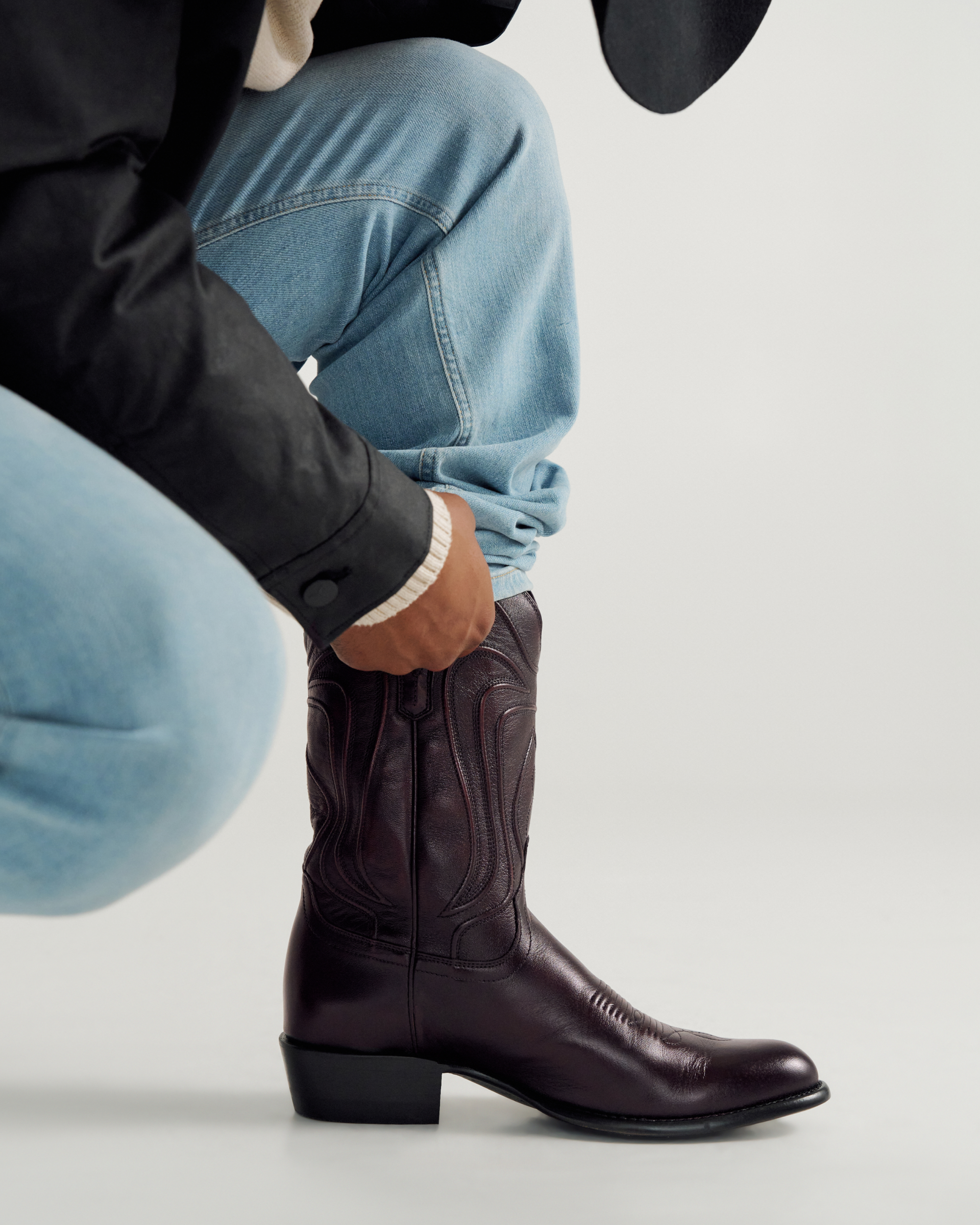The Cartwright steps out in a bold new colorway—featuring a Black Cherry cowhide shaft made from brushoff leather that