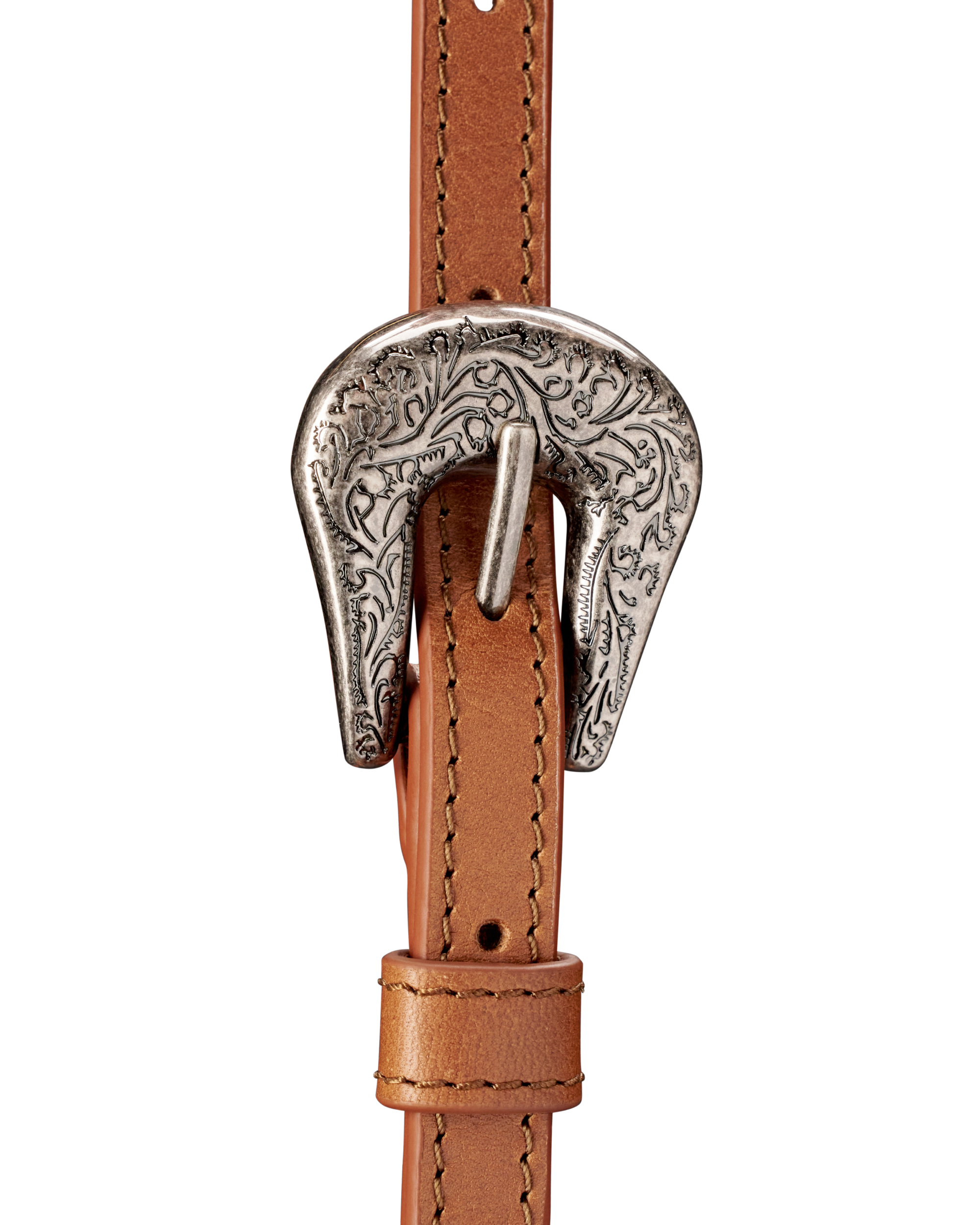 Solid brass hardware with a matte nickel finish; buckle in dark antique nickel