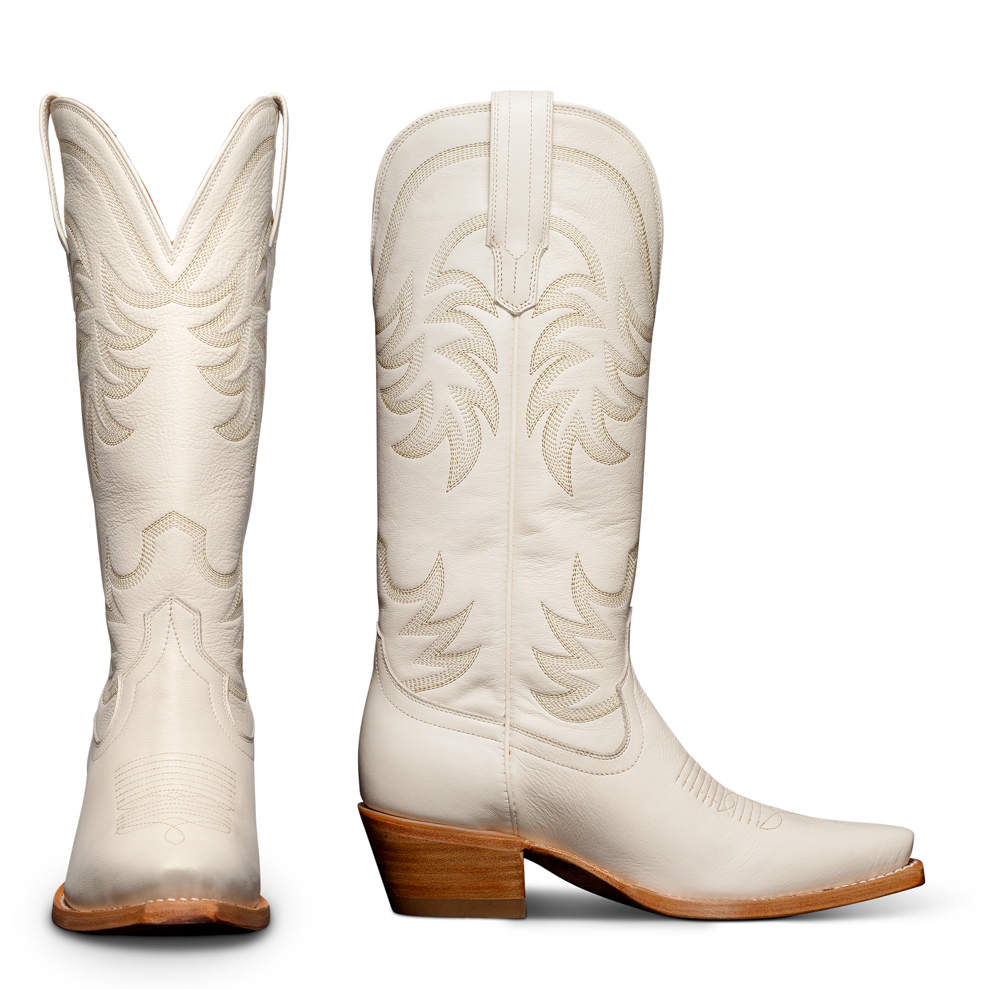 Meet The Annie, our best-selling cowgirl boot. Tall and timeless, a beautiful tonal stitching pattern adorns its 14” shaft, the top of which features a deep scallop for a comfortable, flattering fit. A fashion-forward snip toe leads the way and our signature toe stitching rounds out a classic look open to a wide range of styling possibilities. These premium boots are not to be missed and will age beautifully over time.
