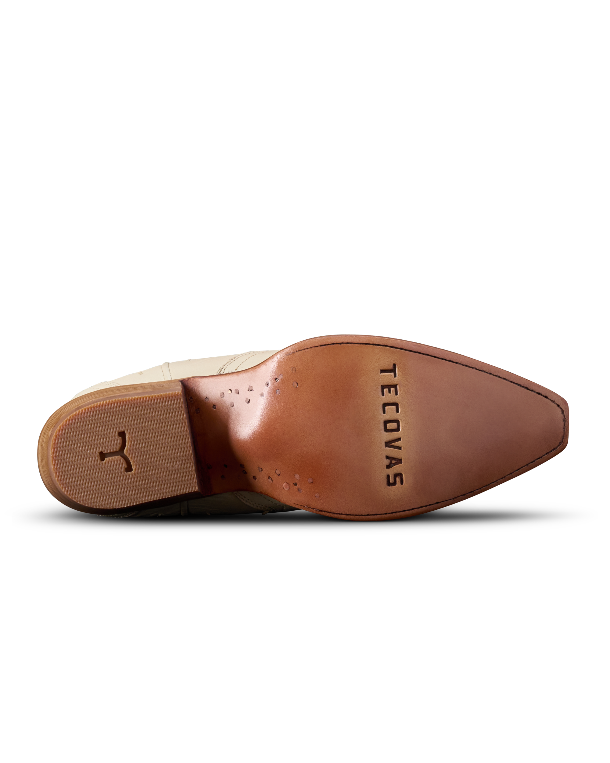 A tall showstopper, The Loretta features an intricately stitched 17” shaft with hung leather lining and a streamlined modern profile that’s made to be shown off. A 1 ¾” stacked leather heel and snip toe ensure comfort doesn’t take a backseat to looks, and our signature toe bug takes it all the way West.