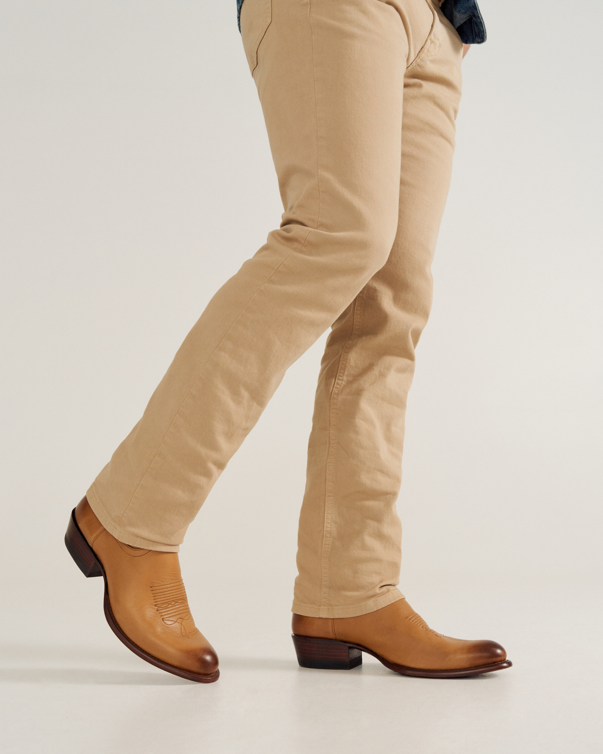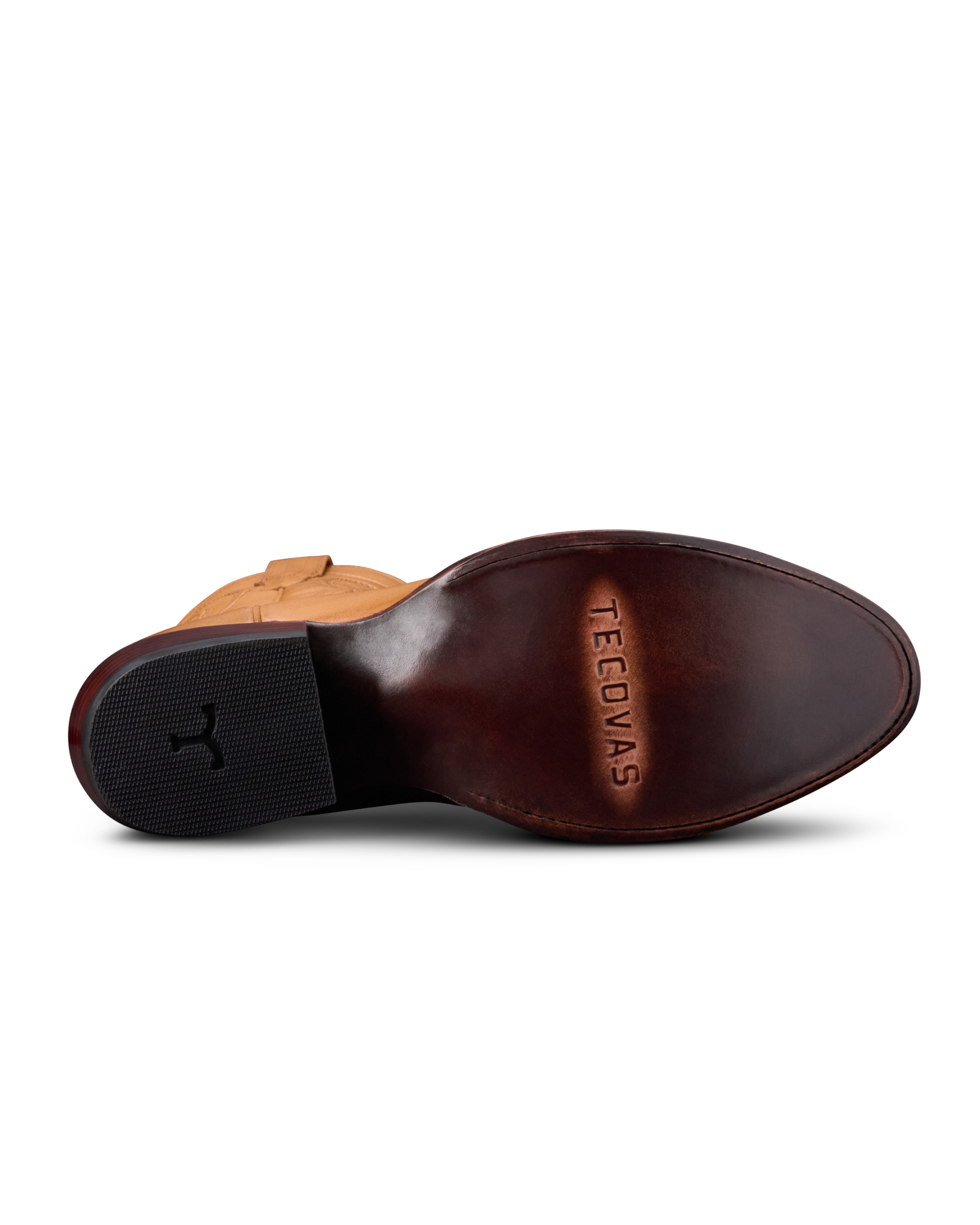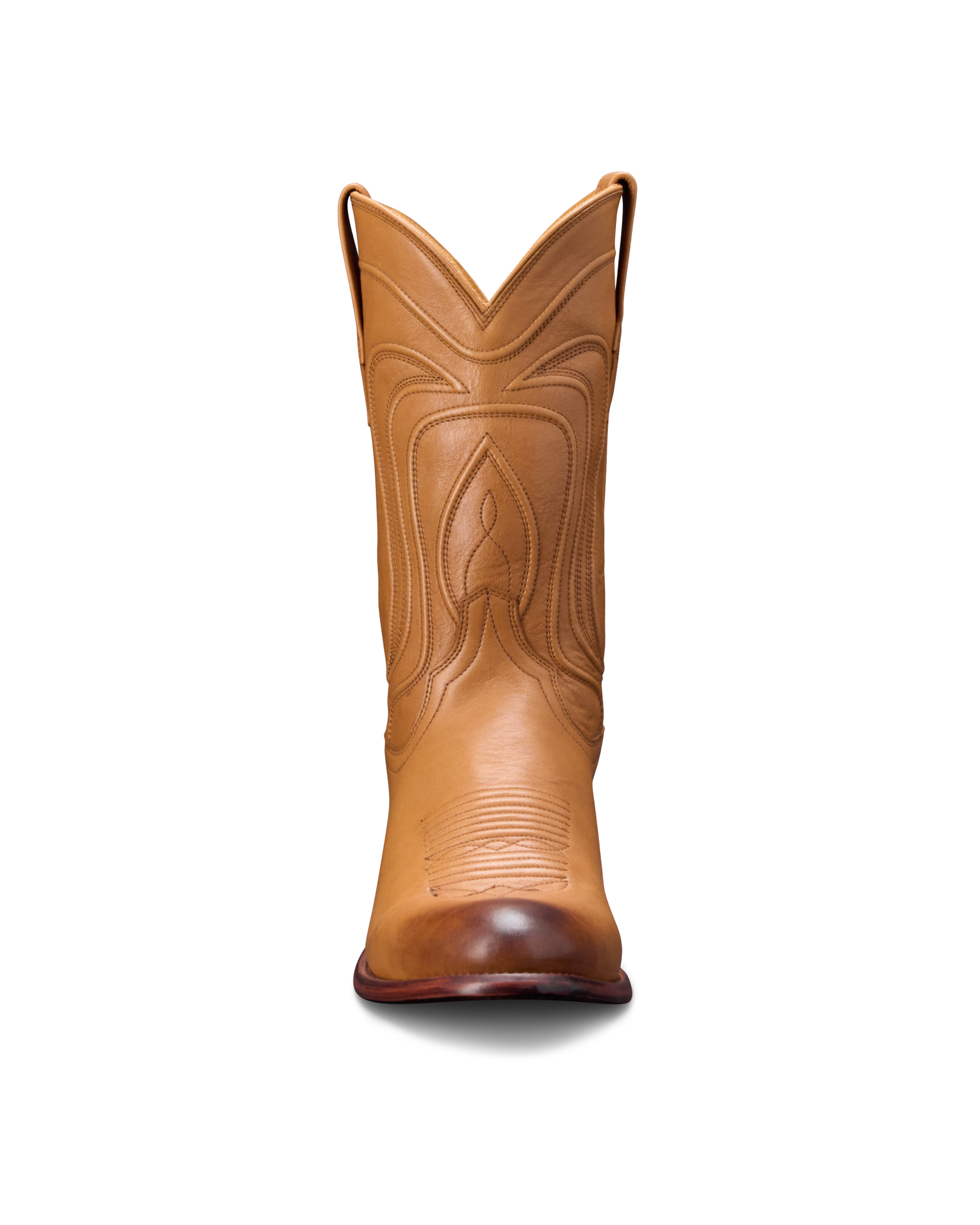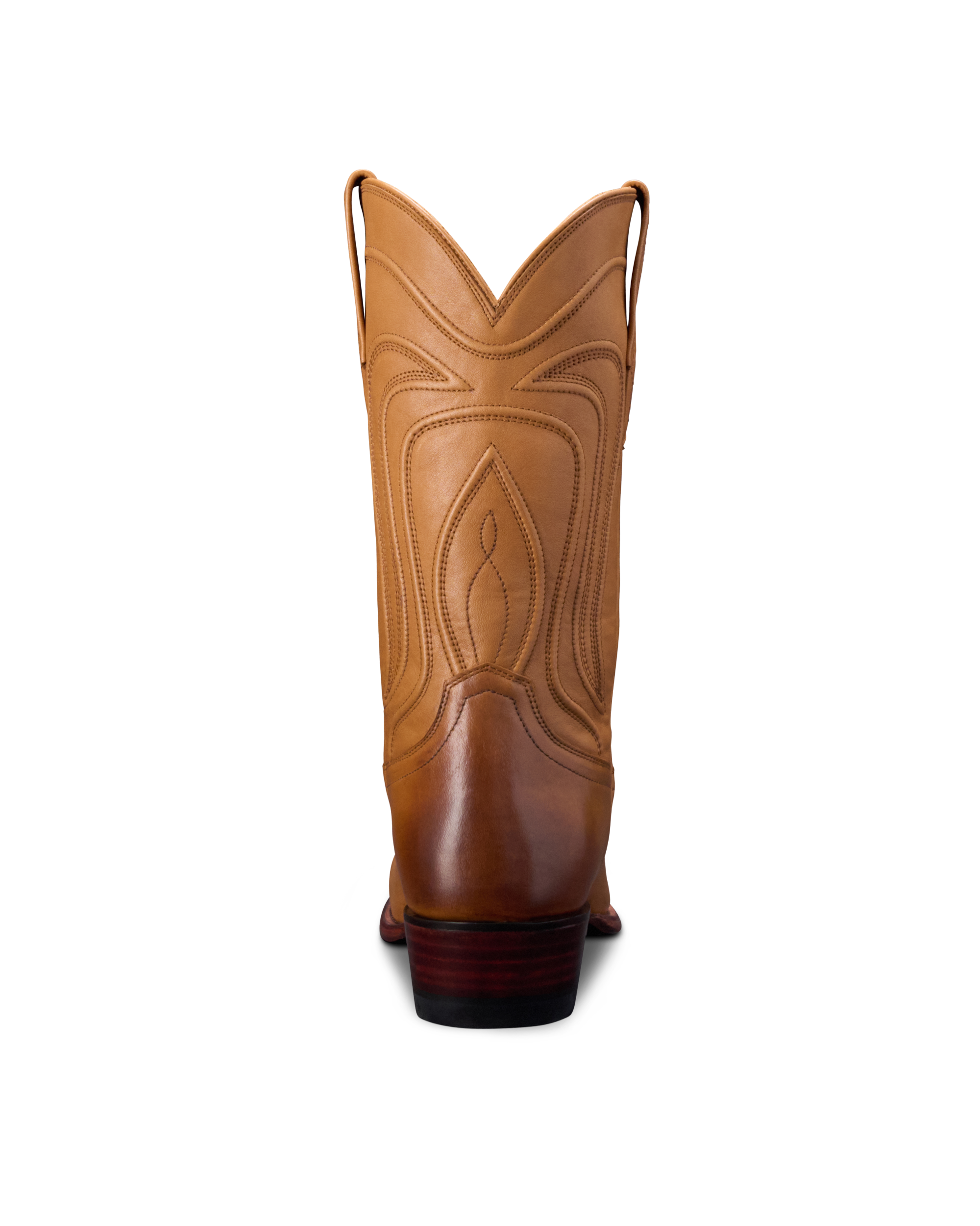 Our original cowboy boot is timelessly styled to look as good in 50 years as it does today. Its ageless nature starts with a classic round toe and 1 ½” stacked angled heel, and builds upon it with a vamp adorned with signature Tecovas toe stitching. A 12” shaft with hand-laid cording and reinforced pull straps complete its iconic western flair. You’re spoiled for choice: whether that be ultra-soft cowhide, rugged cowhide, or quick-to-patina goat. Suited up for an outdoor wedding, or decked out in denim and setting the dance floor ablaze at a honky tonk — The Cartwright was made for it.
