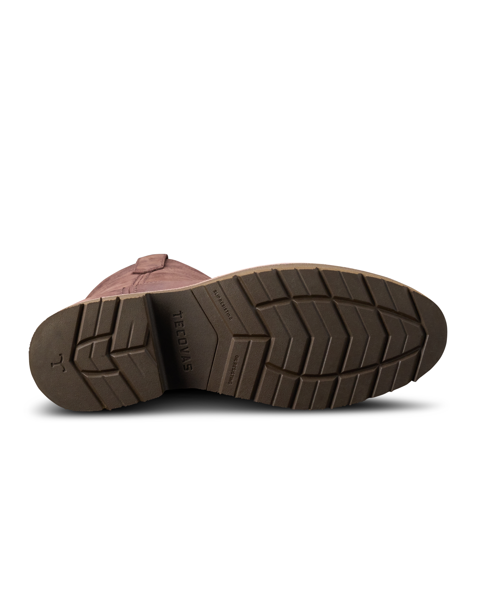 A timeless roper with modern guts, The Rugged Roper is the perfect boot for ranch work but also has the clean lines to wear around town or to the office. A dual-density cushioned outsole, our own energy-returning Total Energy Command (TEC) insole system, and a removable, cushioned footbed leave nothing on the table by way of comfort. Its light-lugged MuckOFF Tread is self-cleaning and oil and slip-resistant, and a breathable bootie and treated leathers help keep your feet dry. Here in water-resistant cowhide and roughout.