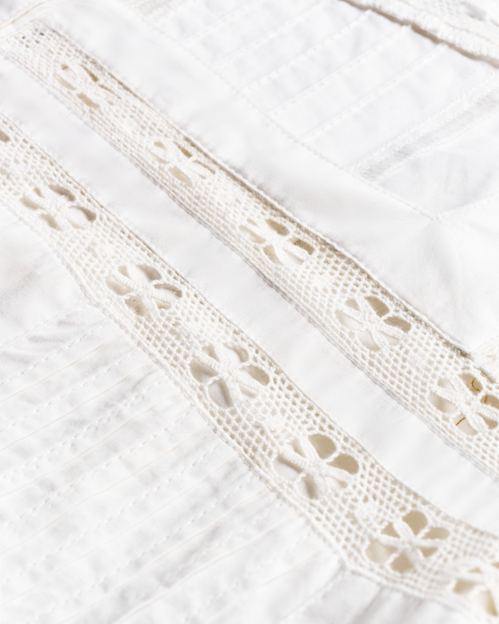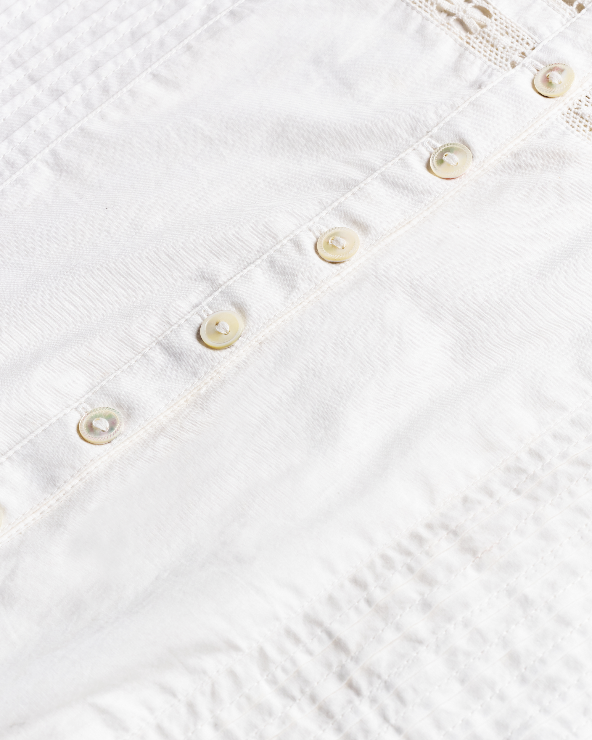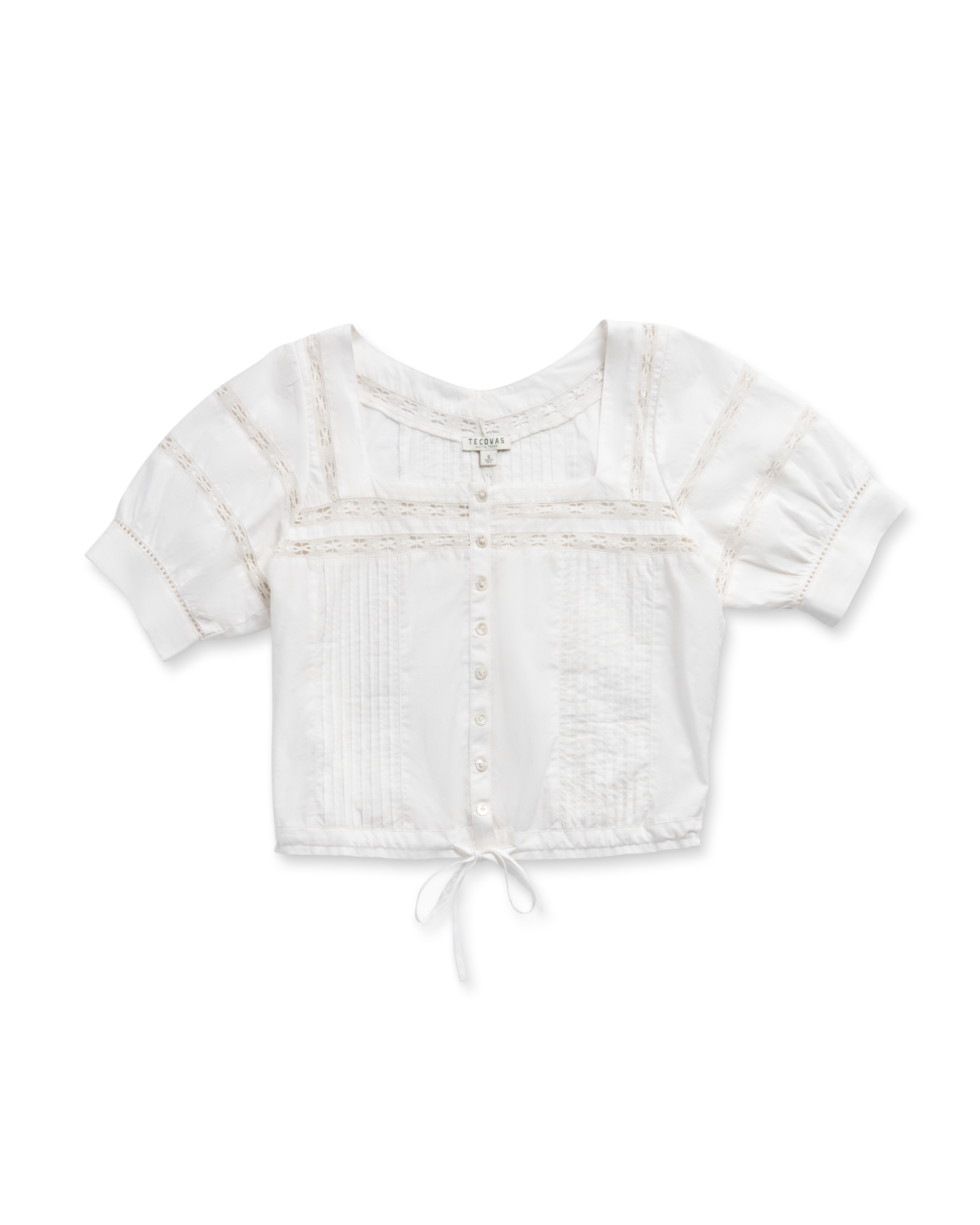 The Women’s Cotton Poplin Top personifies the best of the fashion we know and love. Slightly cropped with lace and pintuck details, a button front, and classic slightly puffed sleeves, it’s a premium piece where each flourish adds up to a total outfit-maker.