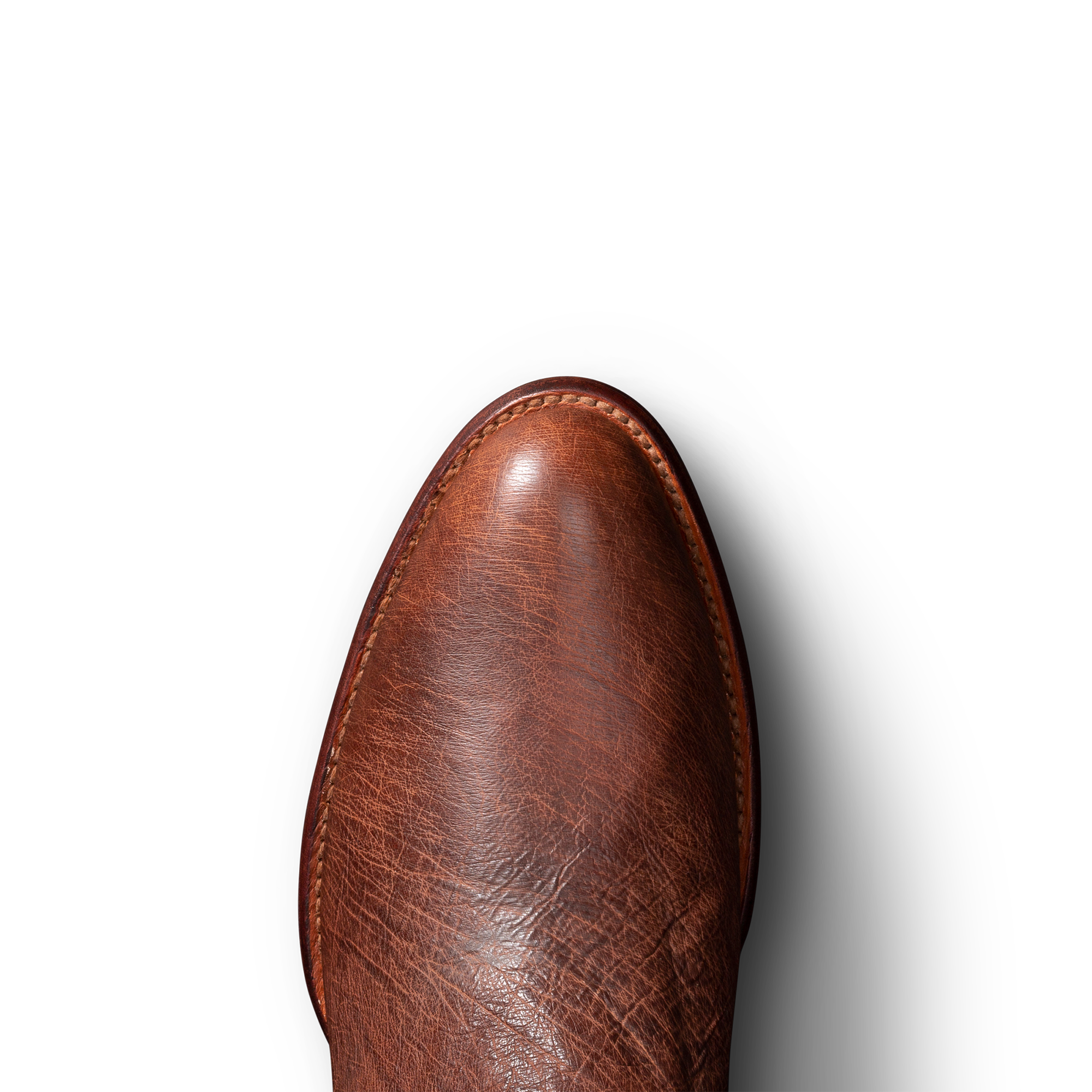 Our smooth ostrich roper brings the rich tones of this soft, yet durable hide to a low profile for a refined exotic look you’ll find yourself stepping into again and again. A naturally varied look is a hallmark of smooth-quill ostrich, and each pair is sure to feel unique. Step into Russet for its more subtle contrasting goat shaft, or look for reasons to pull up your pant leg and make a statement in Chocolate with a Sand colored shaft. Either way, they’ll serve you well from Monday morning presentations to Friday happy hours.