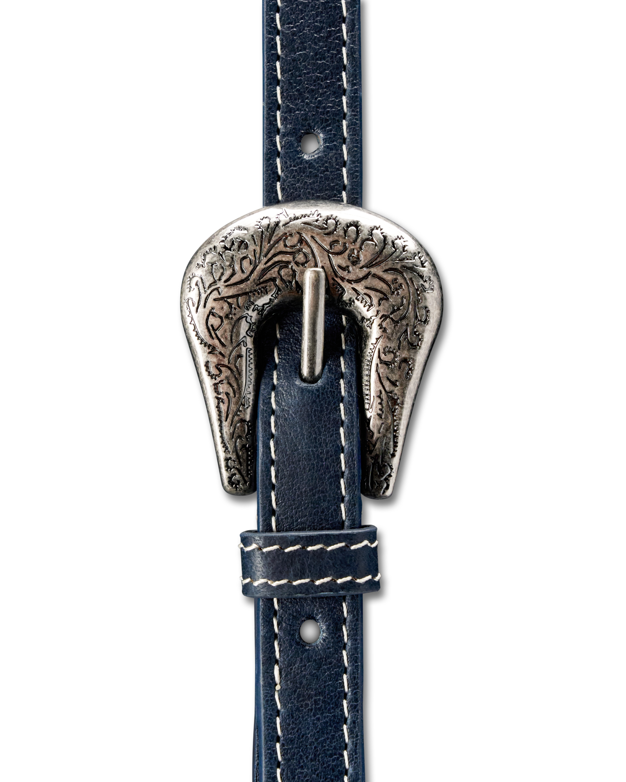 Solid brass hardware with a matte nickel finish; buckle in dark antique nickel