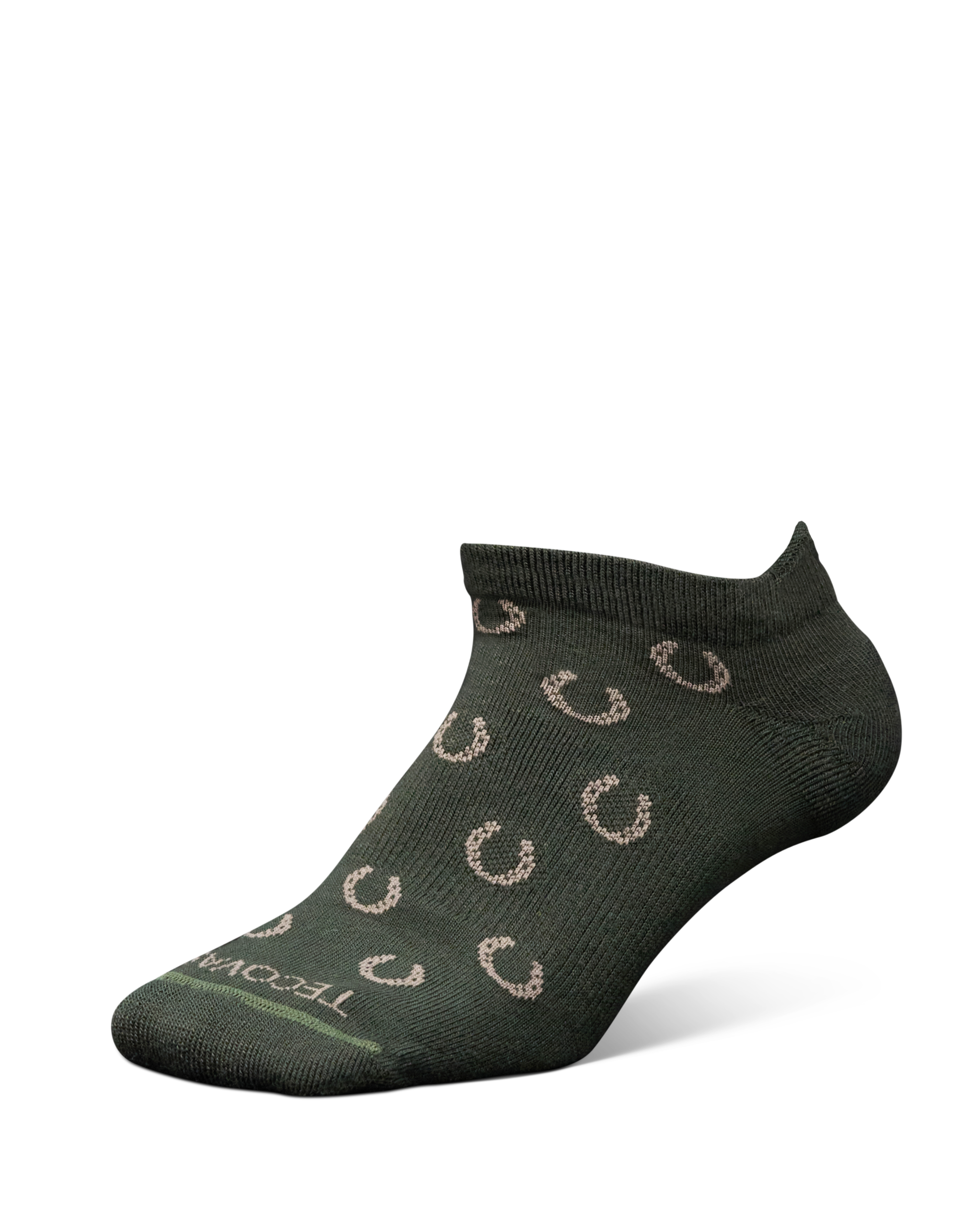 Finished with an allover horseshoe pattern and Tecovas branding at the toe, these ankle socks bring subtle Western style to your everyday lineup. With full cushioning, arch support, and moisture-wicking comfort, they’re made to wear on repeat.