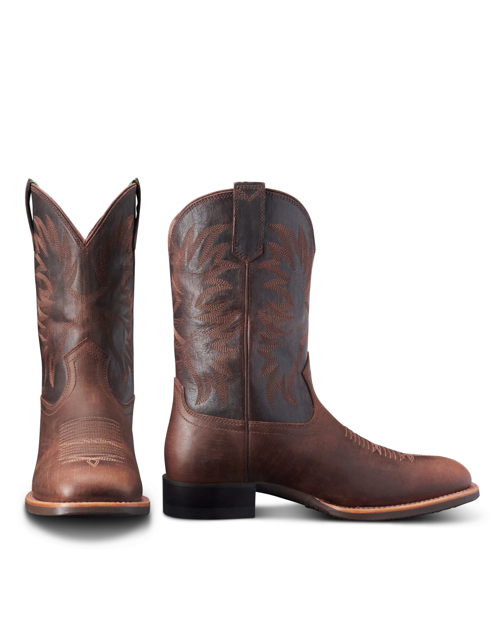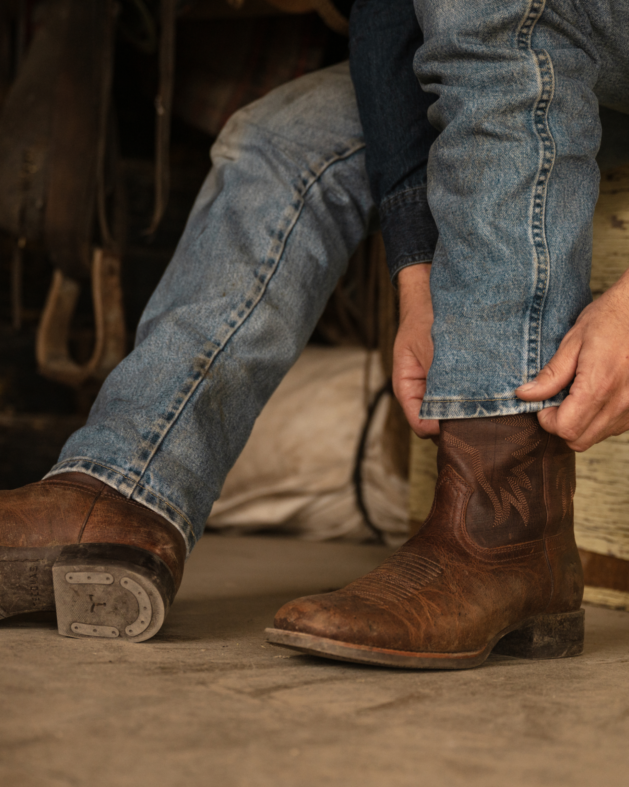 Lightweight yet rugged, The Dusty is built for those on the move, offering lasting comfort and durability. A breathable mesh-lined cowhide vamp keeps your feet cool, while the cushioned footbed ensures all-day support. The comfortable rubber sole provides reliable traction, and the lambskin-lined 11” shaft features vintage-inspired six-row stitching, reinforced nylon pull straps, and a stained leather welt for a refined finish. These boots are your versatile go-to for any day that ends in “Y.”