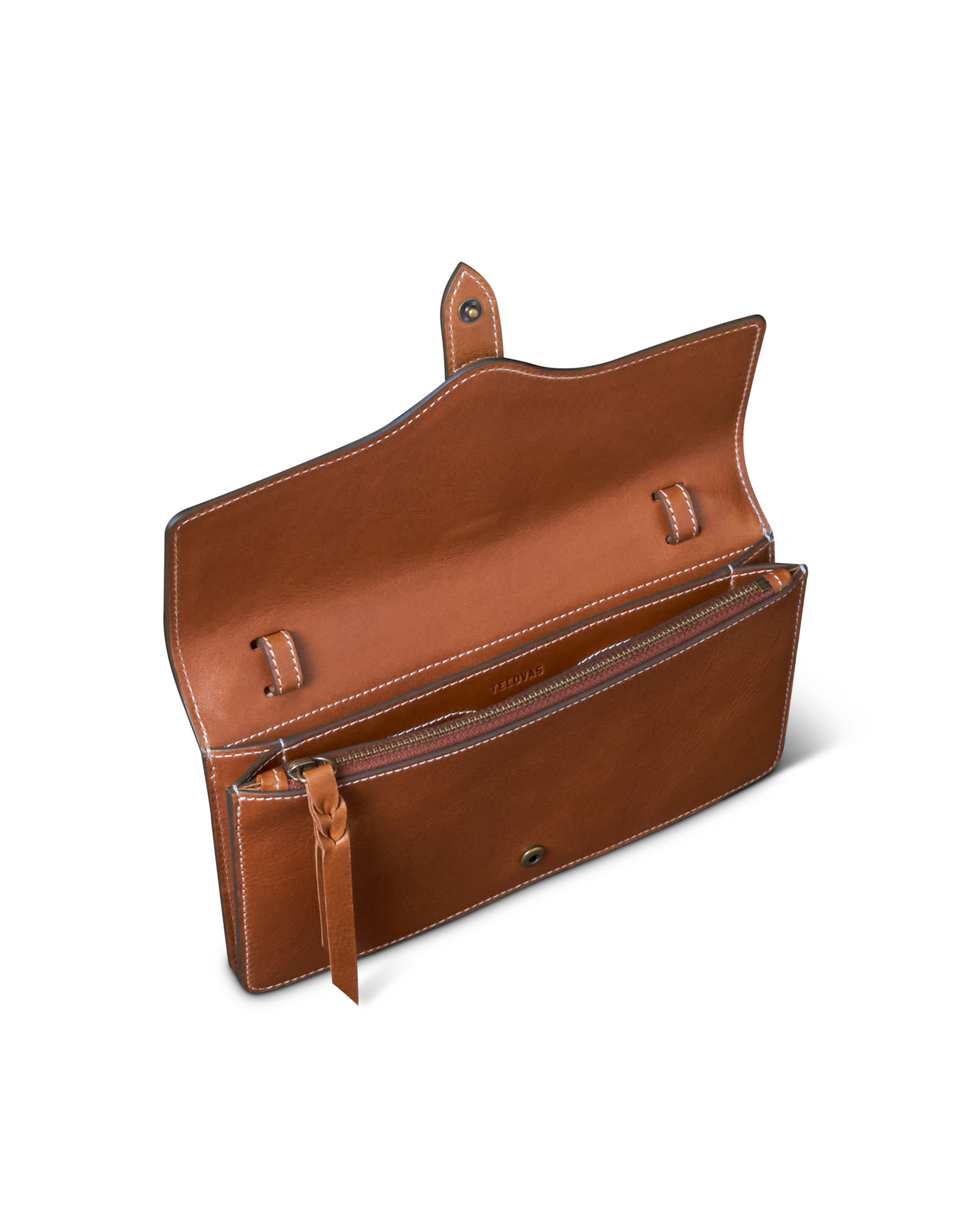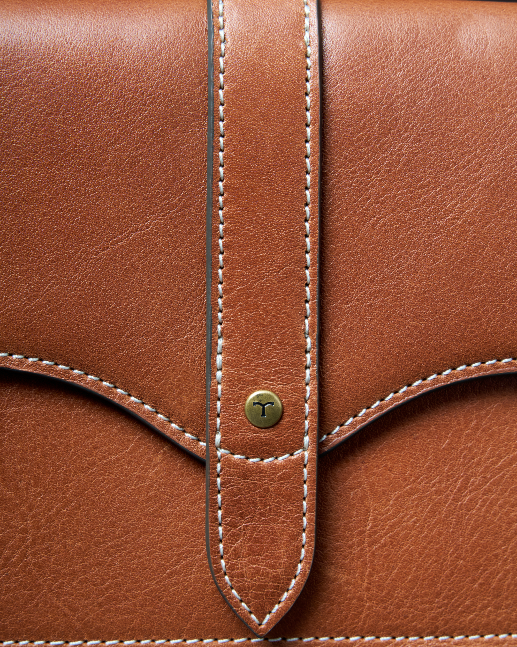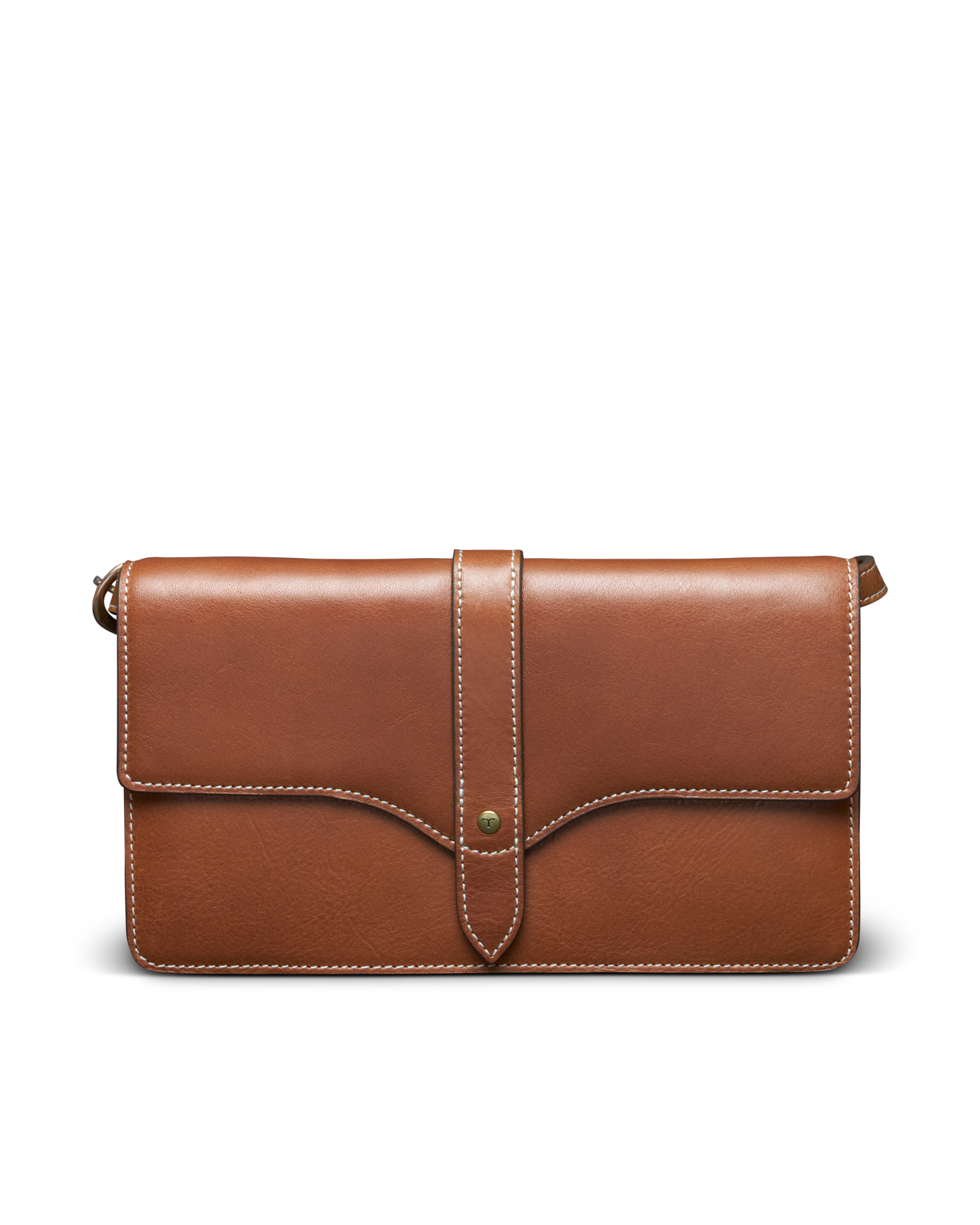 A versatile purse, the Sierra Convertible Crossbody can be comfortably carried on the shoulder, crossbody, or carried as a clutch, all thanks to a convertible and removable strap. Lightly glazed smooth cowhide leather with just a hint of grain provides a clean, timeless look, and solid brass hardware ensures durability while adding tasteful detail. Its top flap has a magnetic snap closure, and its twill-lined interior will keep your essentials in line with two interior compartments and an interior zip pocket. It also has a back exterior bonus slip pocket when you want extra fast access.