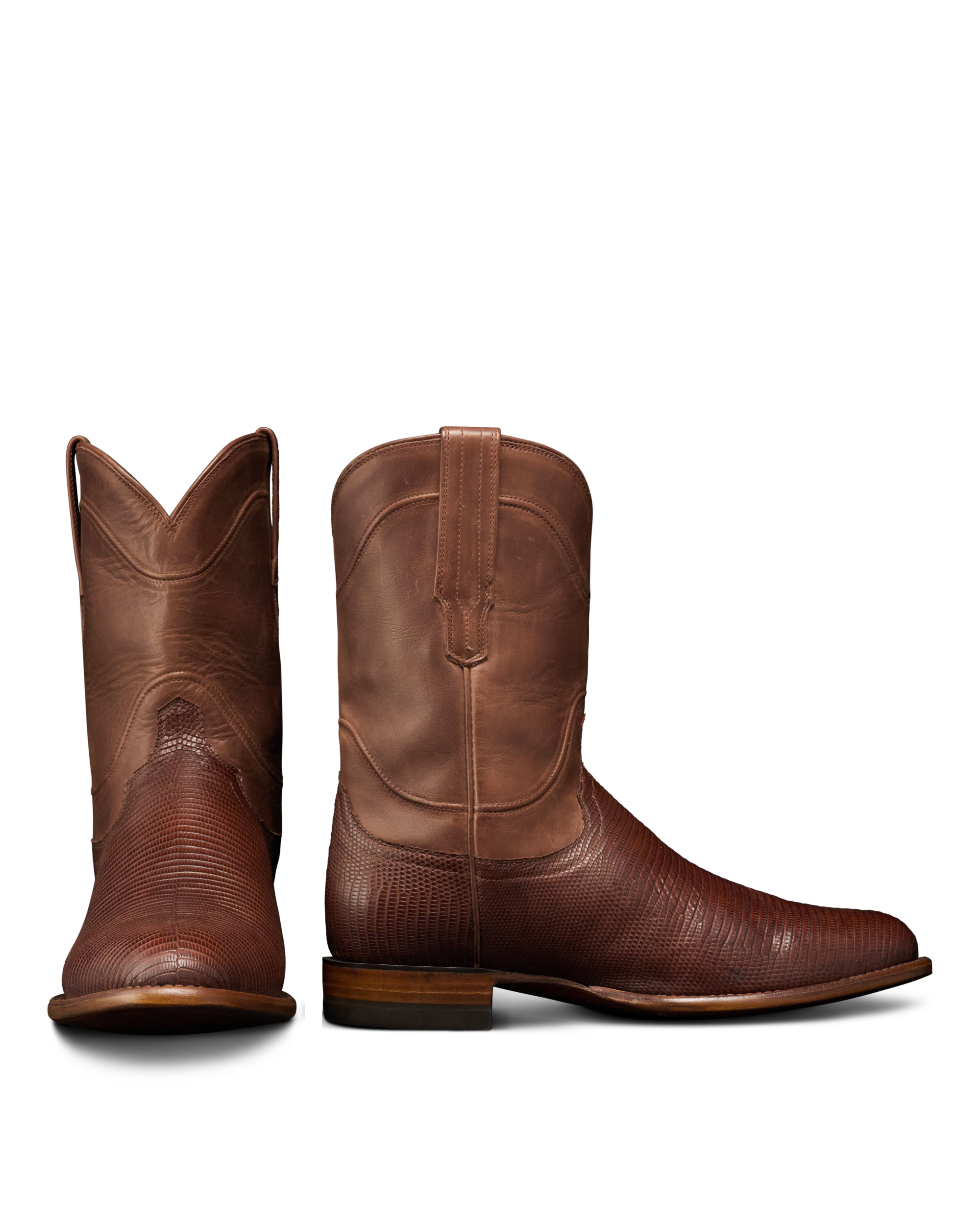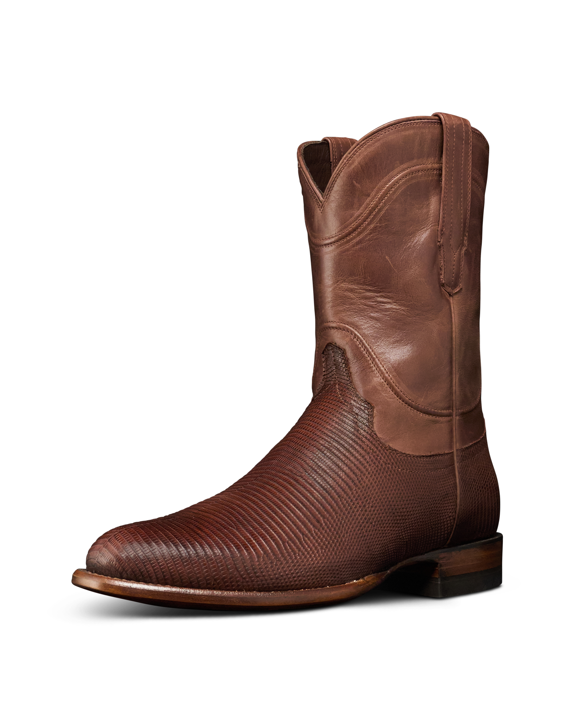 The Nash is an exotic roper boot, featuring supple lizard leather hand-lasted in our classic roper profile. A shorter heel and simple, elegant cowhide shaft showcase our most affordable exotic leather in a classic profile.