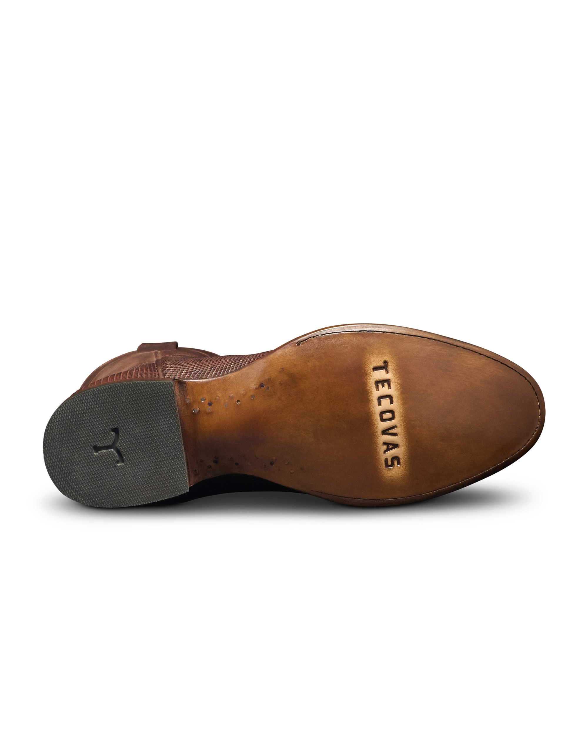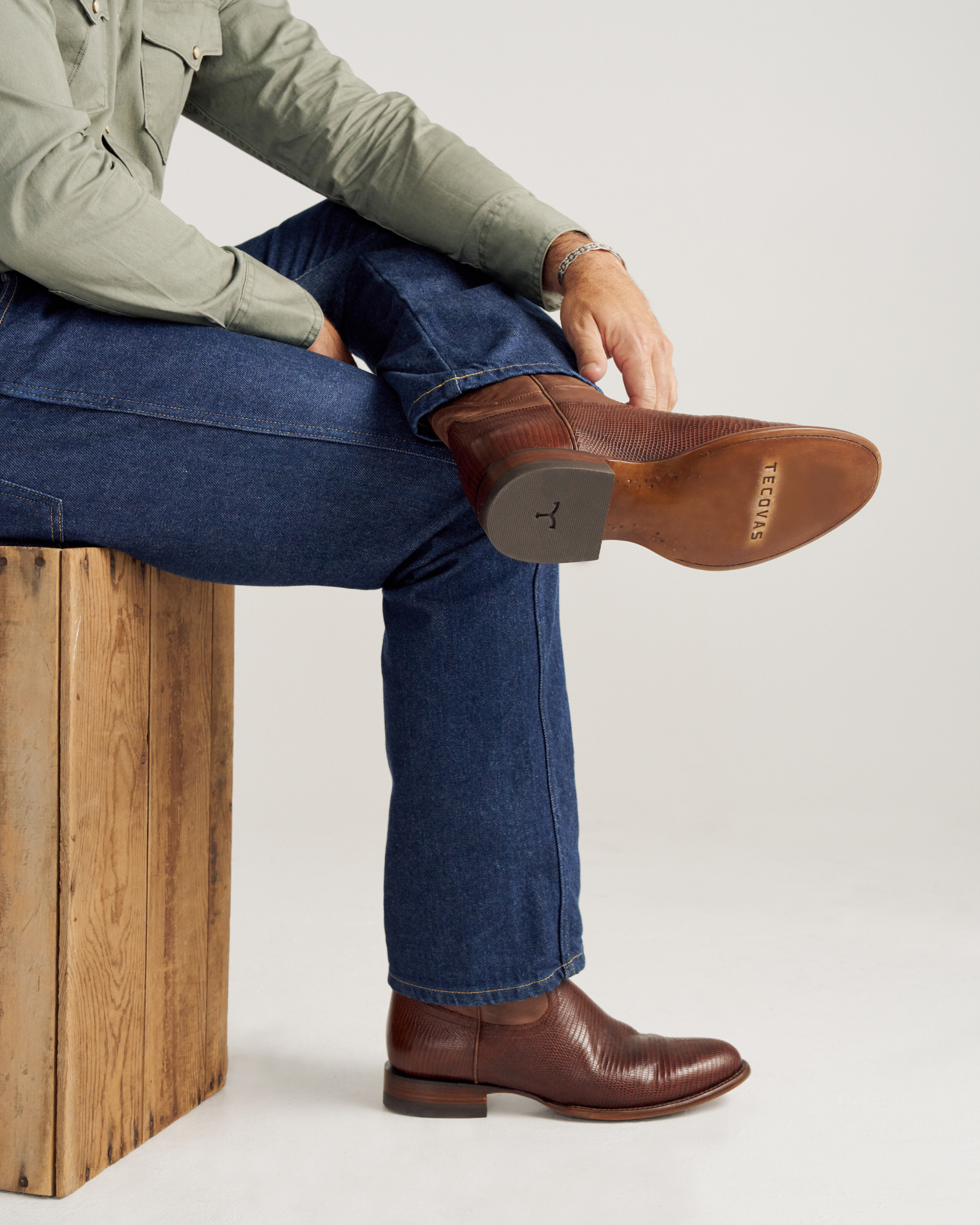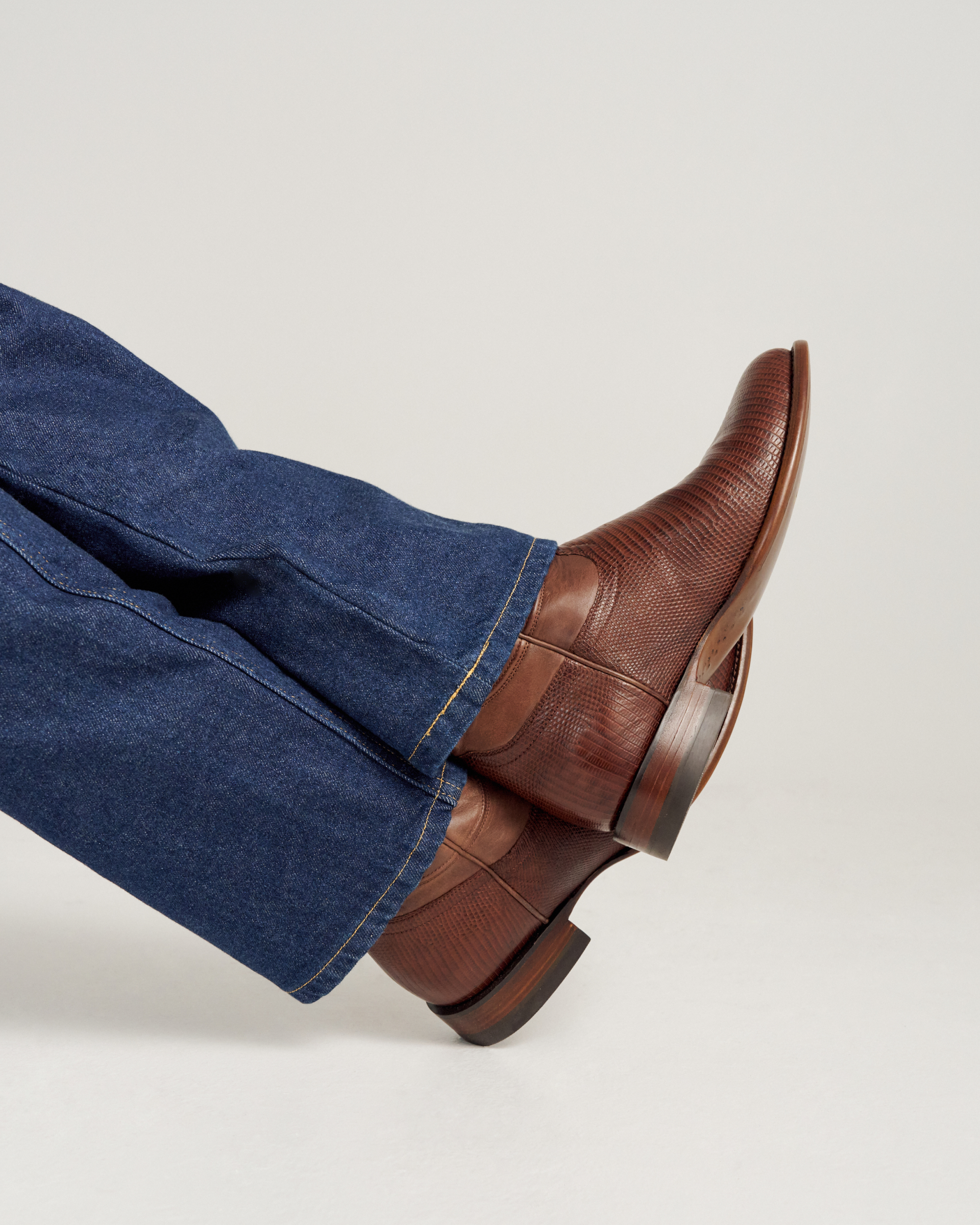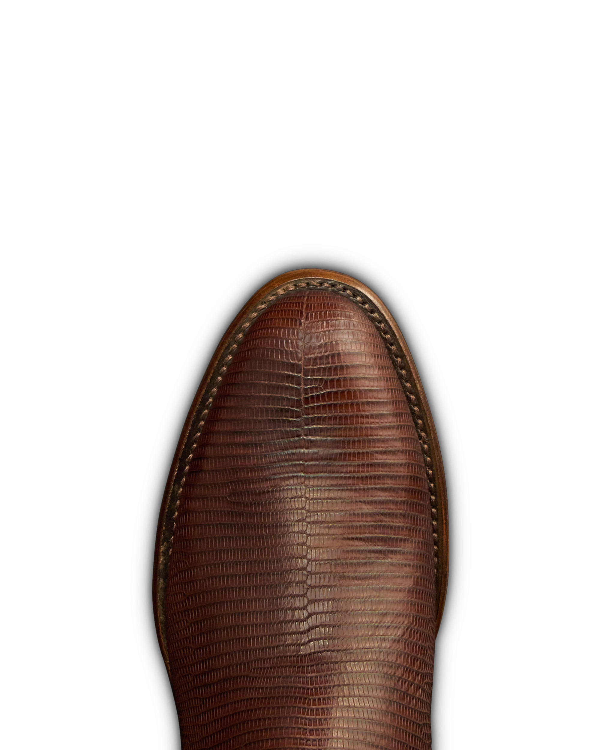 Our lizard of choice, Varanus salvator or water monitor is an exotic reptile hide that has a unique natural belly seam. When aligned on two boot vamps, it makes for a striking symmetrical look. Opt for our exclusive Relic finish for a boot that adds visual texture and wears its unique battle scars with pride.