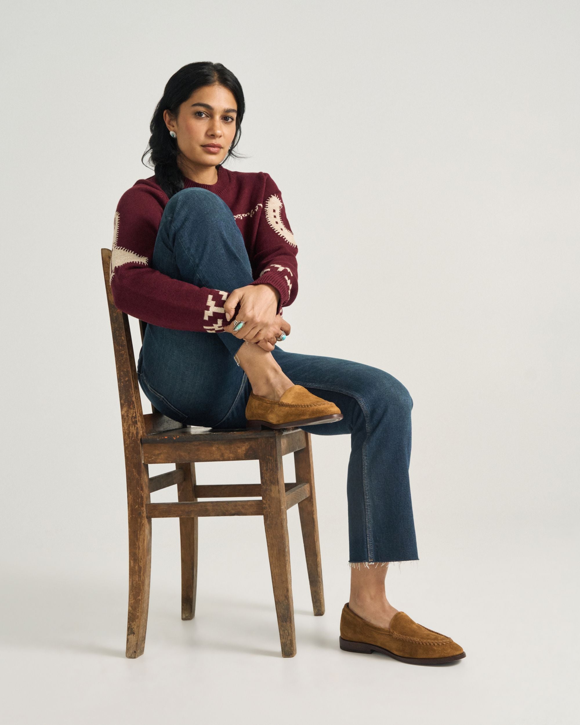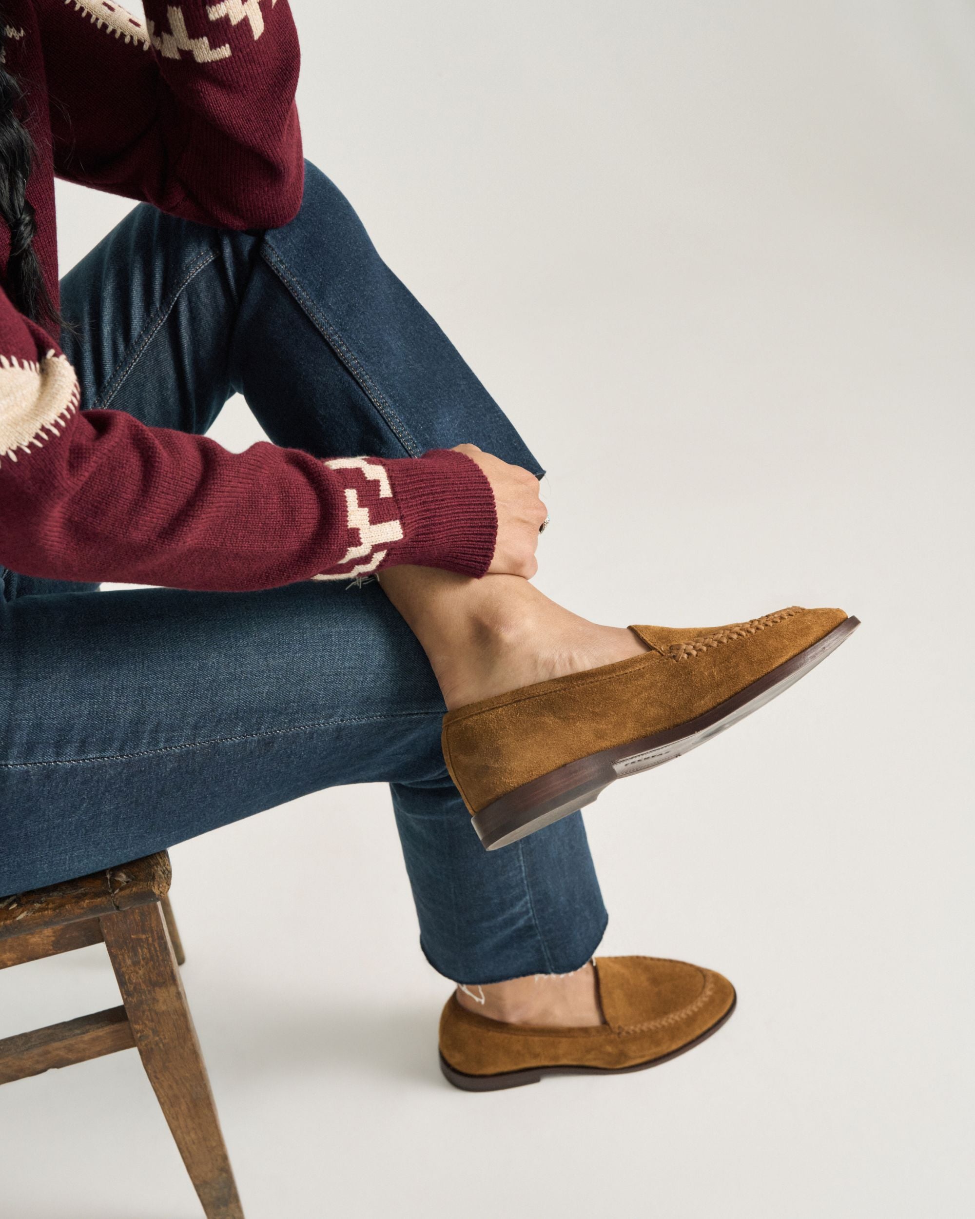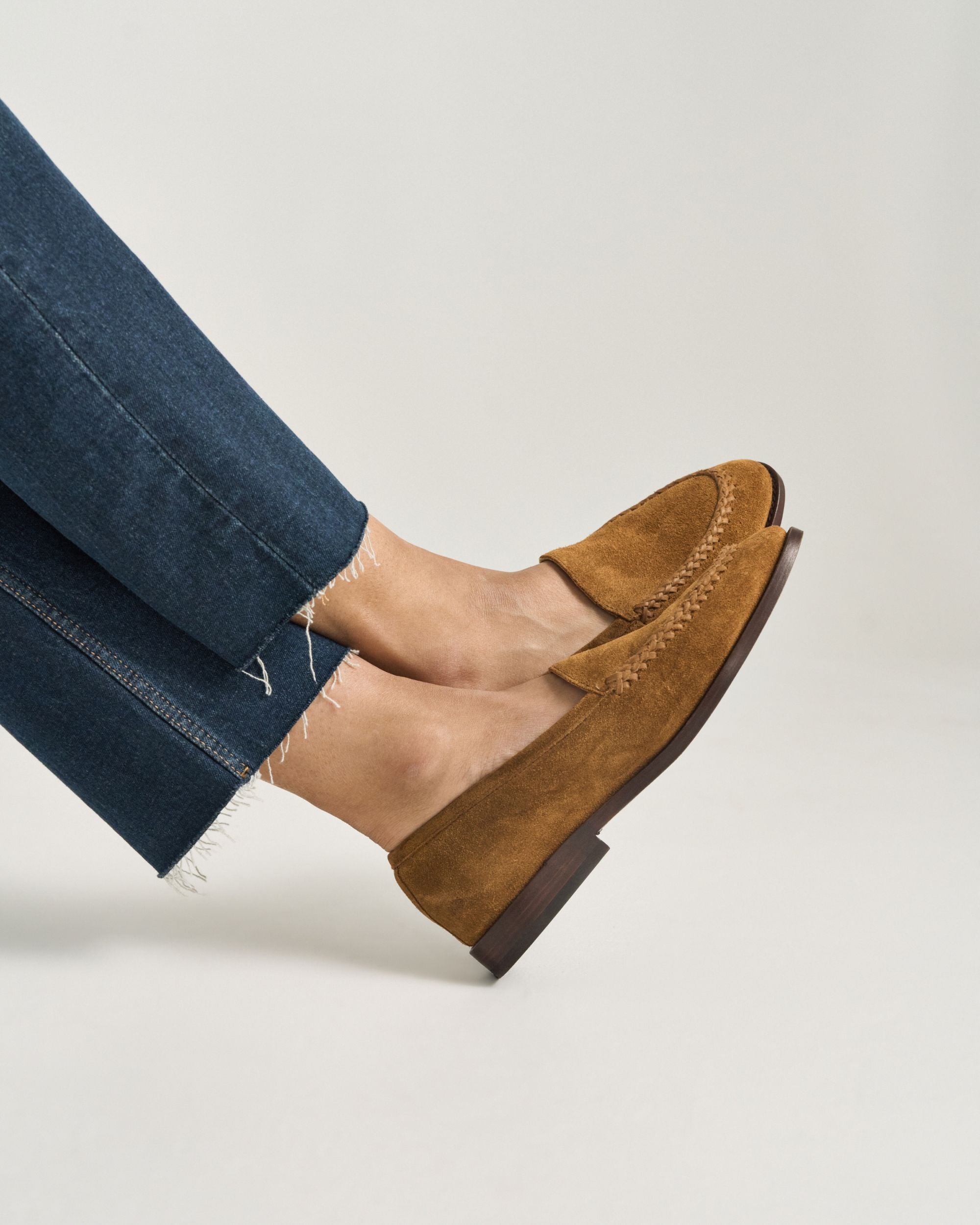 Meticulously braided by hand, the Claire loafer blends refined craftsmanship with everyday versatility. Crafted from water- and stain-resistant suede, this round-toe loafer features a hybrid outsole for all-day comfort and durability. Subtle braided detailing adds texture and character, seamlessly blending style and function from workdays to nights out.