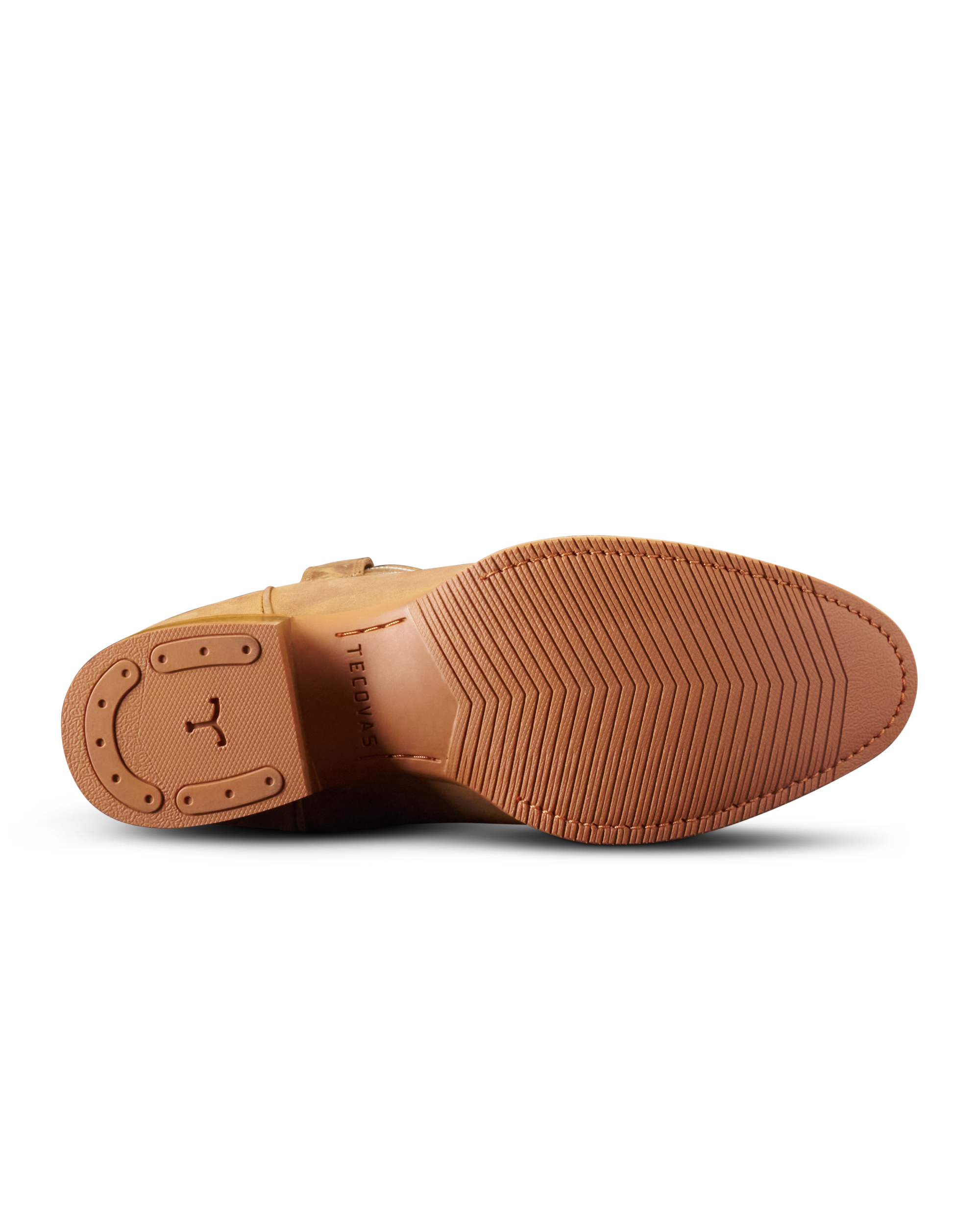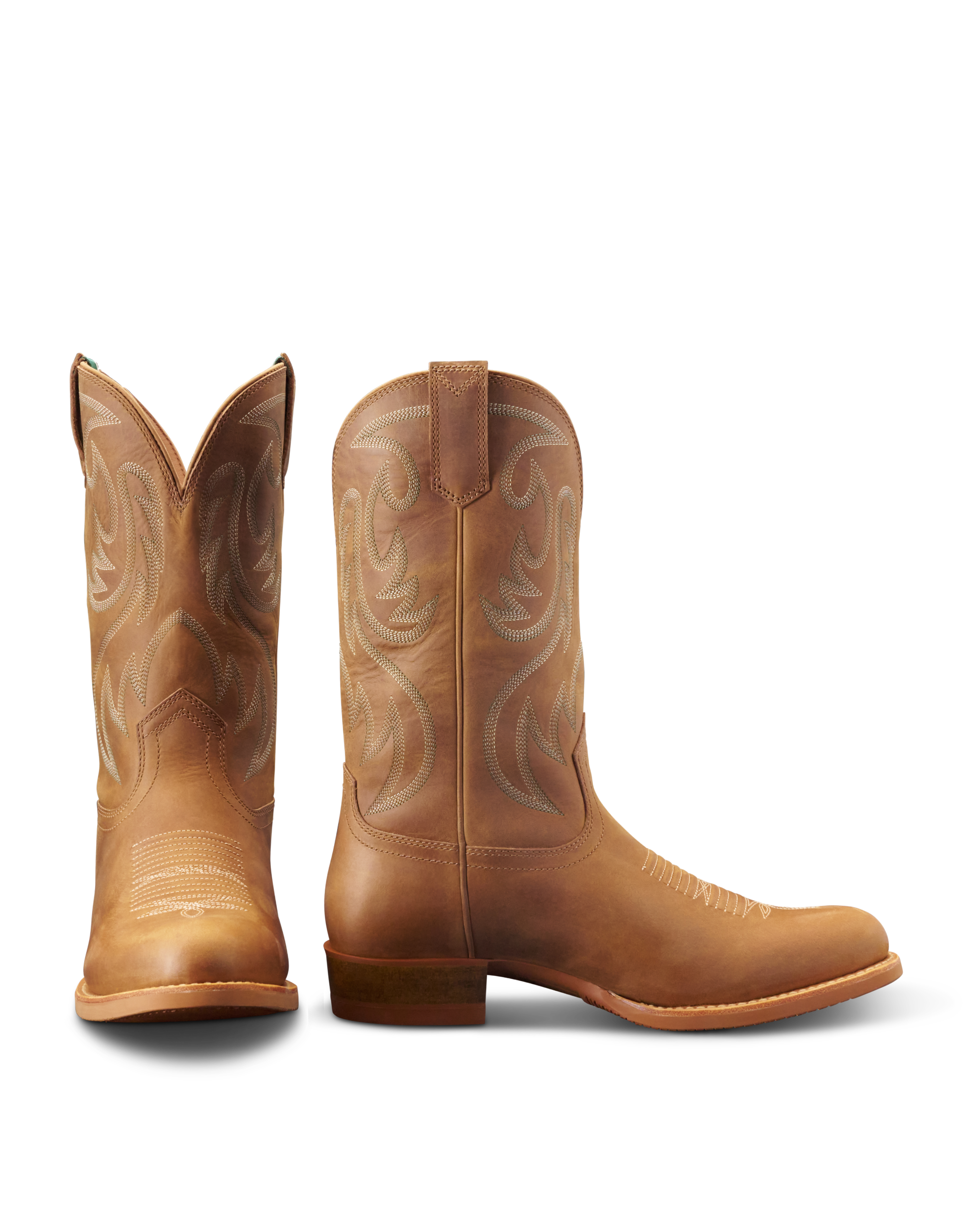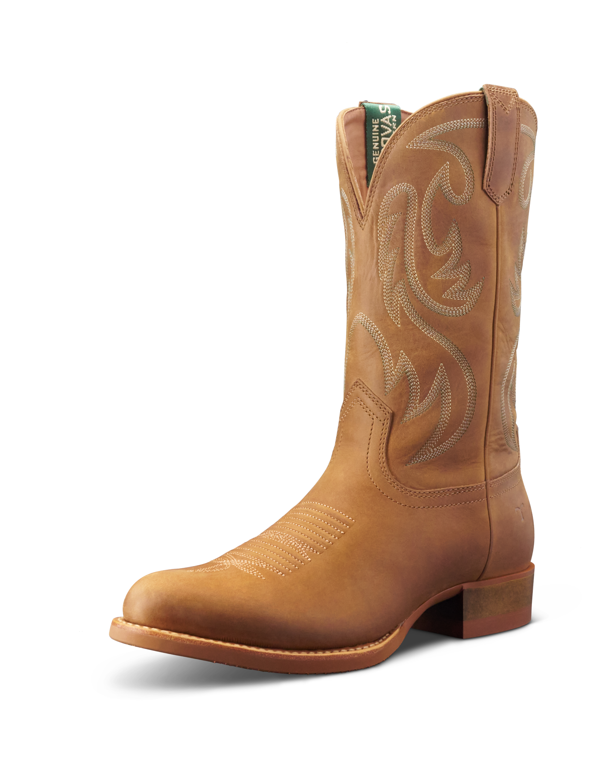 Crafted for all-day wear, The Buck is designed to go the distance with comfort and durability at its core. Made from rugged cowhide, this boot is built tough while breaking in beautifully over time. Beneath the surface, a cushioned removable footbed provides tailored support, while the breathable mesh-lined vamp keeps your feet cool from dawn to dusk. The treaded rubber sole ensures grip on any terrain. Finished with a hung lambskin-lined 11” shaft, vintage-inspired stitching, and reinforced nylon pull straps, The Buck blends classic Western style with modern comfort ready for wherever the day takes you.