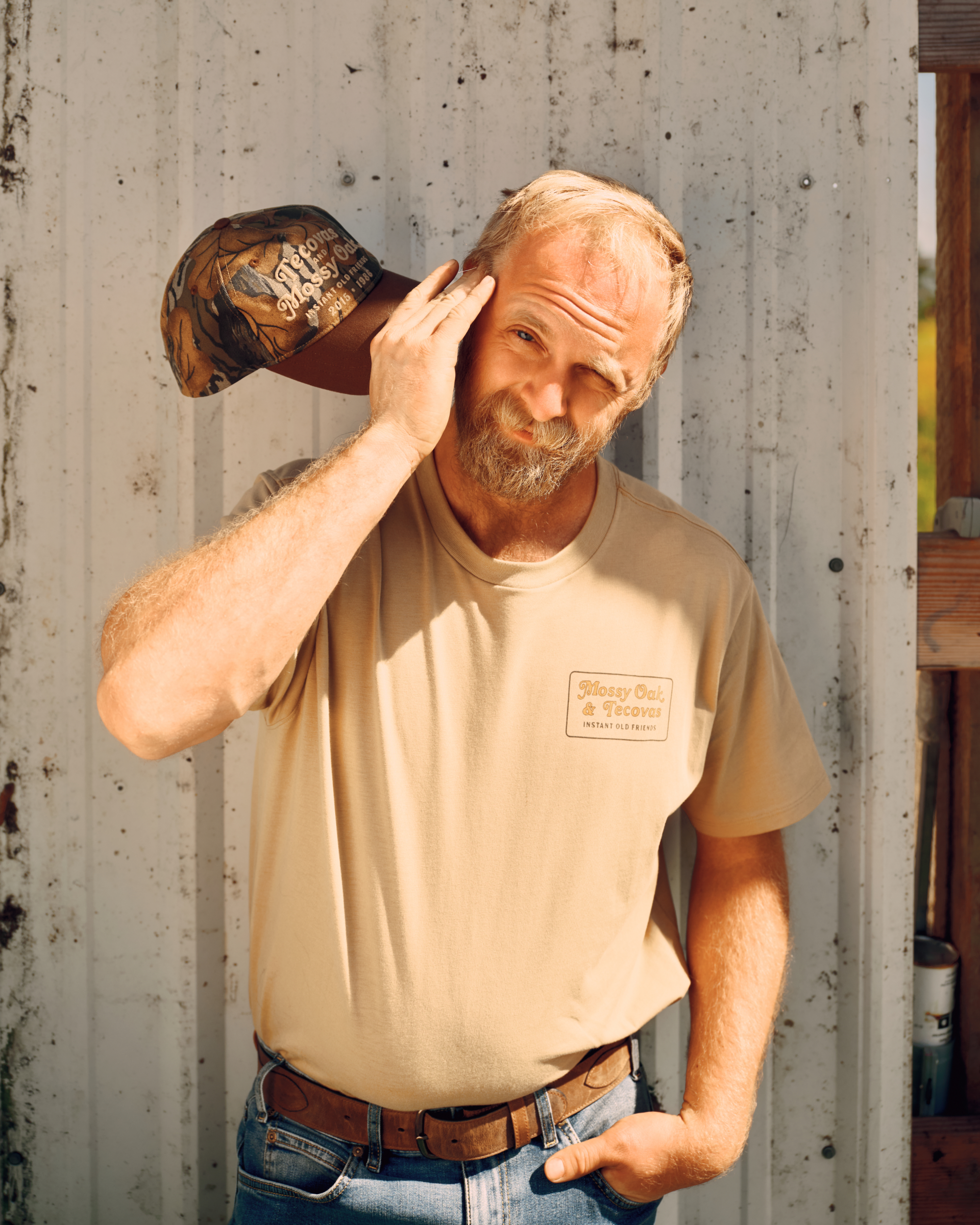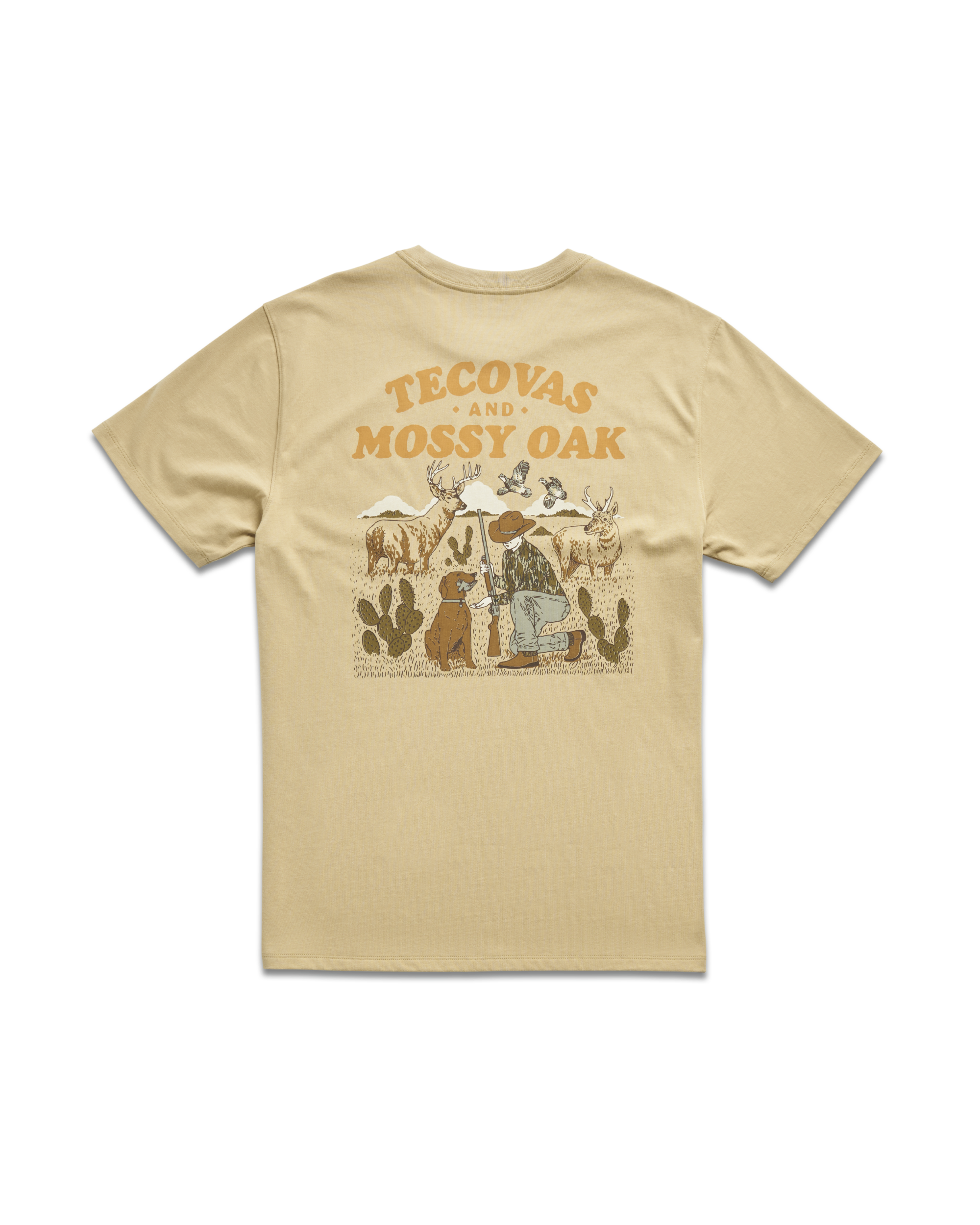 A lone hunter kneels in a desert valley with his trusted companion, surrounded by cacti, cliffs, and wide-open sky. This tee brings that quiet moment to life with an original graphic scene—woven through with Mossy Oak’s iconic Bottomland camo. Made from soft, breathable 100% Supima cotton and finished with a standard fit and tagless design, it’s part Western, part outdoorsman, and built for whatever the day brings.