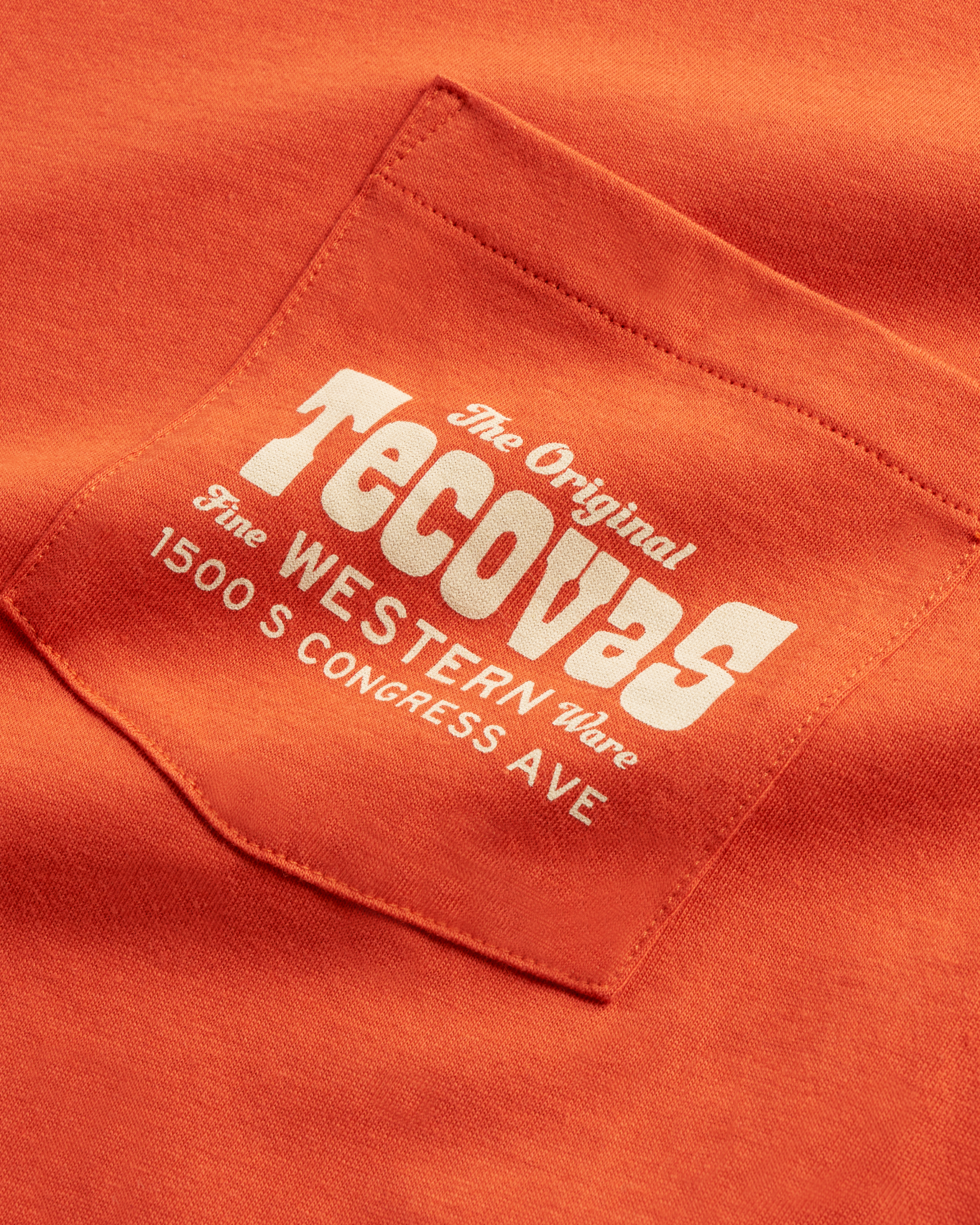 This 100% pima cotton tee brings soft, laid-back comfort with a vintage-style twist. Featuring Original Tecovas Fine Western Wear on the front and our Austin flagship store address on the back, it’s a stylish way to rep where it all started—pocket included, tagless for all-day ease.