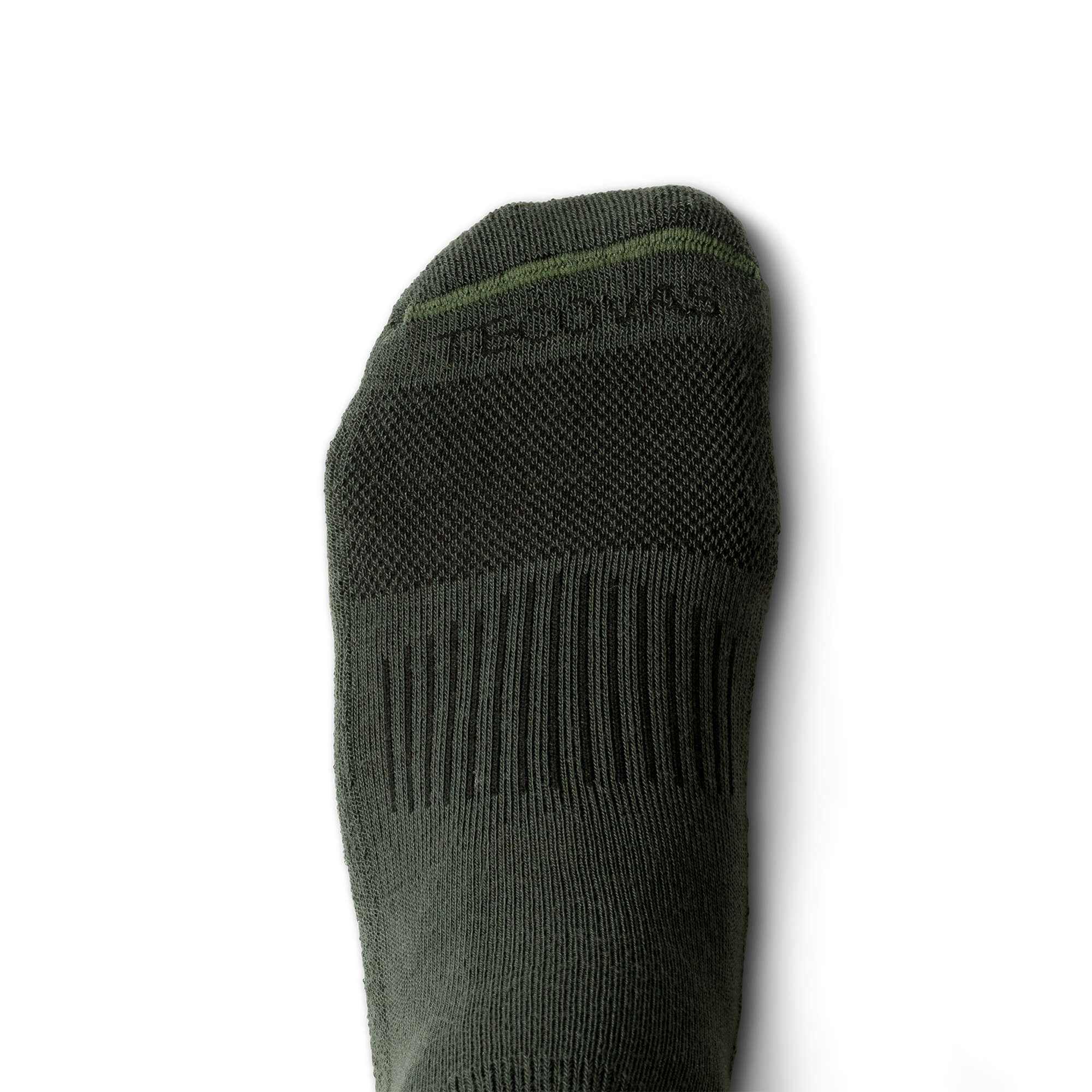 Our boot socks are purpose-built in the USA to be worn with both men’s and women’s boots. They feature an ultra-comfortable, moisture-wicking polyester blend that breathes in warm and cool weather, a long cut that stays up on the leg without sagging, and a half-cushion footbed with built-in arch support.