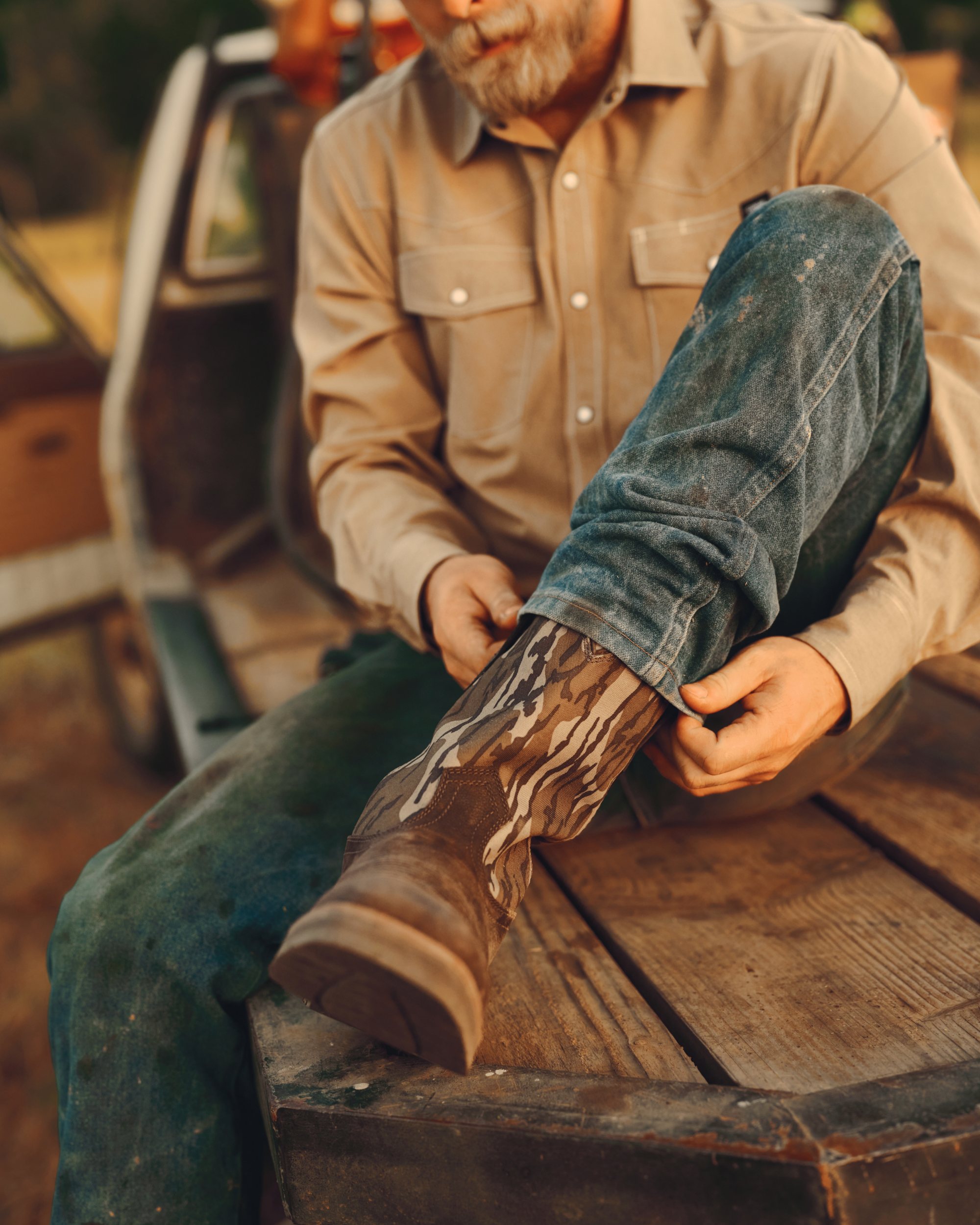 The Tecovas x Mossy Oak Rugged Square Toe brings the best of Tecovas’ Western grit and Mossy Oak’s outdoor legacy into one hardworking boot. Designed with a custom shaft in iconic Mossy Oak Bottomland print, it’s made for those who put in the miles—on the ranch, in the field, or wherever the day takes you. The broad square toe and oil- and slip-resistant outsole offer stability and all-day comfort in rough conditions, while the clean lines and durable construction keep things looking sharp long after sundown. Whether you're chasing the horizon or just chasing daylight, this collab boot is ready to ride.