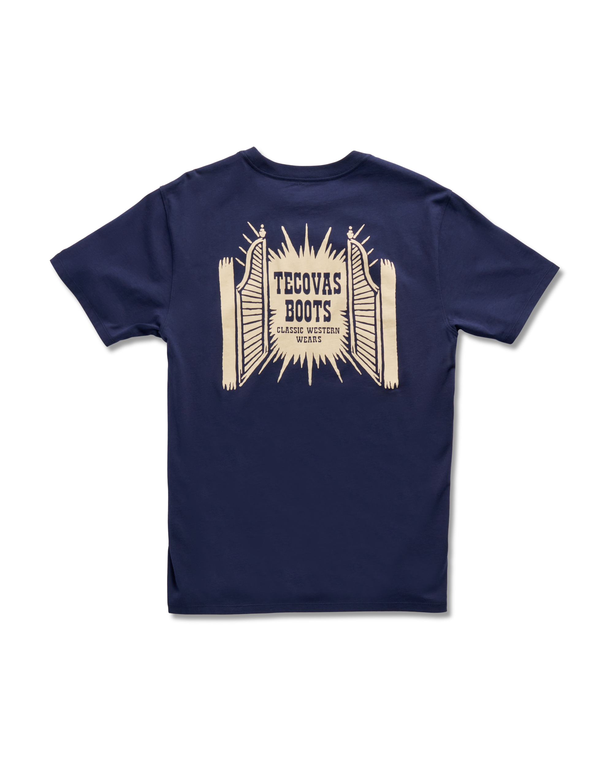 Timeless and ready to roll, this 100% pima cotton tee features artwork inspired by classic saloon doors—throw ‘em open and let the good times ride.