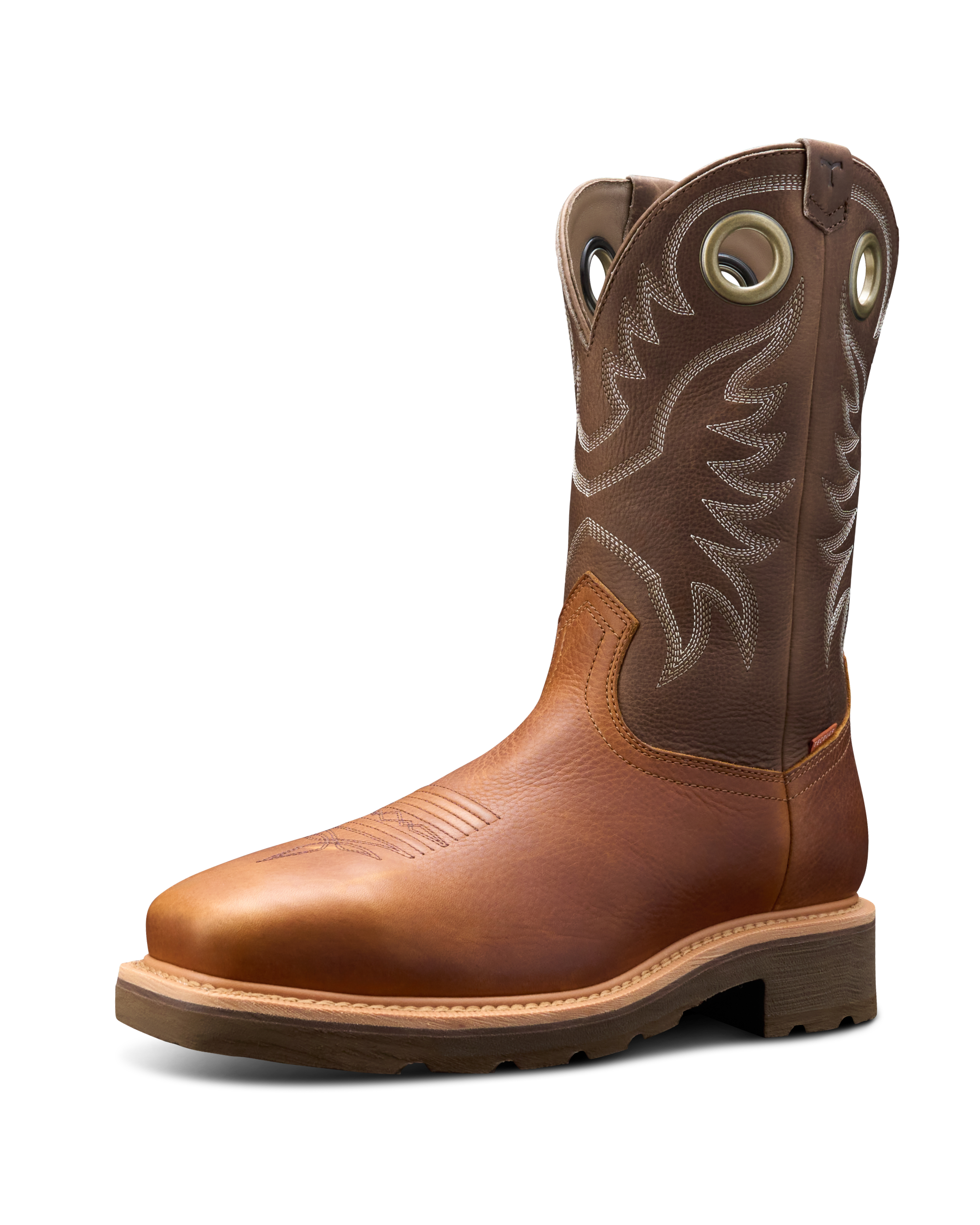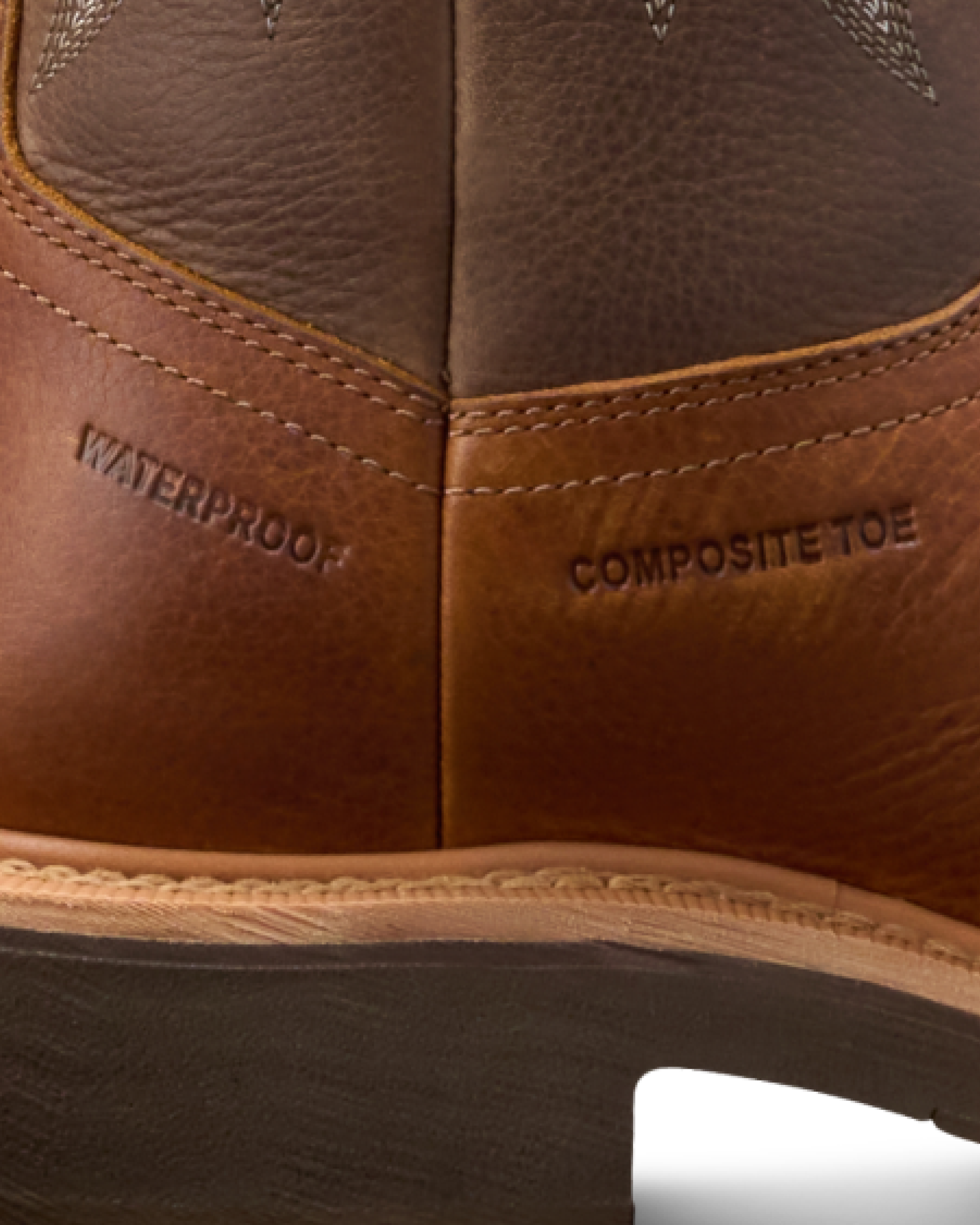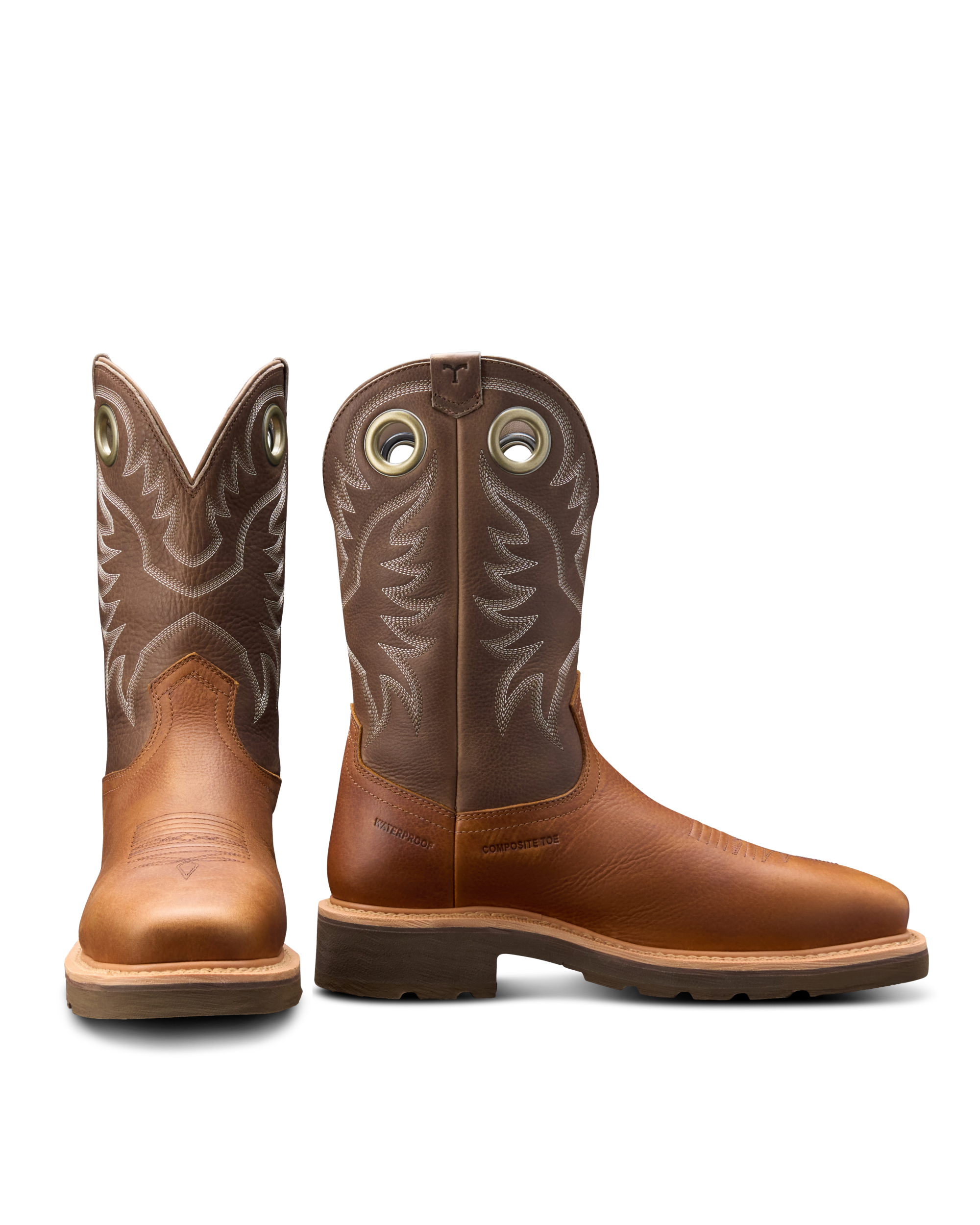 All the style of a cowboy boot with the toughness of a work boot. Whether you're a roughneck, work in commercial construction or just love long days and hard labor, this square toe is a pure Western workhorse. A dual-density cushioned outsole, our own energy-returning Total Energy Command (TEC) insole system, and a removable, cushioned footbed leave nothing on the table by way of comfort. Its deep-lugged MuckOFF Tread repels crud and debris and is oil and slip-resistant, and a breathable barrier and treated leathers will keep your feet dry. This work boot meets the ASTM standards for safety toe, slip-resistance, and electrical hazard protection.