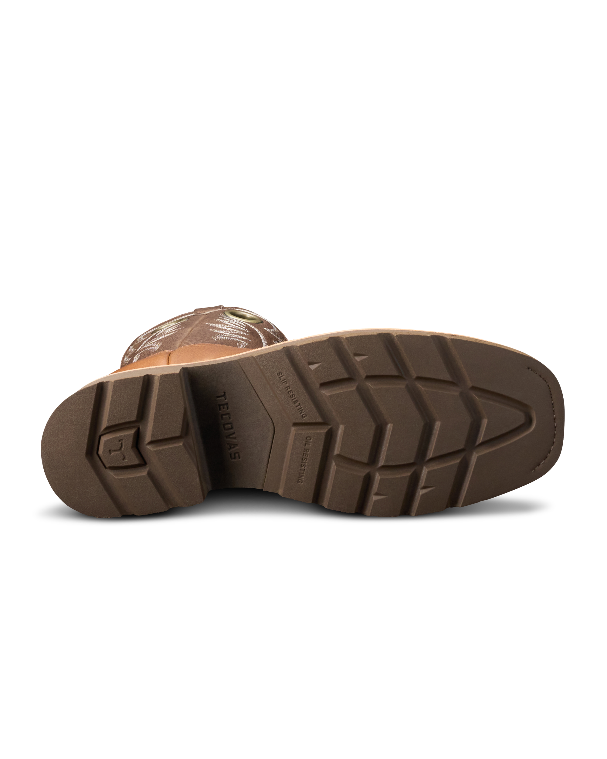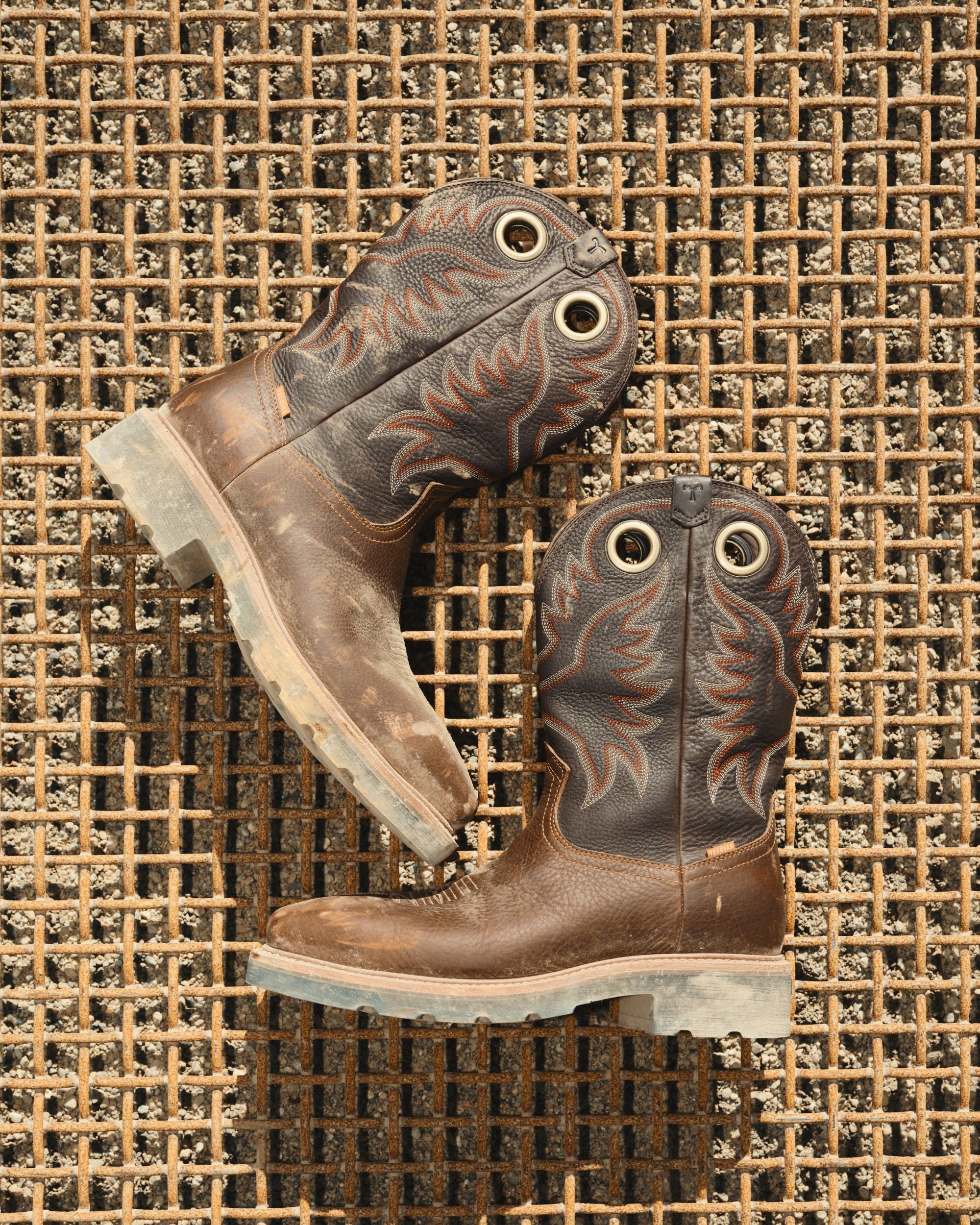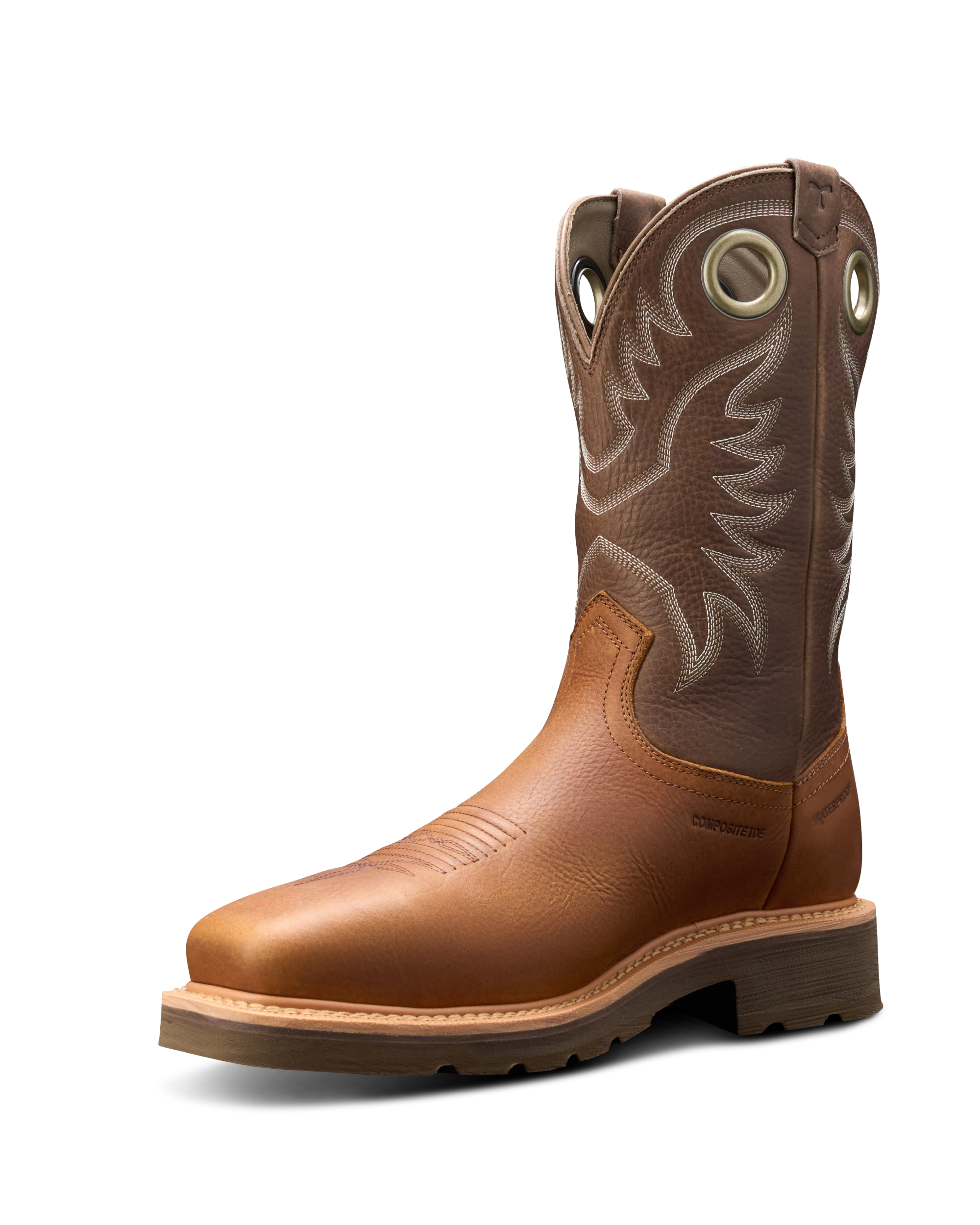 All the style of a cowboy boot with the toughness of a work boot. Whether you're a roughneck, work in commercial construction or just love long days and hard labor, this square toe is a pure Western workhorse. A dual-density cushioned outsole, our own energy-returning Total Energy Command (TEC) insole system, and a removable, cushioned footbed leave nothing on the table by way of comfort. Its deep-lugged MuckOFF Tread repels crud and debris and is oil and slip-resistant, and a breathable barrier and treated leathers will keep your feet dry. This work boot meets the ASTM standards for safety toe, slip-resistance, and electrical hazard protection.