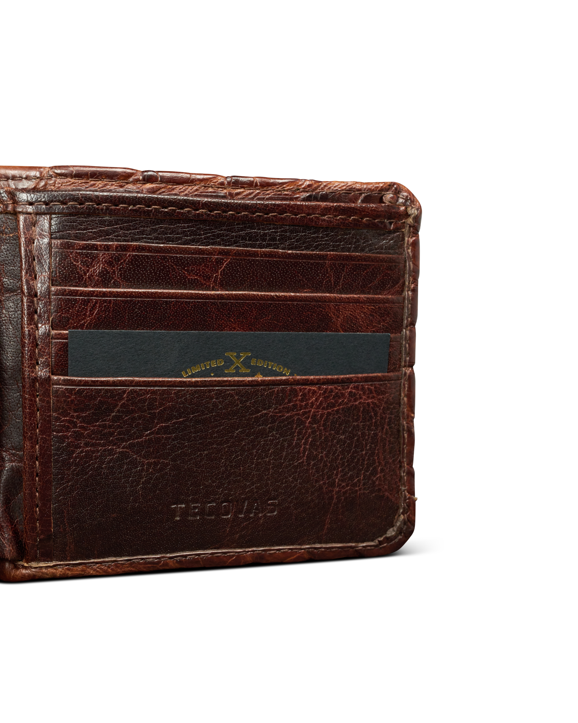 Handcrafted from American alligator leather, the Birthday Billfold transforms a timeless classic into a piece that celebrates ten years of Tecovas. Designed with a sleek profile that fits effortlessly in your pocket, it features eight card slots and a spacious cash slot for everyday function. Finished with hand-stitched details and a debossed Tecovas logo, it carries the same craftsmanship and character as the boots and belts it was made to complement. Built for durability, built to be used every day, and built to honor the occasion.