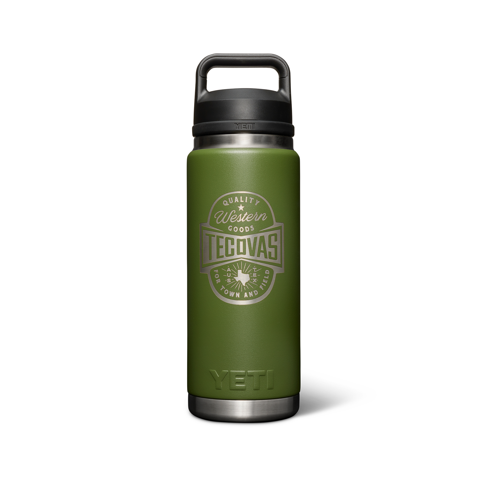 The For Town & Field 26 oz. Water Bottle from our friends at YETI makes sipping all the more satisfying. This limited edition showcases our original Tecovas Western Goods artwork. Functional features abound: 100% leak-proof chug cap for peace of mind, double-walled vacuum insulated for keeping drinks at the temperature you poured ‘em at, and dishwasher safe for easy cleaning.