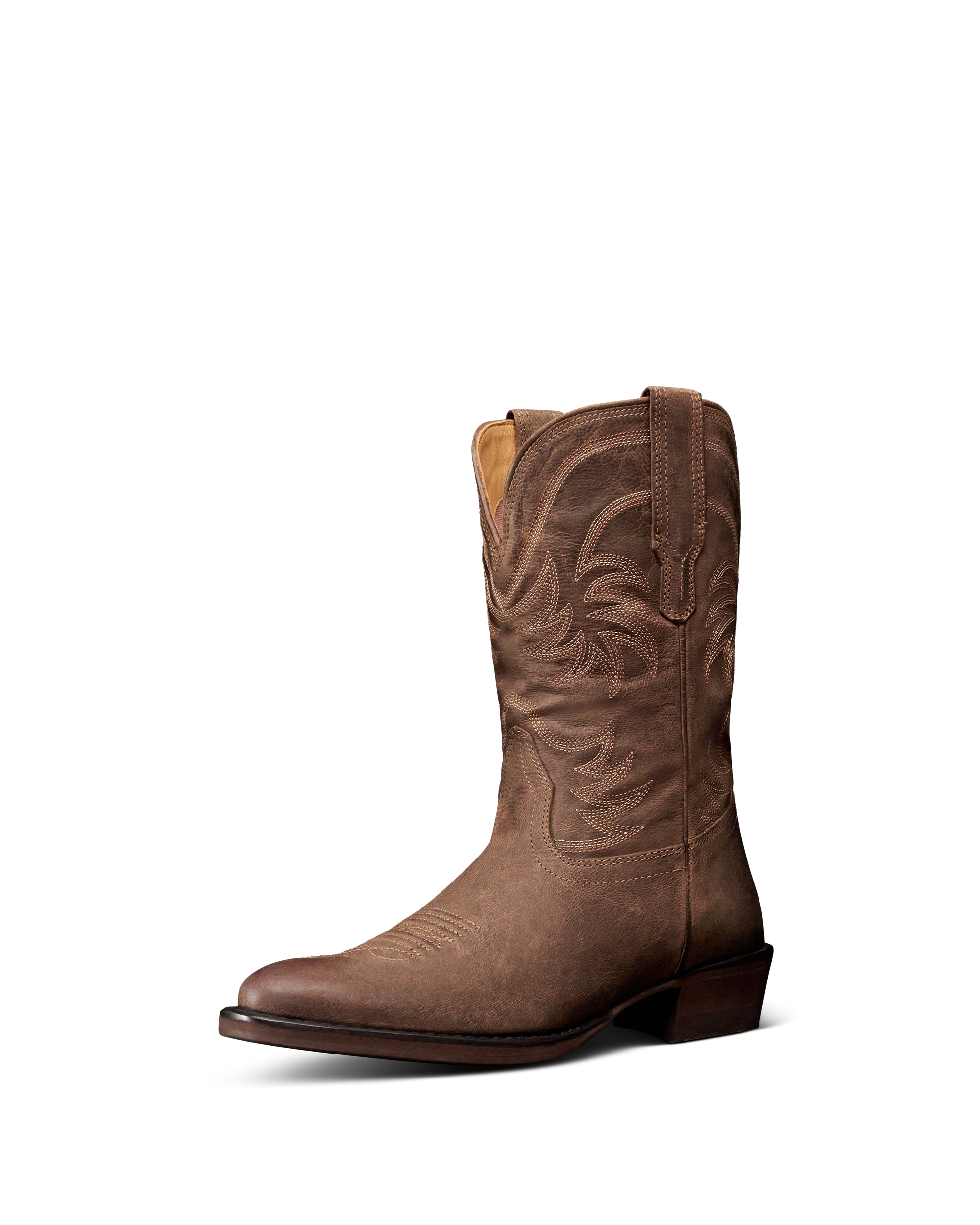 8.5" genuine leather shaft with leather collar, breathable mesh lining, and classic Western stitching