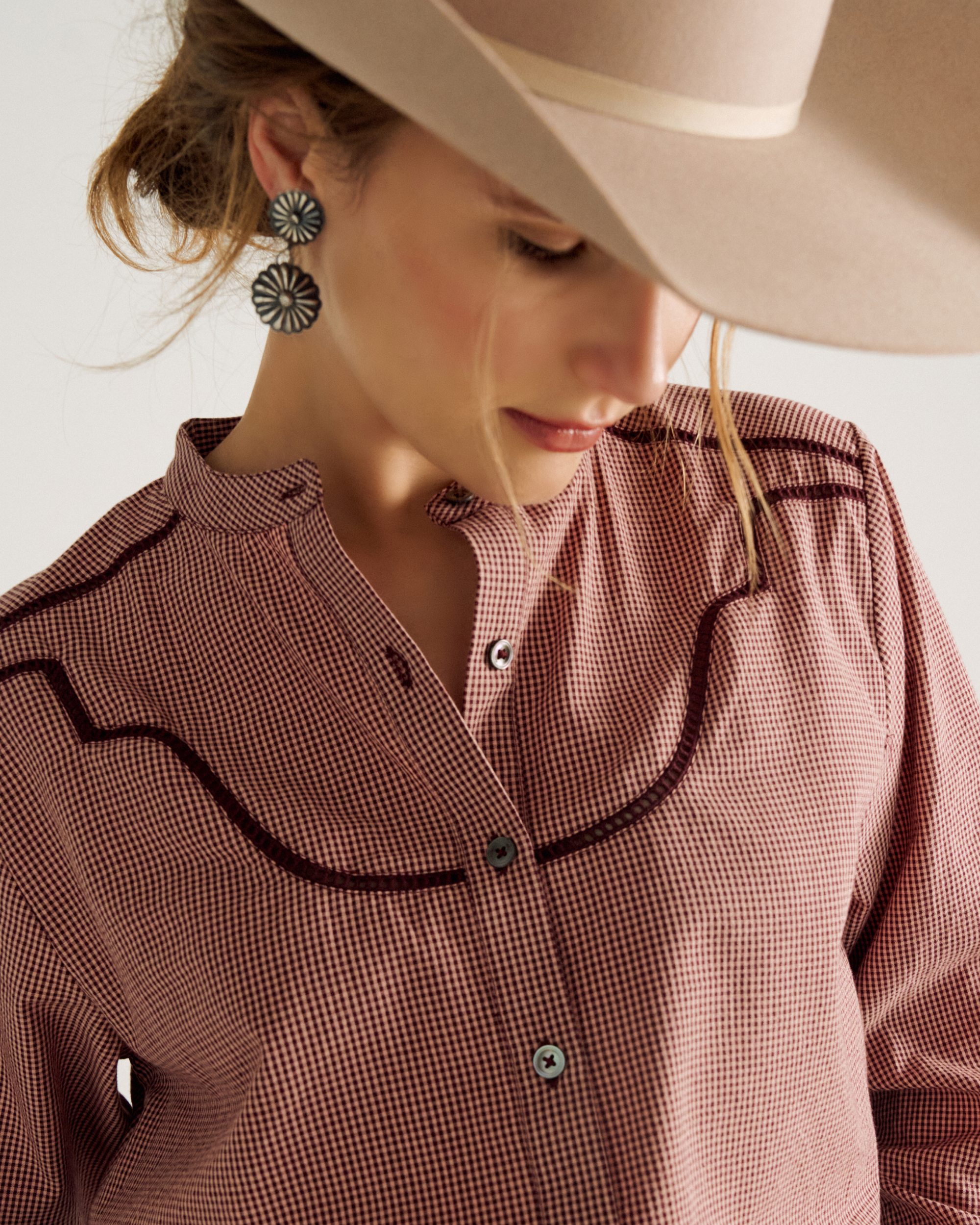Crafted from 100% cotton seersucker, this blouse brings texture and dimension with its signature puckered fabric. Featuring delicate Western ladder eyelet detailing and a soft, lived-in handfeel that only gets better with each wash, it’s designed for comfort and style. Side slits create a flattering silhouette and make it easy to wear untucked or front-tucked for versatility. This blouse is a versatile essential that moves with you, from work to weekend and beyond.