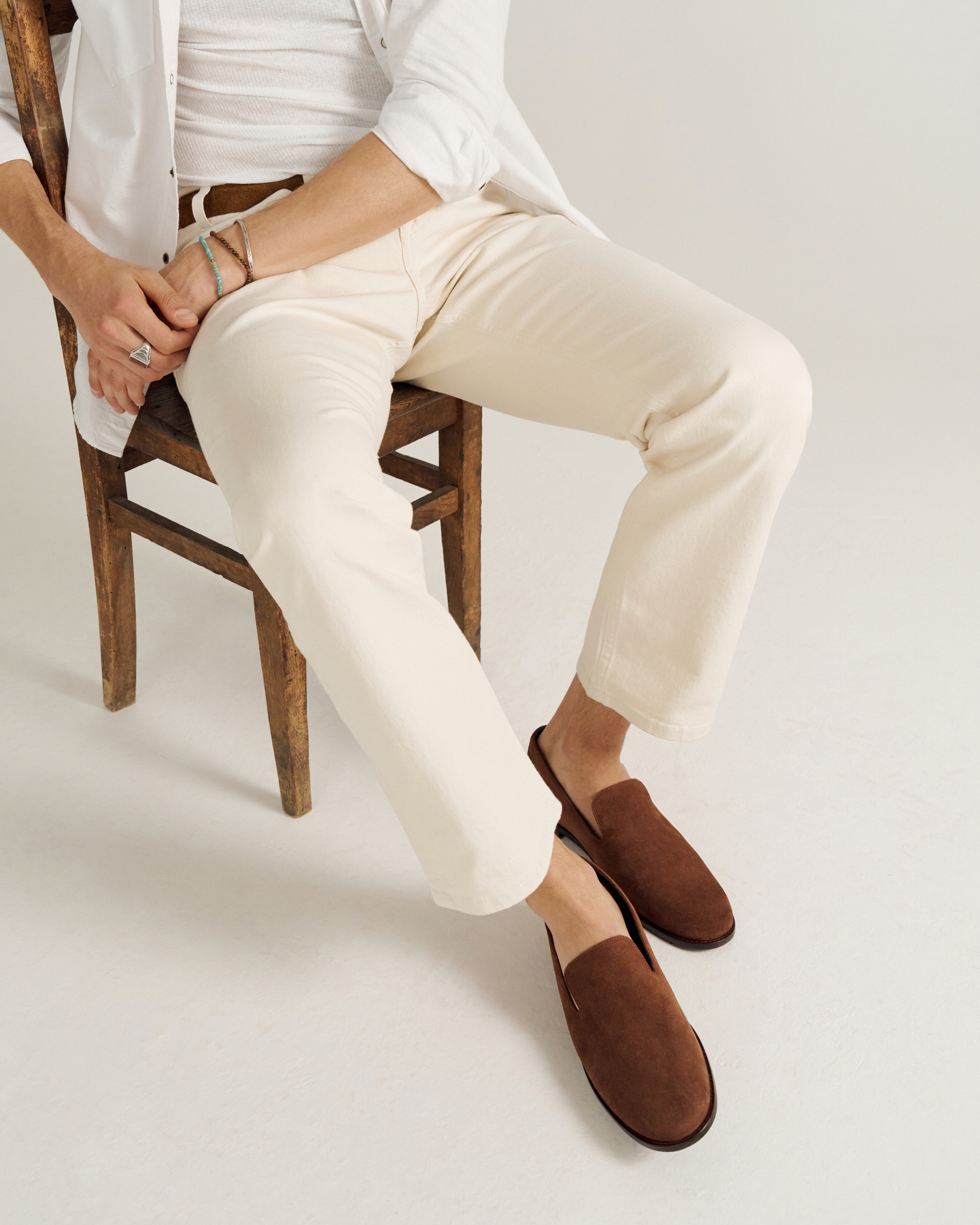 Our original men’s slip-on is handcrafted with a Blake stitch construction. It has a padded leather insole, a hybrid rubber and leather sole, and an interior suede heel grip.