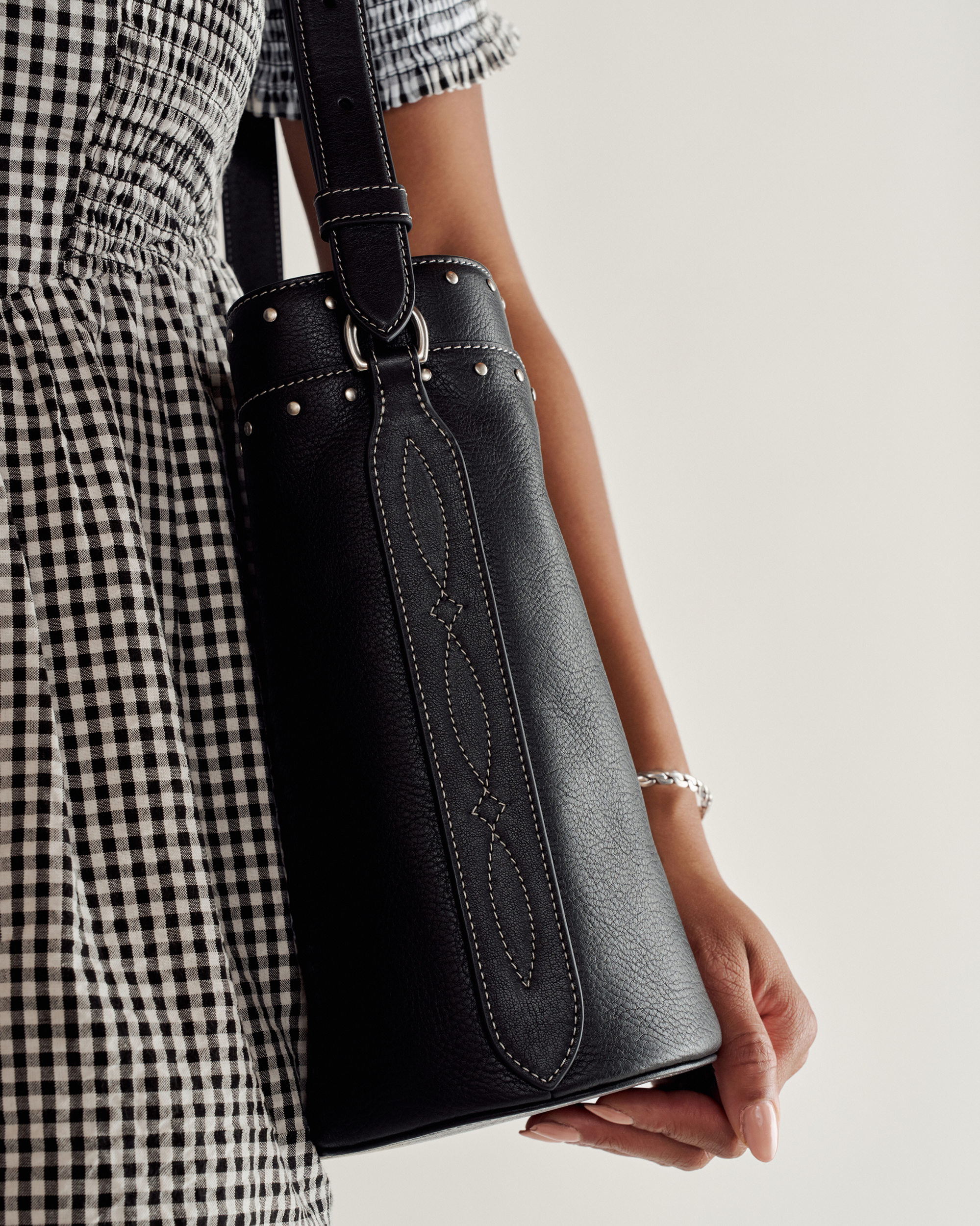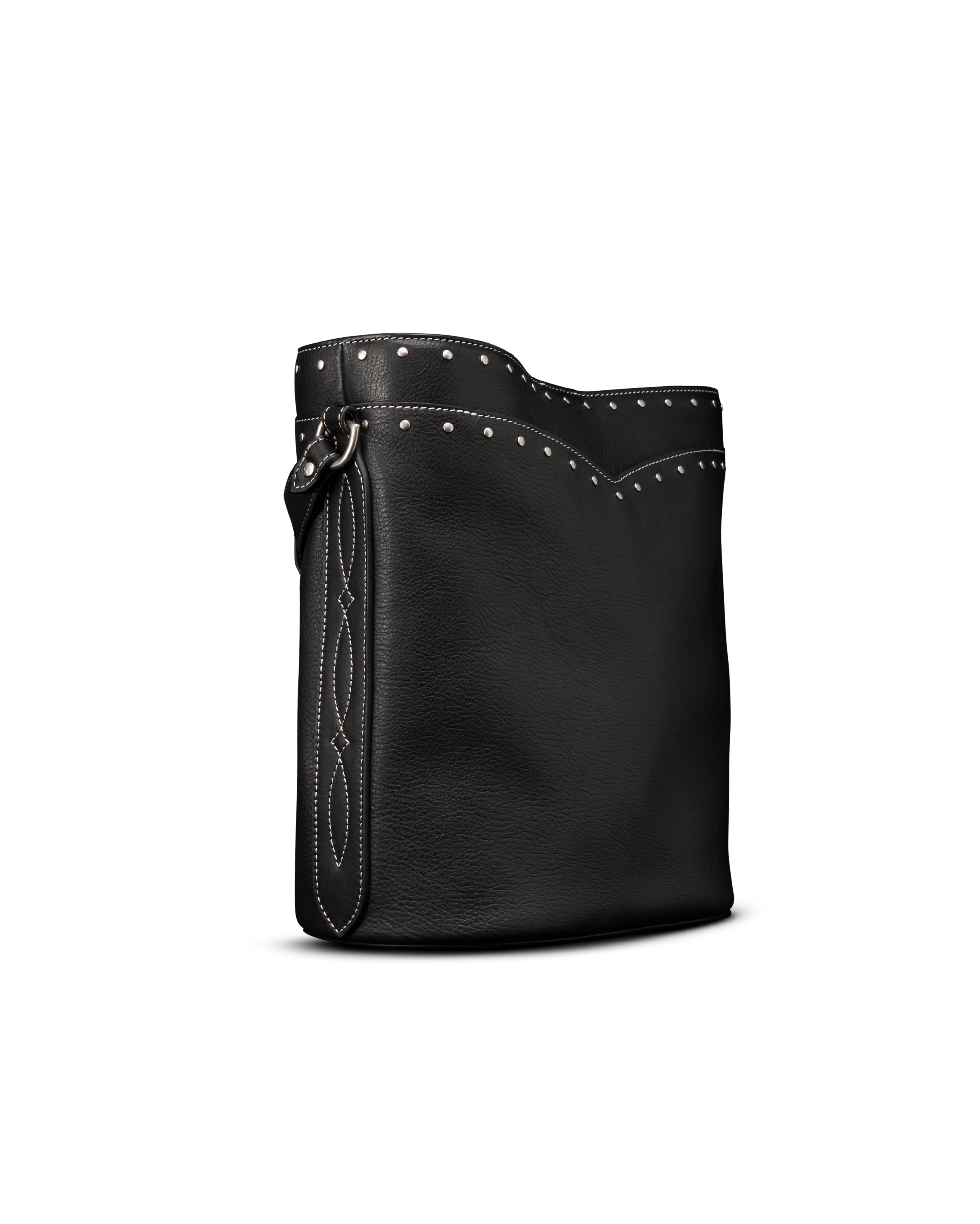 A seamless blend of Western lines and effortless cool, the Bucket Bag features signature stitching, bold rivets, and a refined mix of leather or suede for a look that’s both timeless and fresh. Spacious, structured, and built to last, it’s made to move with you.