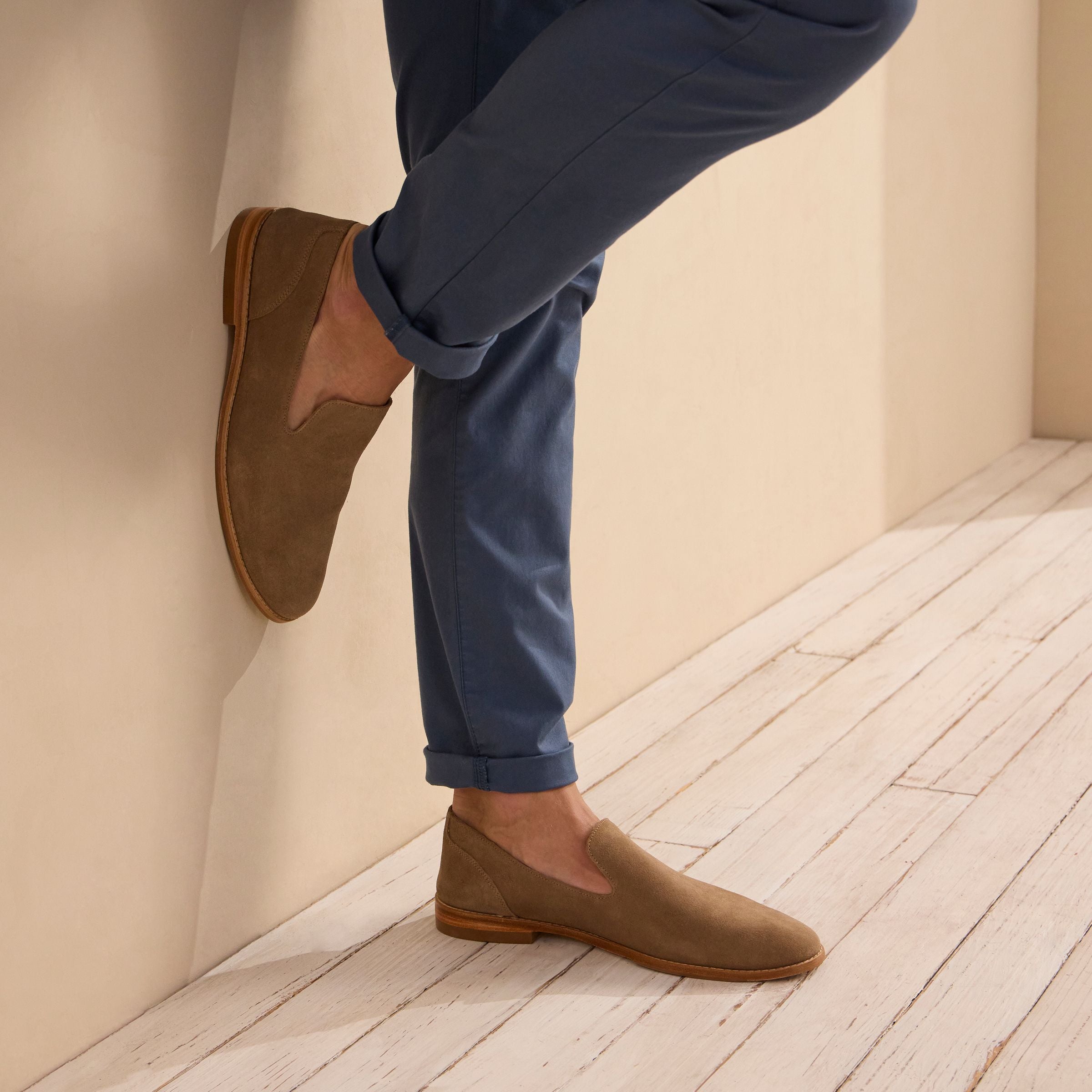 Our original men’s slip-on is handcrafted with a Blake stitch construction. It has a padded leather insole, a hybrid rubber and leather sole, and an interior suede heel grip.