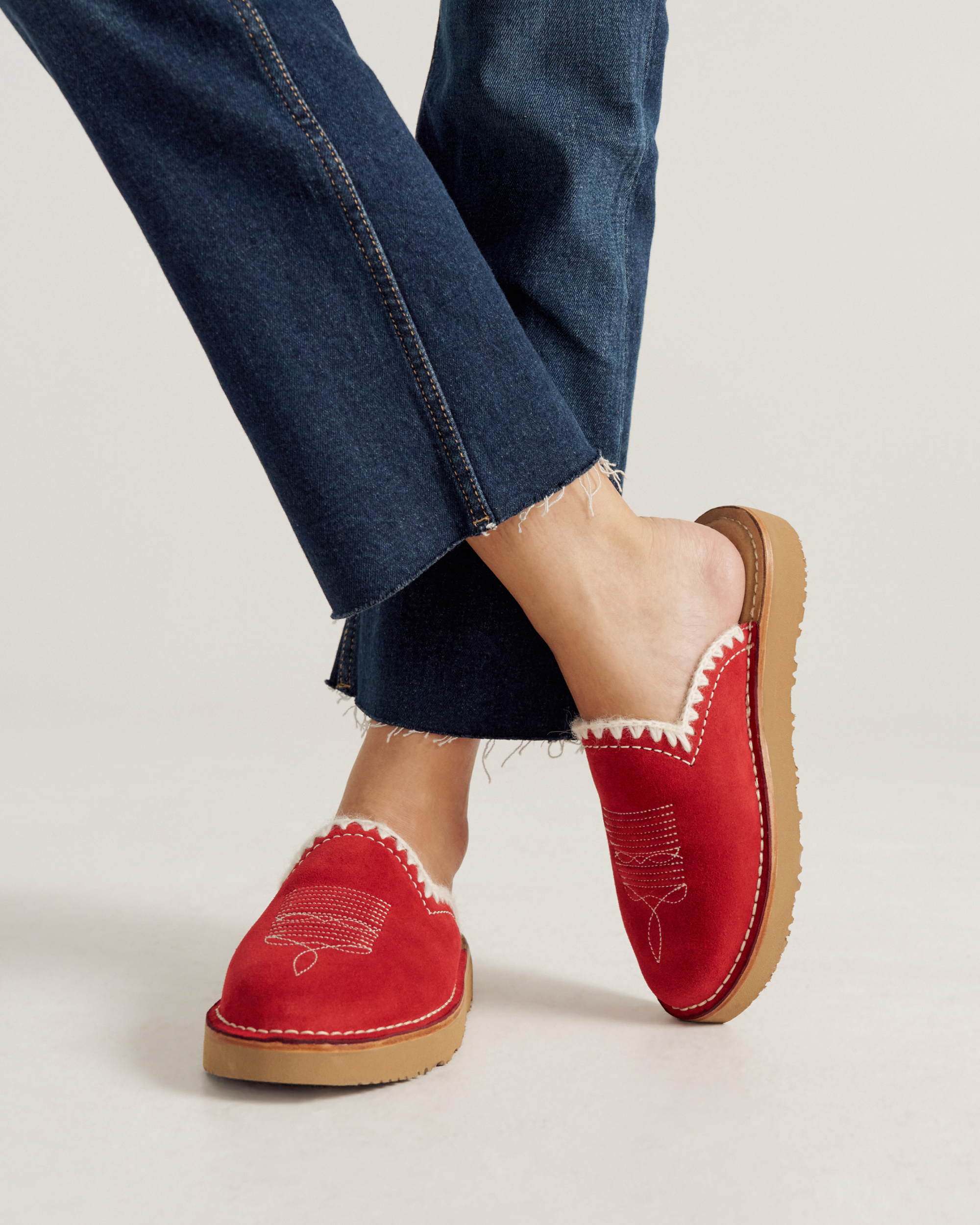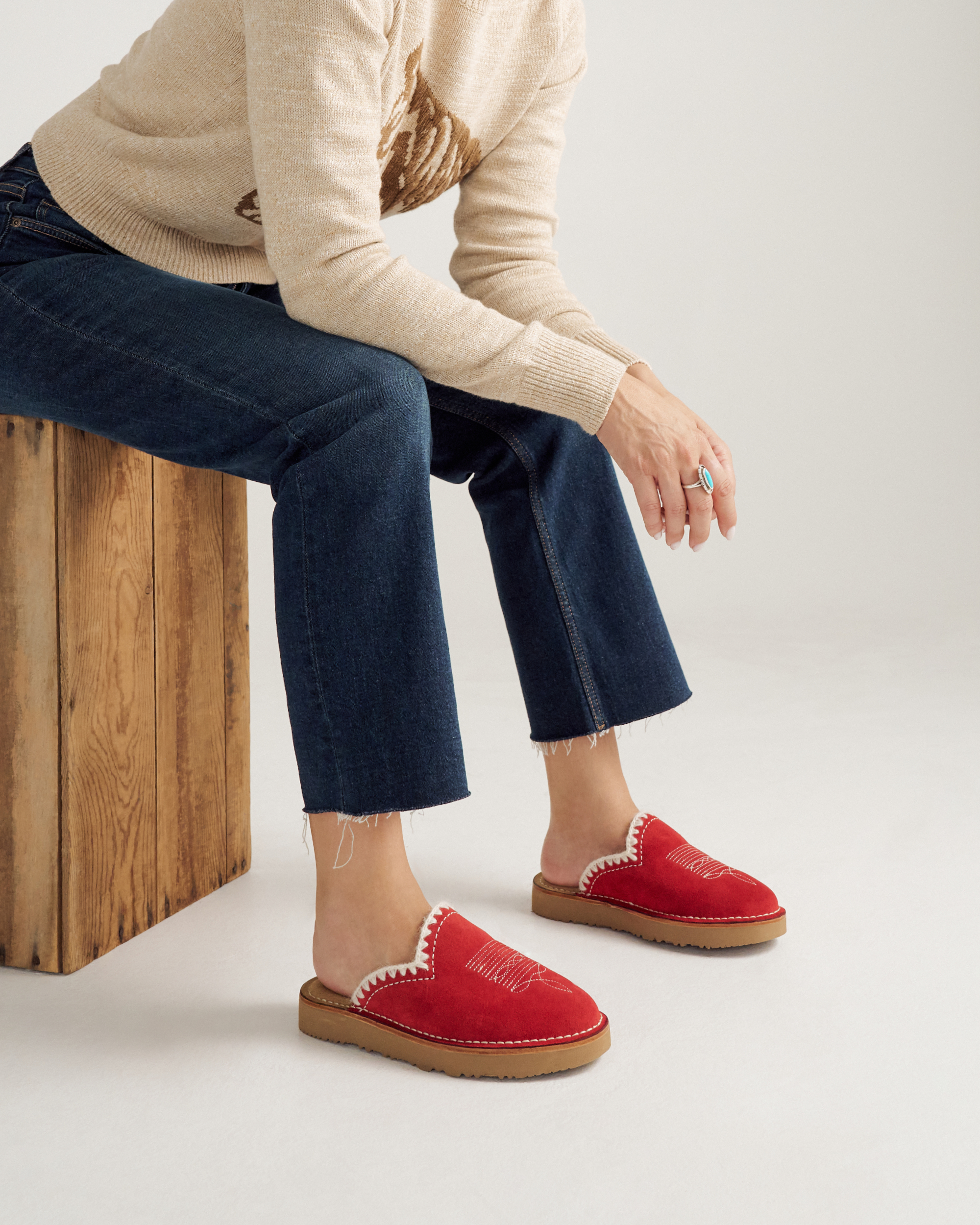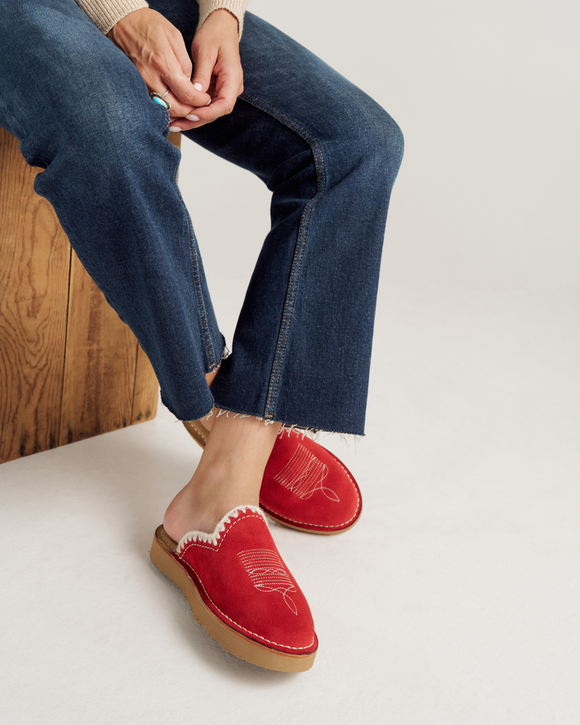 The Olivia blends cozy, everyday wear with thoughtful craftsmanship. A fully hand-crocheted topline meets our new plant-based EVA outsole — more durable, abrasion-resistant, and made with 35% sugarcane. Available in elevated suedes and a unique hair-on-hide, each pair is one-of-a-kind. Perfect for gifting or lounging in style, the Olivia is a slipper that feels as special as it looks