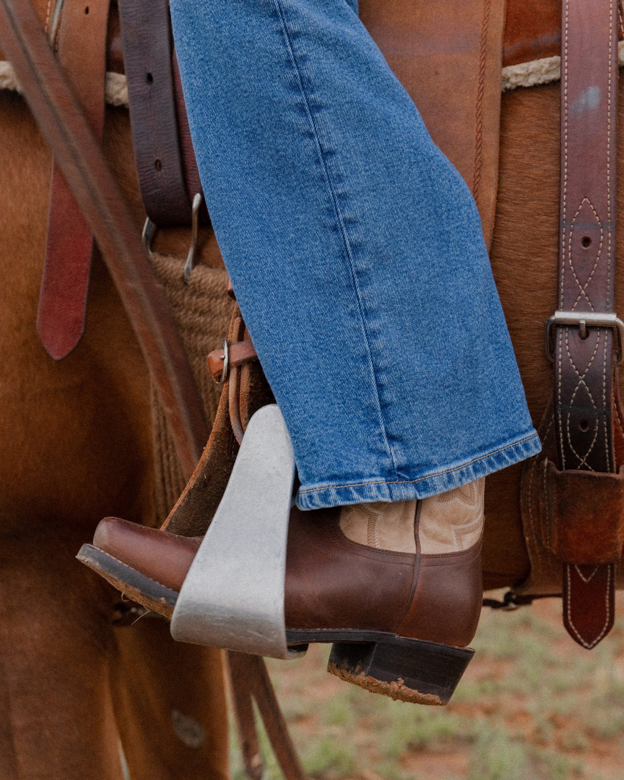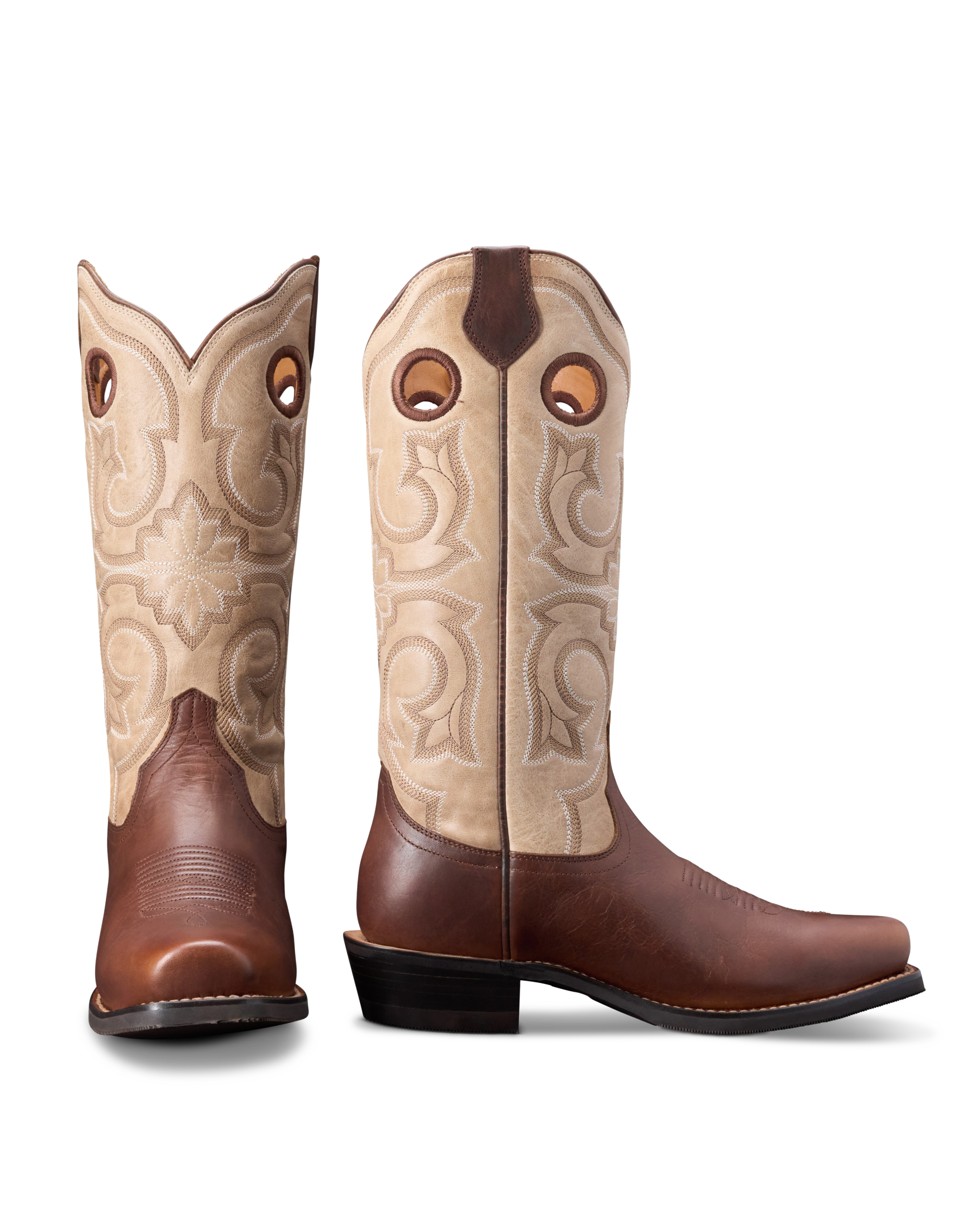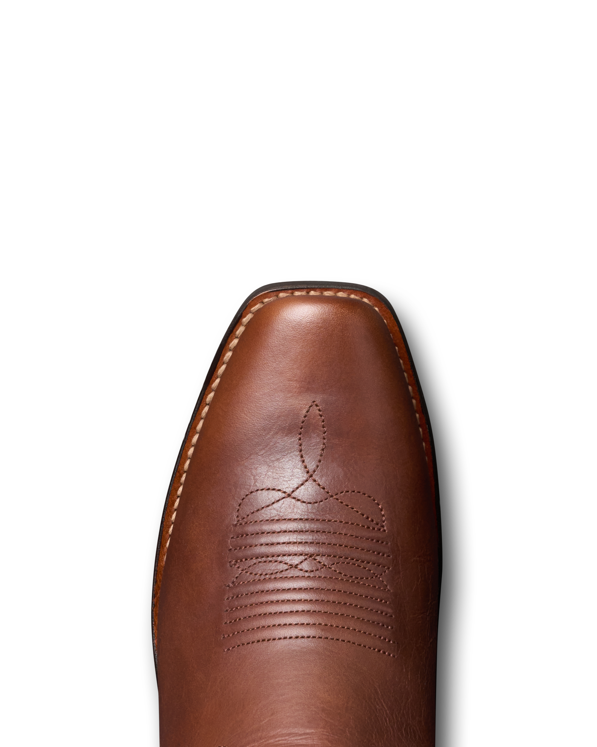 Ruggedly built and elegantly styled, The Marion is a pure riding boot built for comfort to be worn in the saddle. A cowgirl cutter toe leads the way and a 1 ½” stacked leather heel with spur ledge and a slim, Vibram rubber sole provide a stable platform with both grip and grit. It even has a removable, cushioned footbed for those longer days out on the ranch. Its elongated 13” shaft features a beautiful new stitched design and pull holes offer sturdy handles for daily wear. Here in two durable, water-resistant hides.
