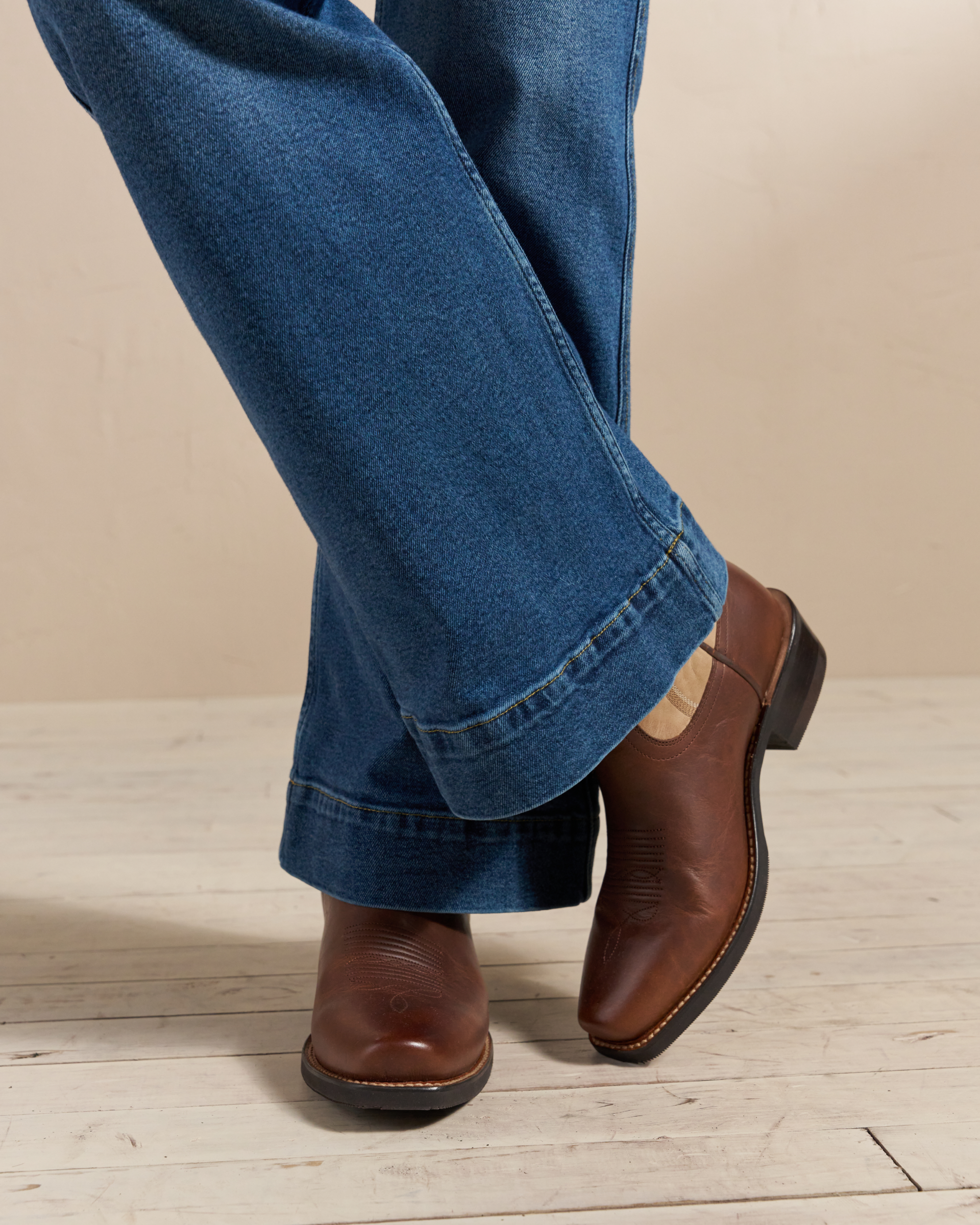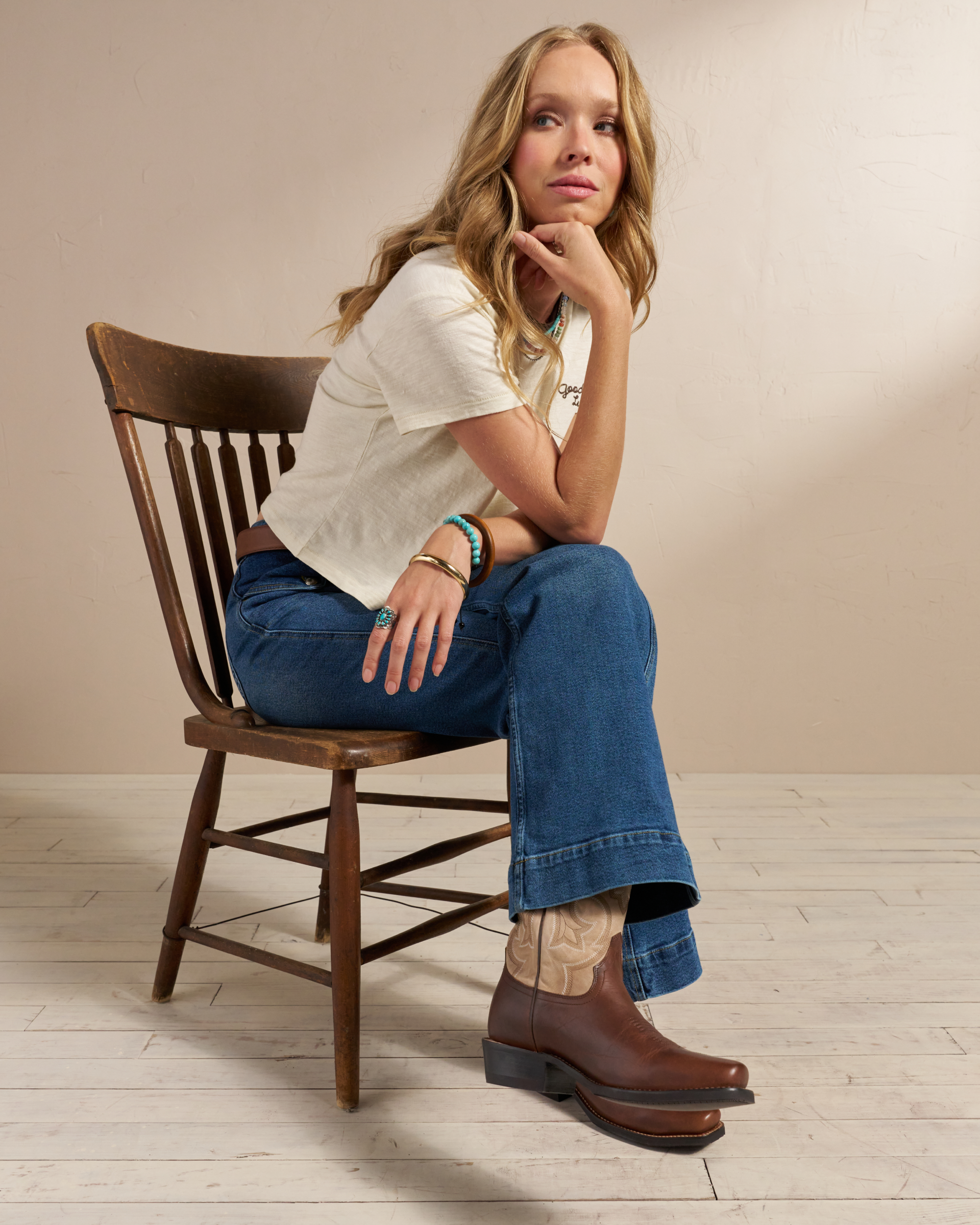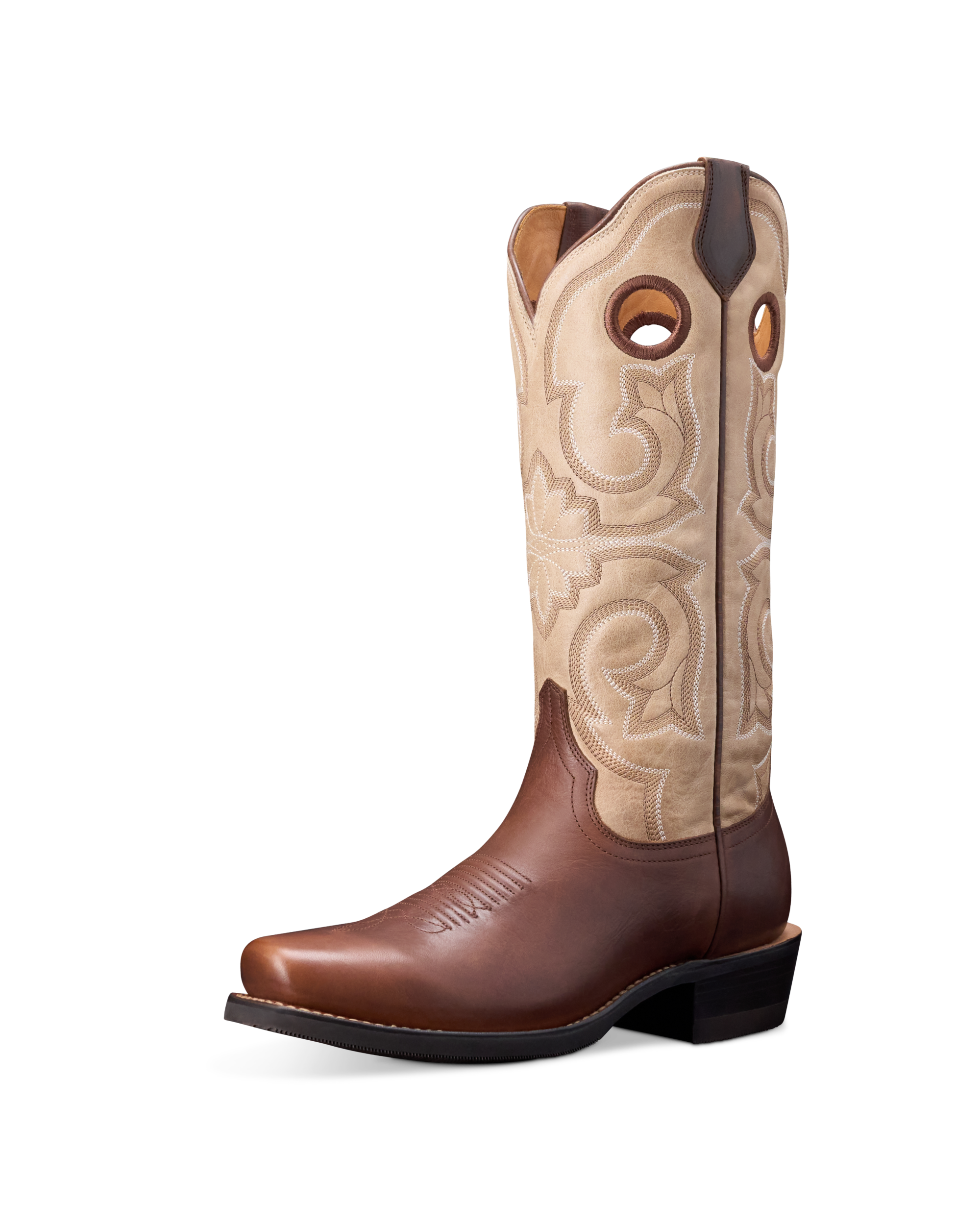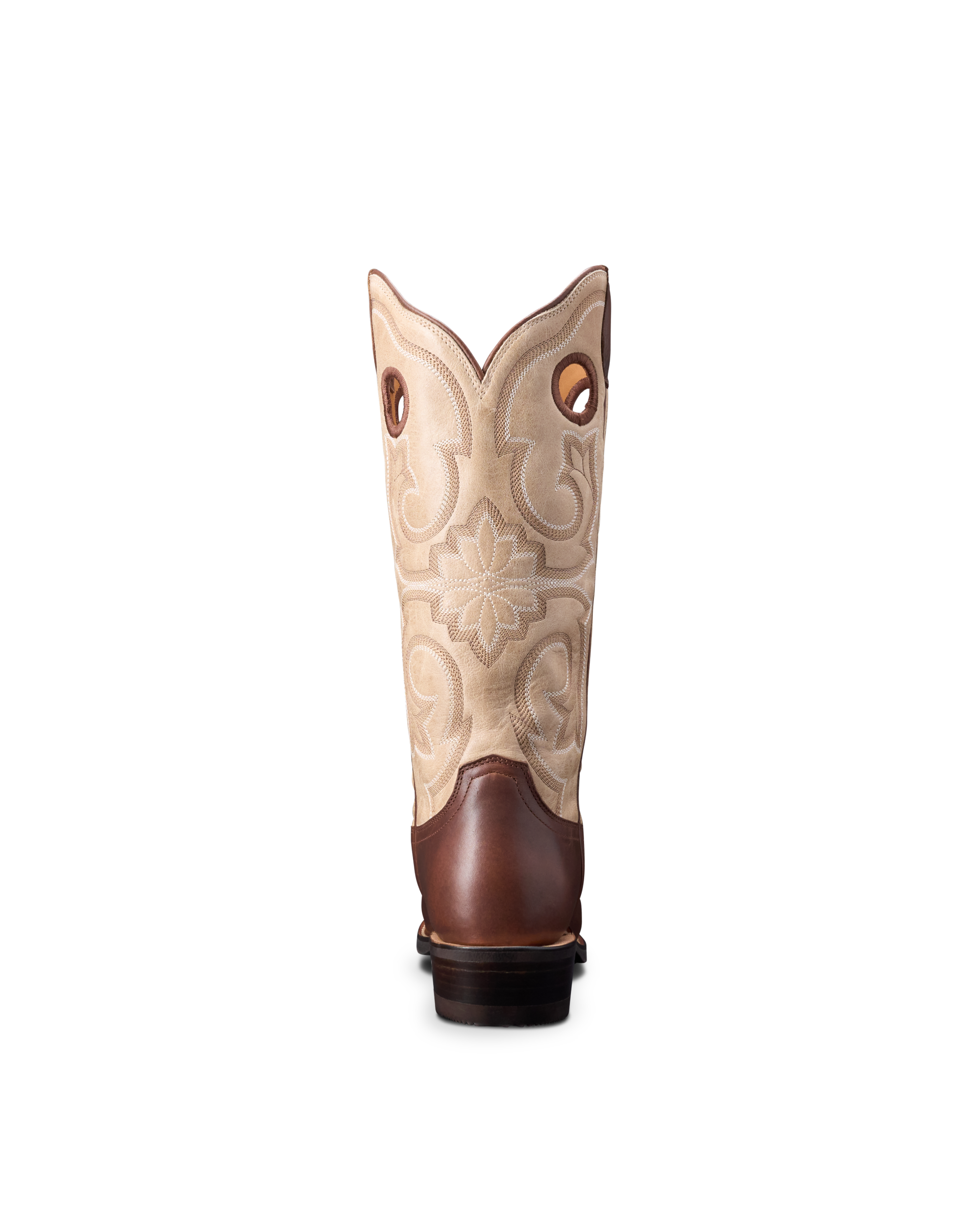 Ruggedly built and elegantly styled, The Marion is a pure riding boot built for comfort to be worn in the saddle. A cowgirl cutter toe leads the way and a 1 ½” stacked leather heel with spur ledge and a slim, Vibram rubber sole provide a stable platform with both grip and grit. It even has a removable, cushioned footbed for those longer days out on the ranch. Its elongated 13” shaft features a beautiful new stitched design and pull holes offer sturdy handles for daily wear. Here in two durable, water-resistant hides.