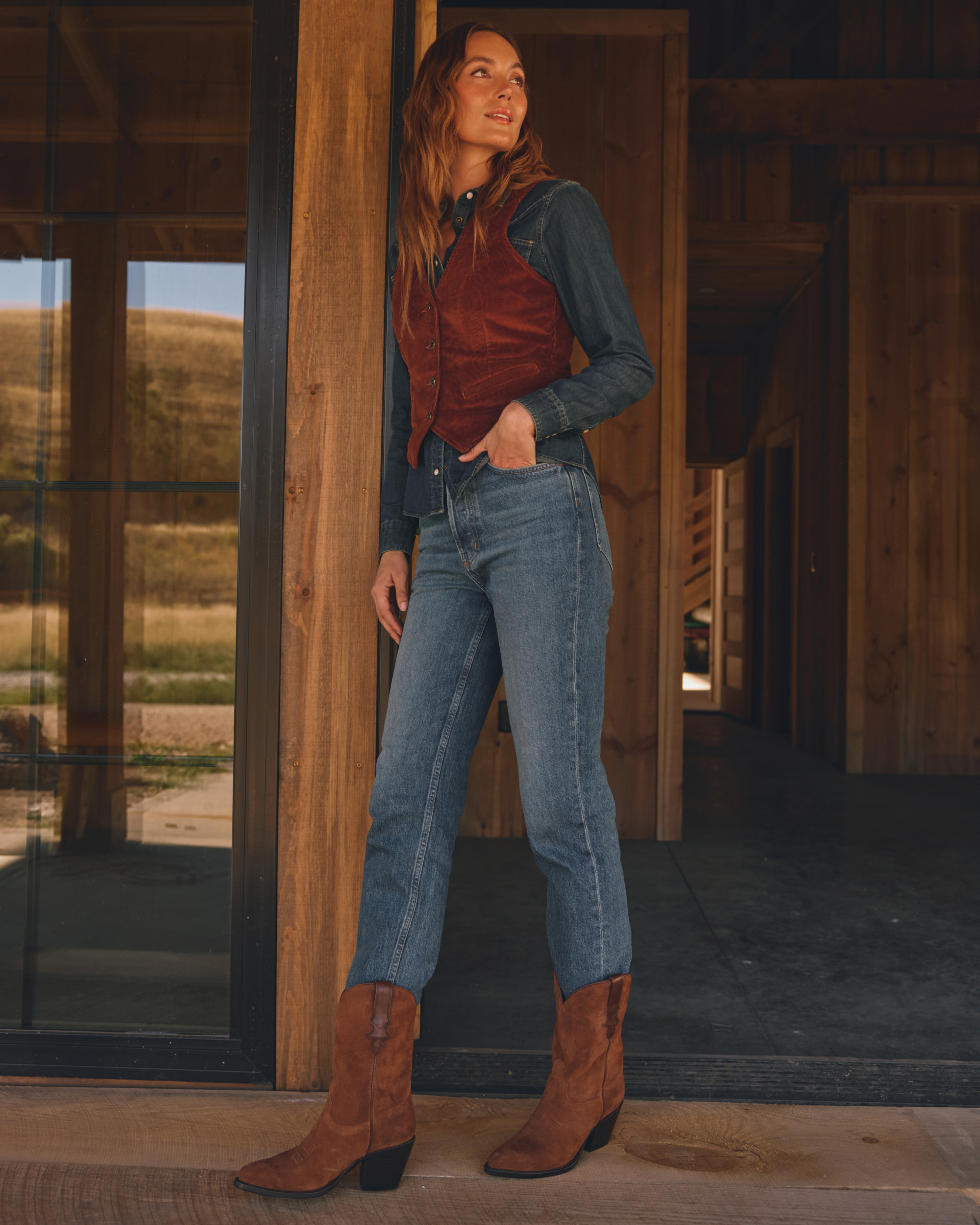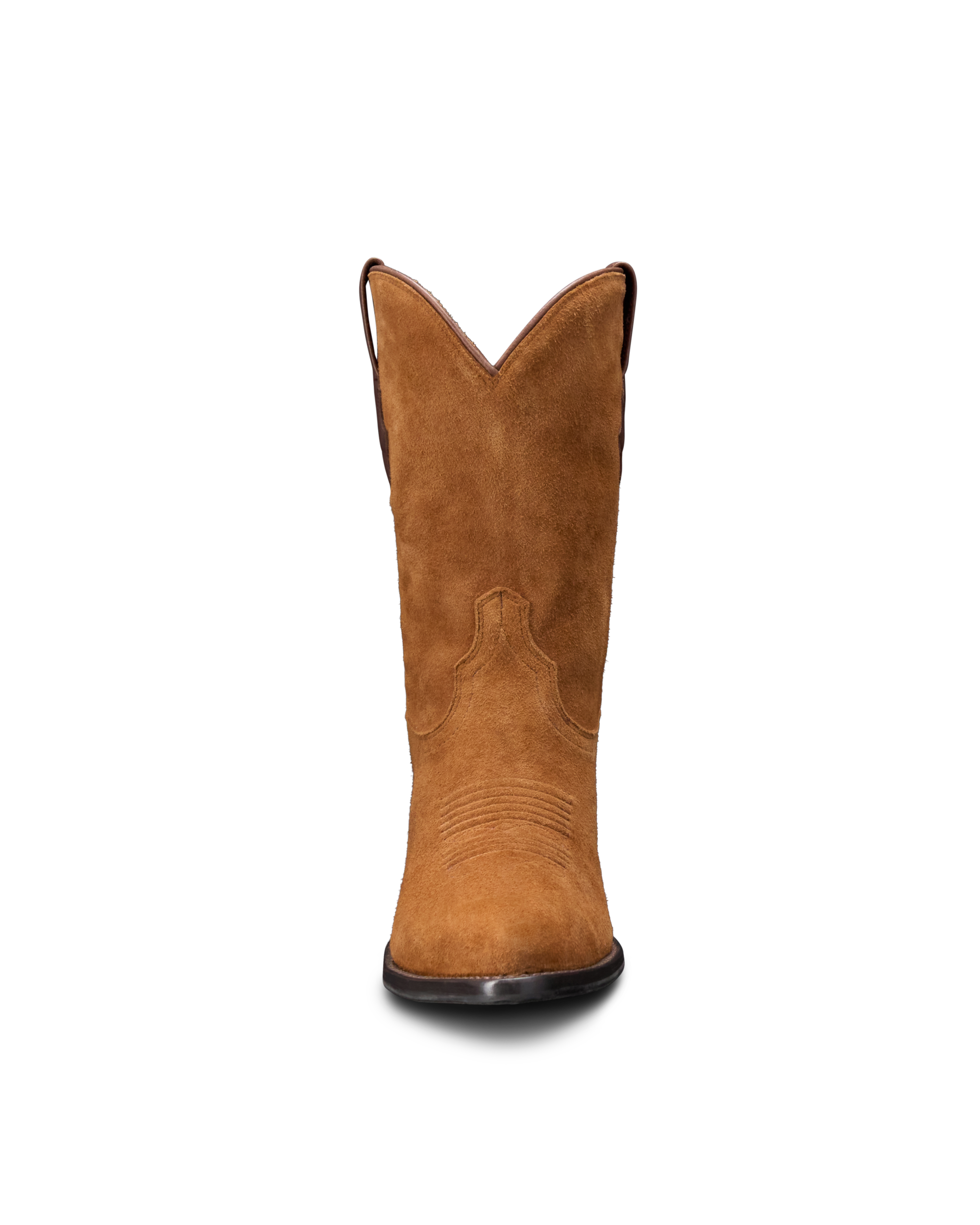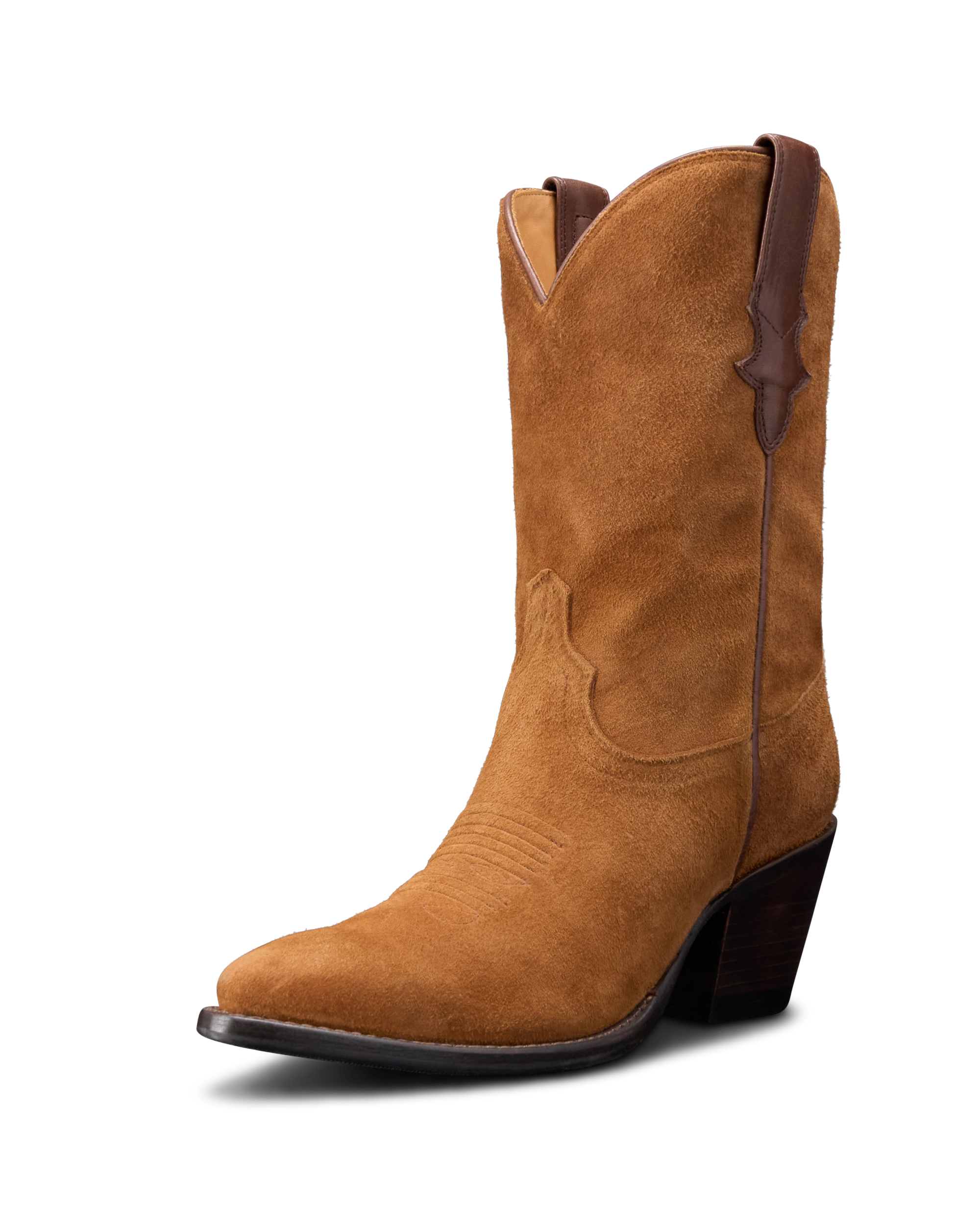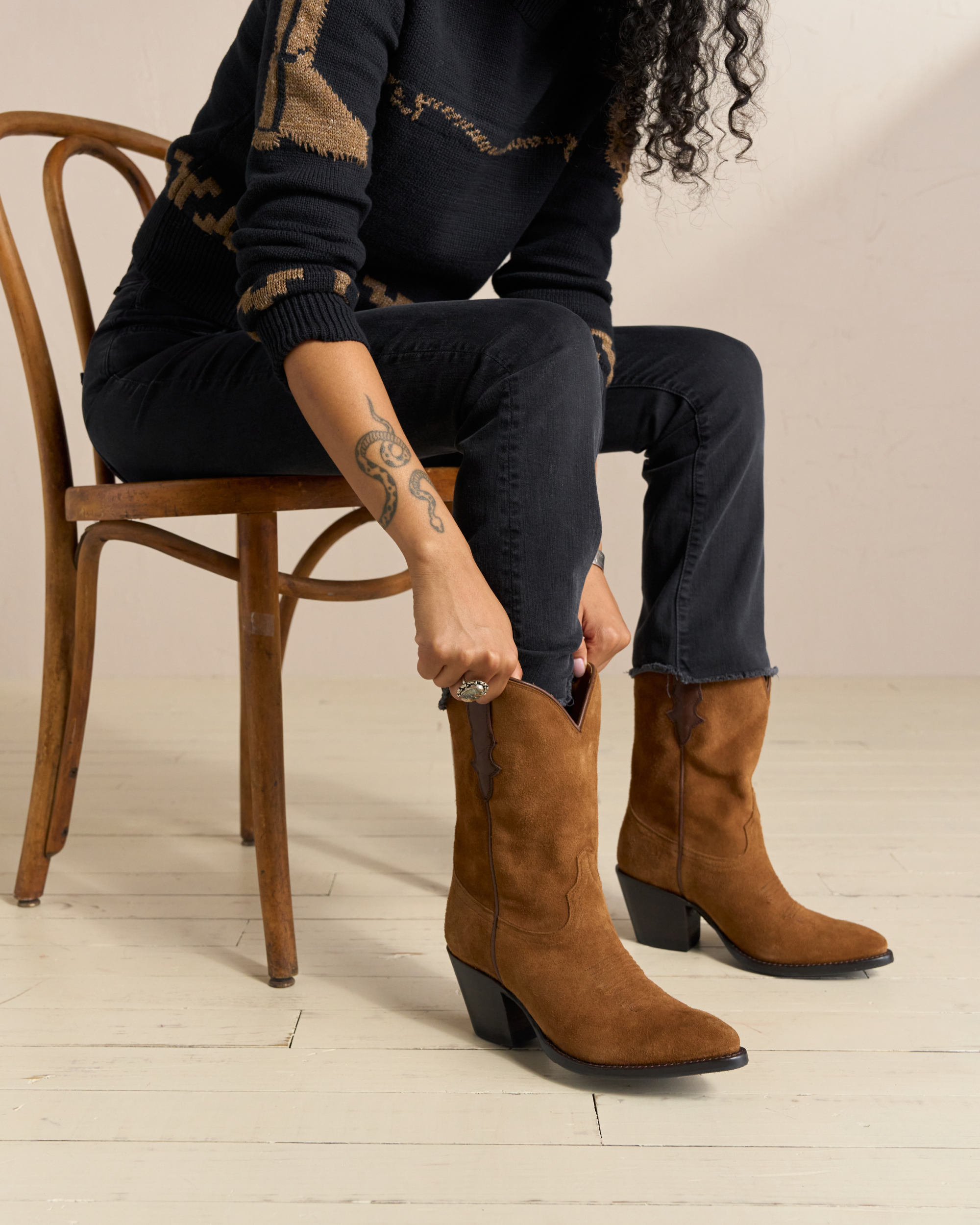 With a taller 3” heel and 10” shaft, The Cassie has the promising dimensions to become your favorite going-out pair. Made with ultra-soft, water-resistant deerskin roughout or patent leather with a classic, dressed-up sheen from top to toe, its clean silhouette is a versatile base for styling an elegant look. A slightly tapered J toe and hybrid rubber/leather sole add to its fashionable yet practical appeal.