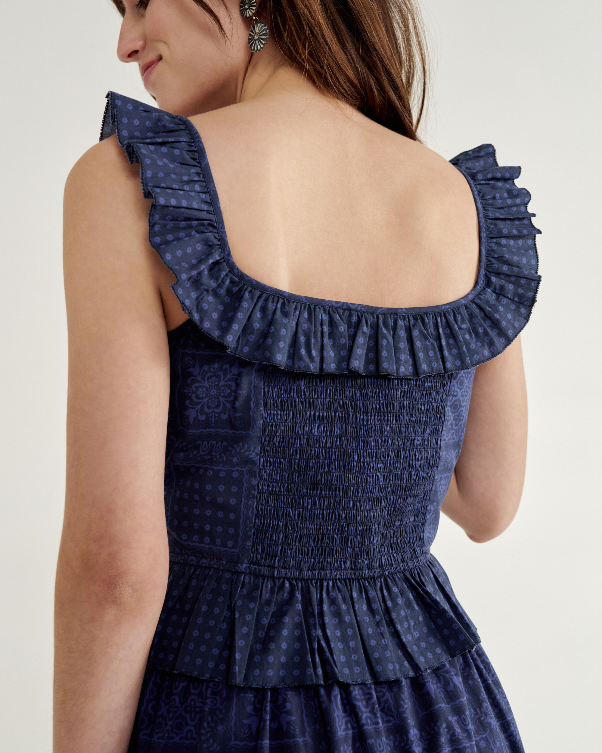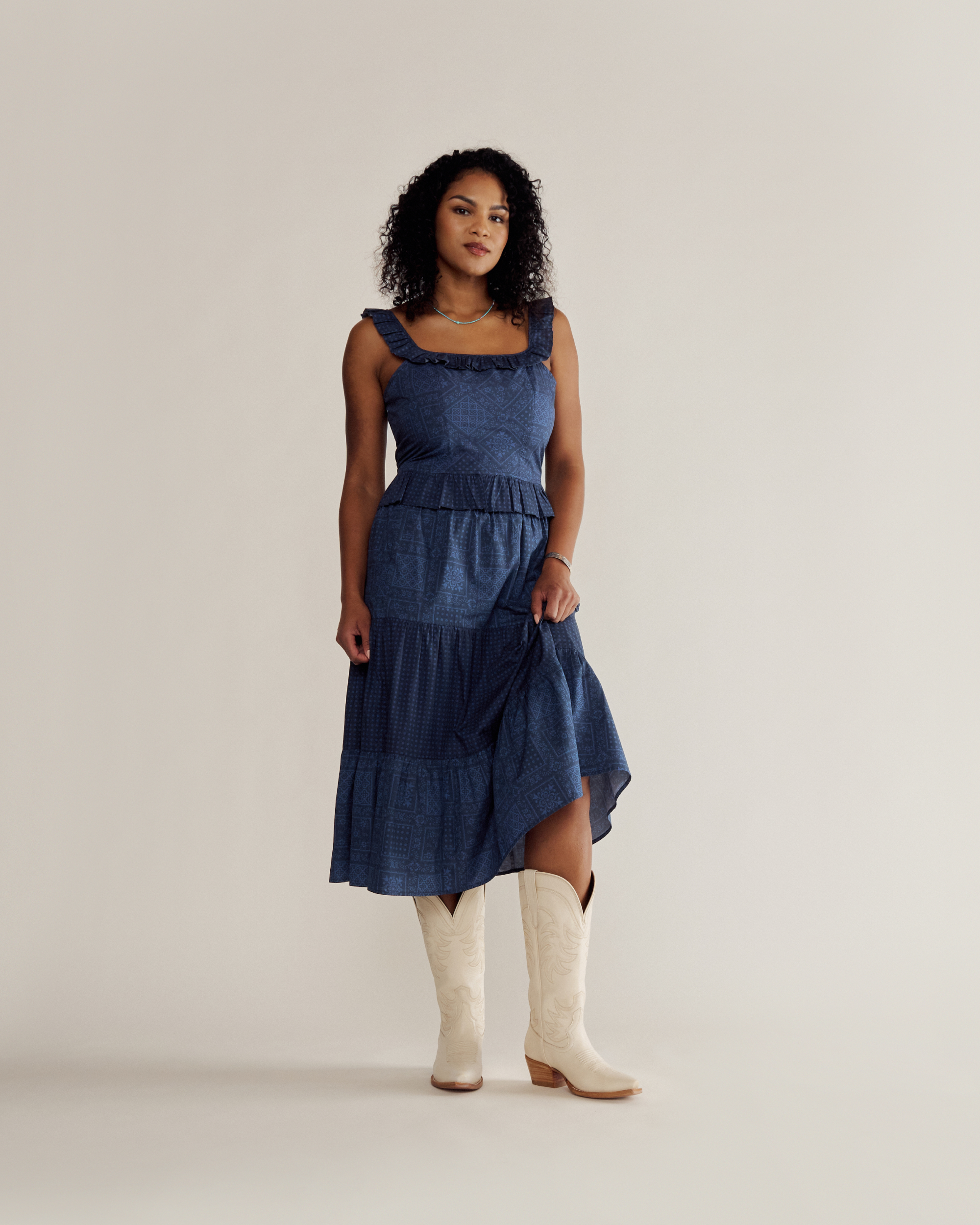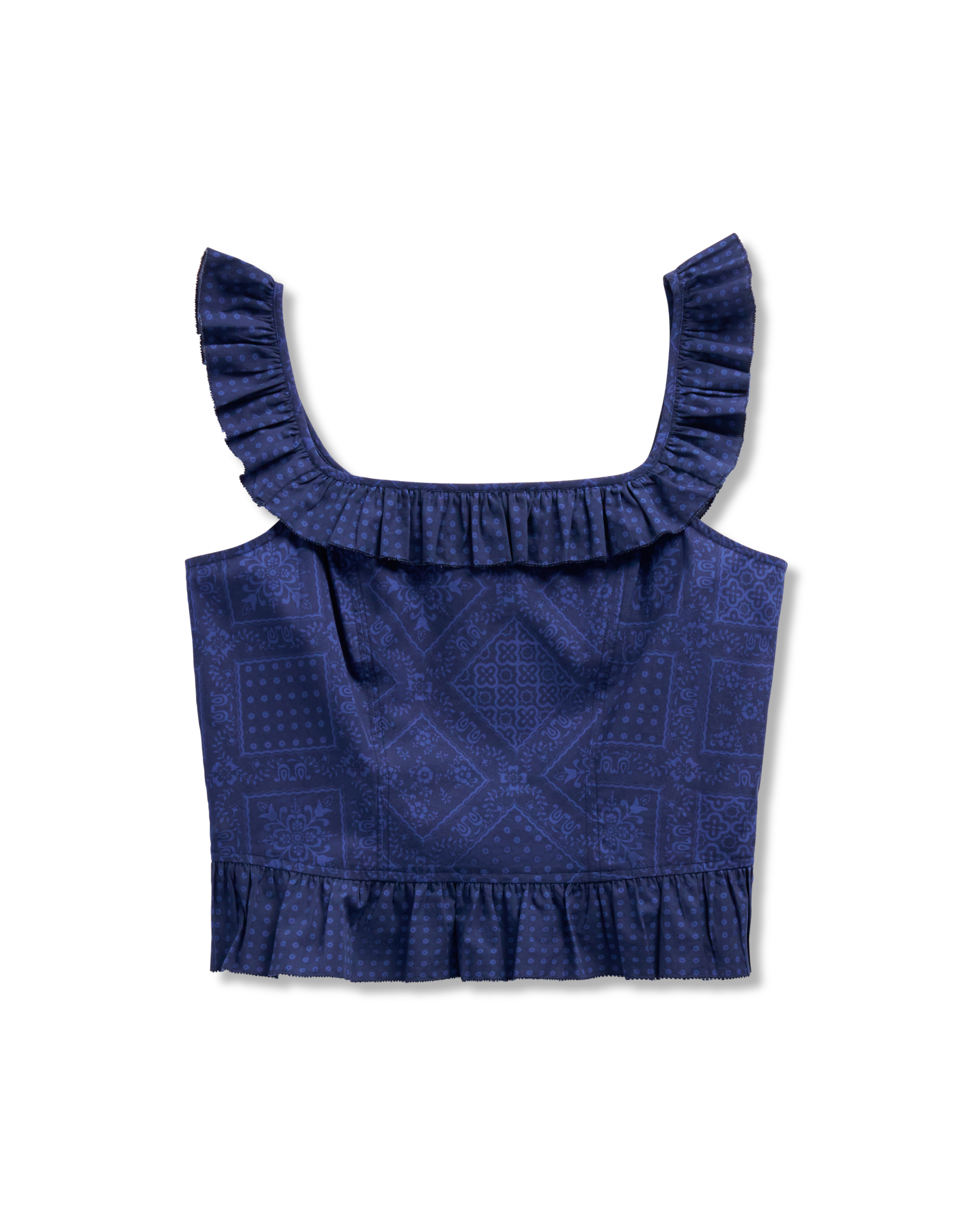The Women’s Bandana Peplum Tank is designed for effortless style and comfort in spring and summer. Featuring ruffled straps with a delicate picot edge and custom print, this tank embraces thoughtful details. Smocking with corset details at the front provides added adjustability and increased mobility, while a bra-friendly strap with tab ensures a secure and flattering fit.
