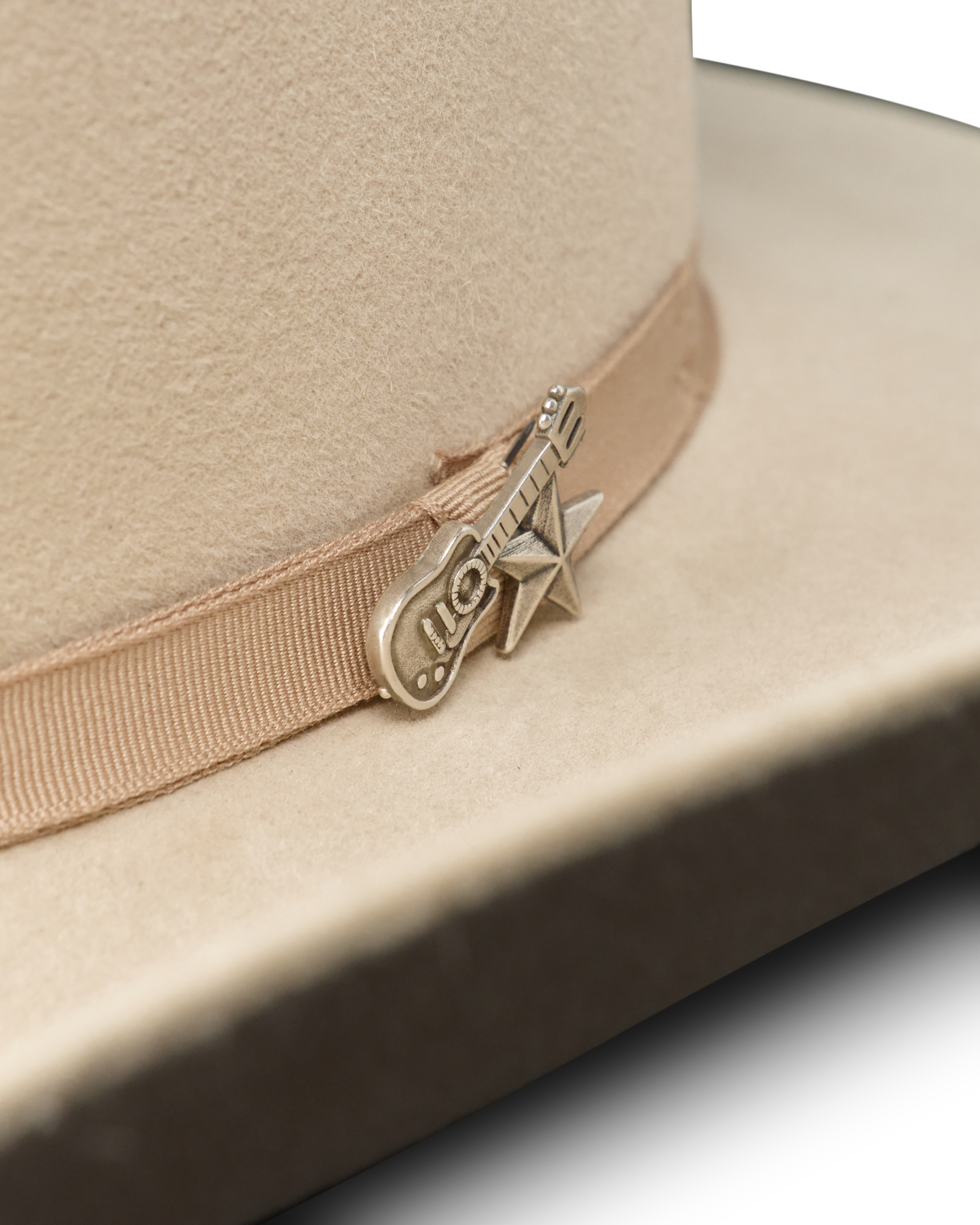 Add a personal touch with our 100% brass hat pins — choose the rugged edge of the antique brass hawk or the sleek shine of the nickel-plated guitar. Crafted to last, each pin brings subtle character and authentic Western flair to your hat.