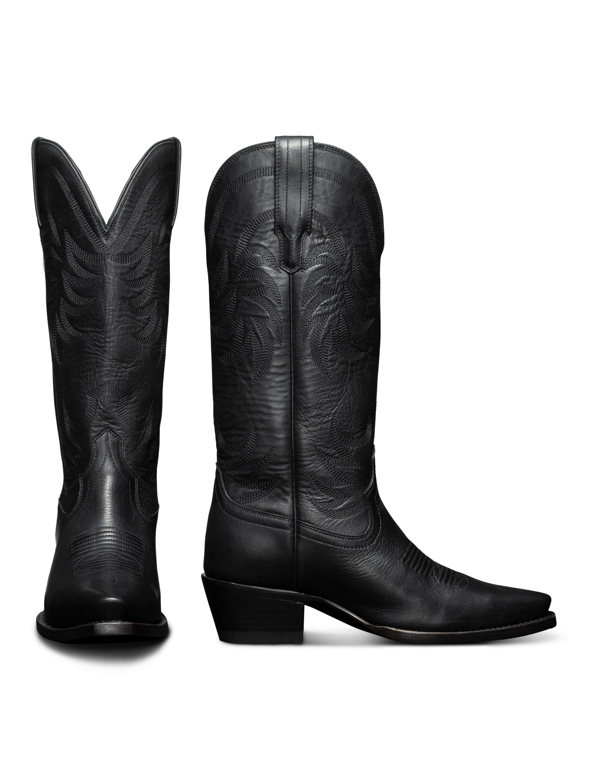 Meet The Annie, our best-selling cowgirl boot. Tall and timeless, a beautiful tonal stitching pattern adorns its 14” shaft, the top of which features a deep scallop for a comfortable, flattering fit. A fashion-forward snip toe leads the way and our signature toe stitching rounds out a classic look open to a wide range of styling possibilities. These premium boots are not to be missed and will age beautifully over time.