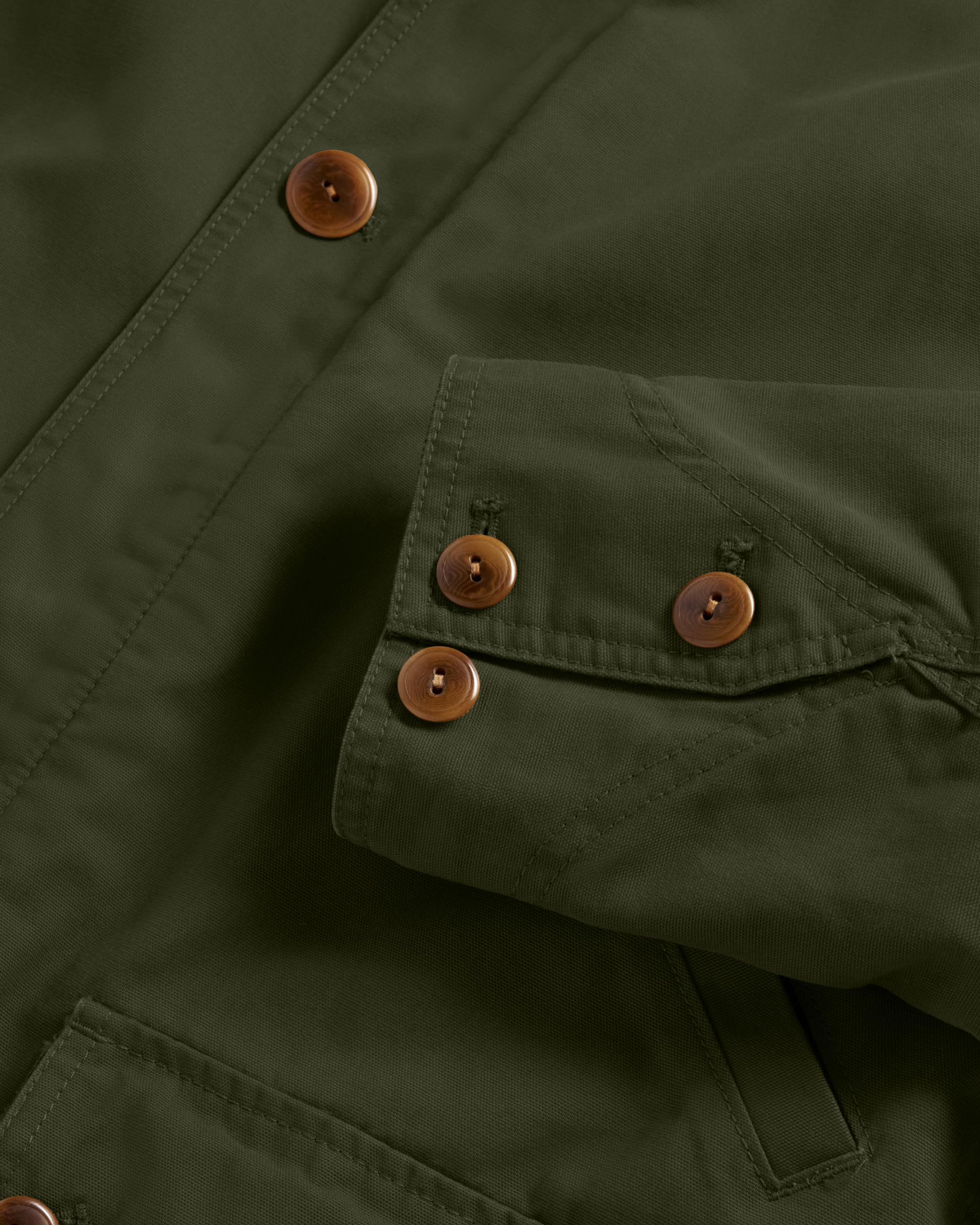 Made for crisp mornings and colder nights, this barn coat brings heavyweight function with an easy, broken-in feel. The cotton-lyocell shell is tough, while Thermore EcoDown insulation and a quilted lining keep the comfort and warmth locked in. A corduroy collar, antique brass hardware, and full-motion bi-swing vents nod to timeless workwear with a Western edge. From city streets to country roads, this one’s built to move.